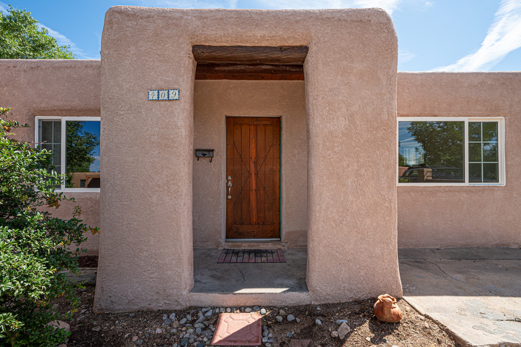 This charming three-bedroom single-level home is located a stone's throw from downtown Santa Fe. The original Stamm design features vigas, wood floors, a corner kiva fireplace, and a converted garage centered, on a generous 1/8 acre lot. The 1,334+/- square foot floor plan offers excellent bones to build upon. The primary bedroom and two additional rooms benefit from large newer windows for plenty of natural light. Some other updates include granite countertops, a partially renovated hallway bathroom, roof work in 2024 and stucco around 2022. Whether you're looking to build equity, generate passive income, or settle into a friendly area with character, this home's value, location, and potential combine for a compelling opportunity.