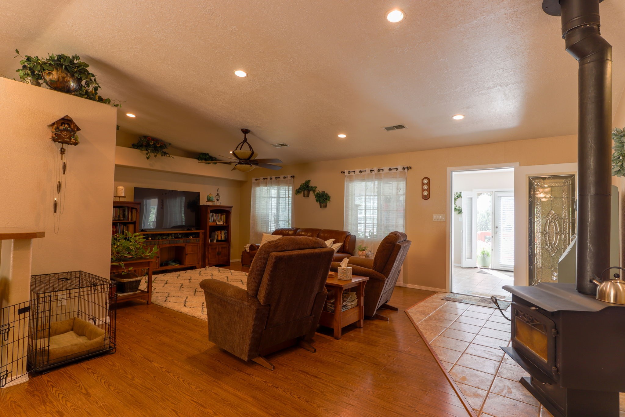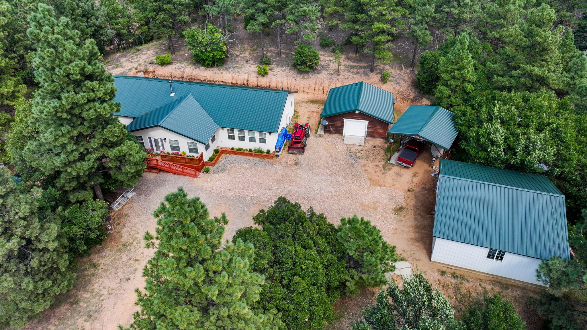 This amazing custom-built home is nestled on a sprawling 7.63-acre property, surrounded by lush pine trees and set against the backdrop of picturesque hillsides, offering breathtaking views. The residence is designed to blend seamlessly with its natural surroundings, offering privacy and tranquility. Inside the spacious layout is both elegant and functional, with meticulously crafted finishes that reflect the home's custom built construction.For car enthusiasts or those needing extra space for storage, the home includes a 3-car finished garage, providing ample room for vehicles and additional storage. Adjacent to the garage is a finished workshop, perfect for those who enjoy DIY projects or need space for crafts and hobbies. Nestled in between is an RV parking area The property itself is a nature lover's paradise, offering a private retreat with ample outdoor space to enjoy the serene beauty of the landscape. Whether you're relaxing on the porch, the outdoor patio or exploring the acres of land, this home is truly one not to miss.