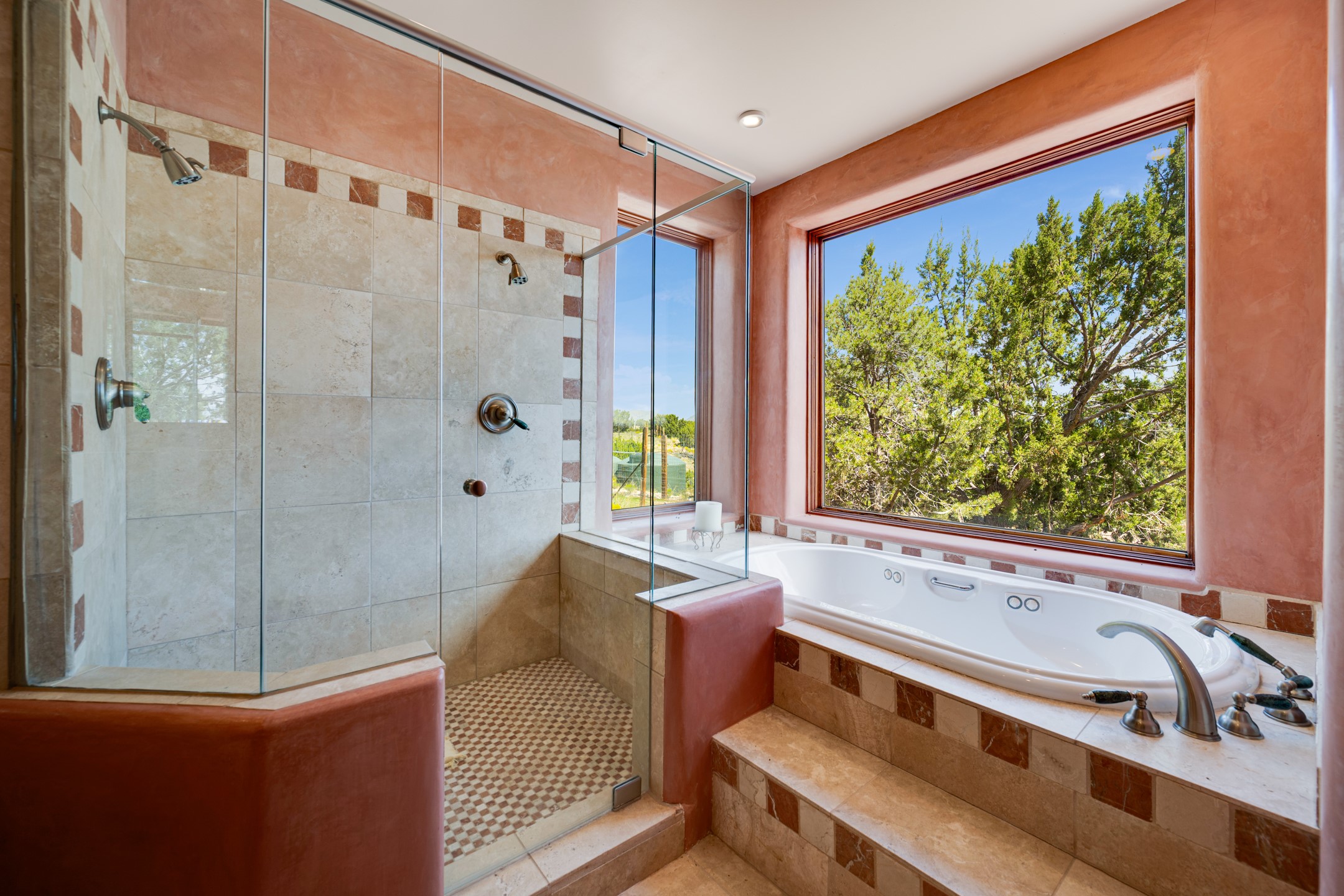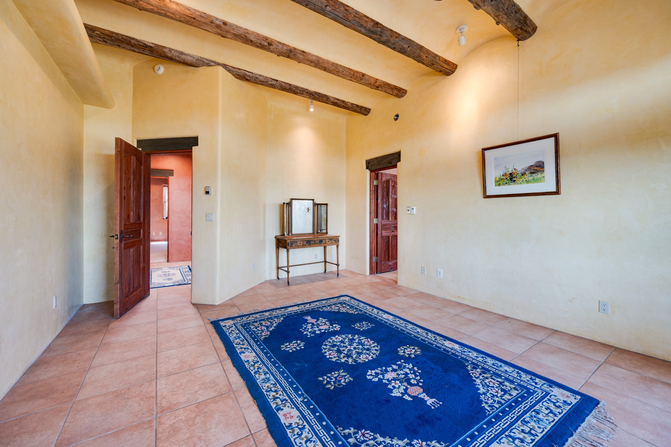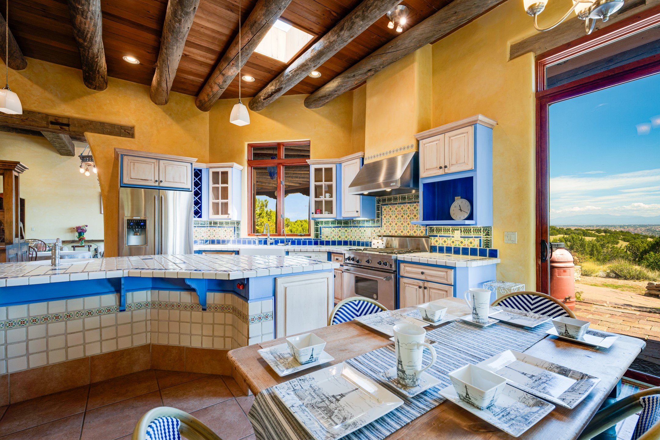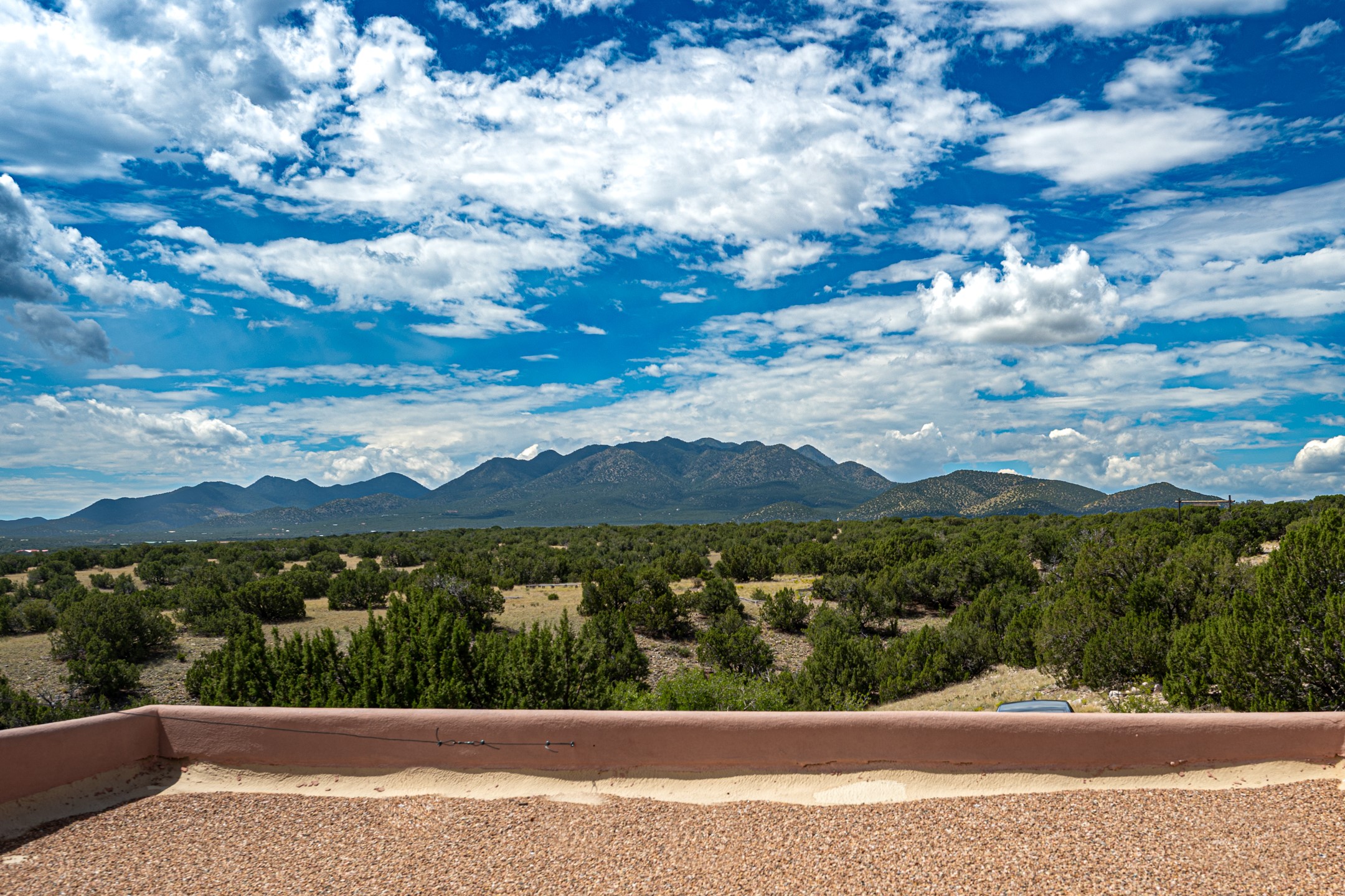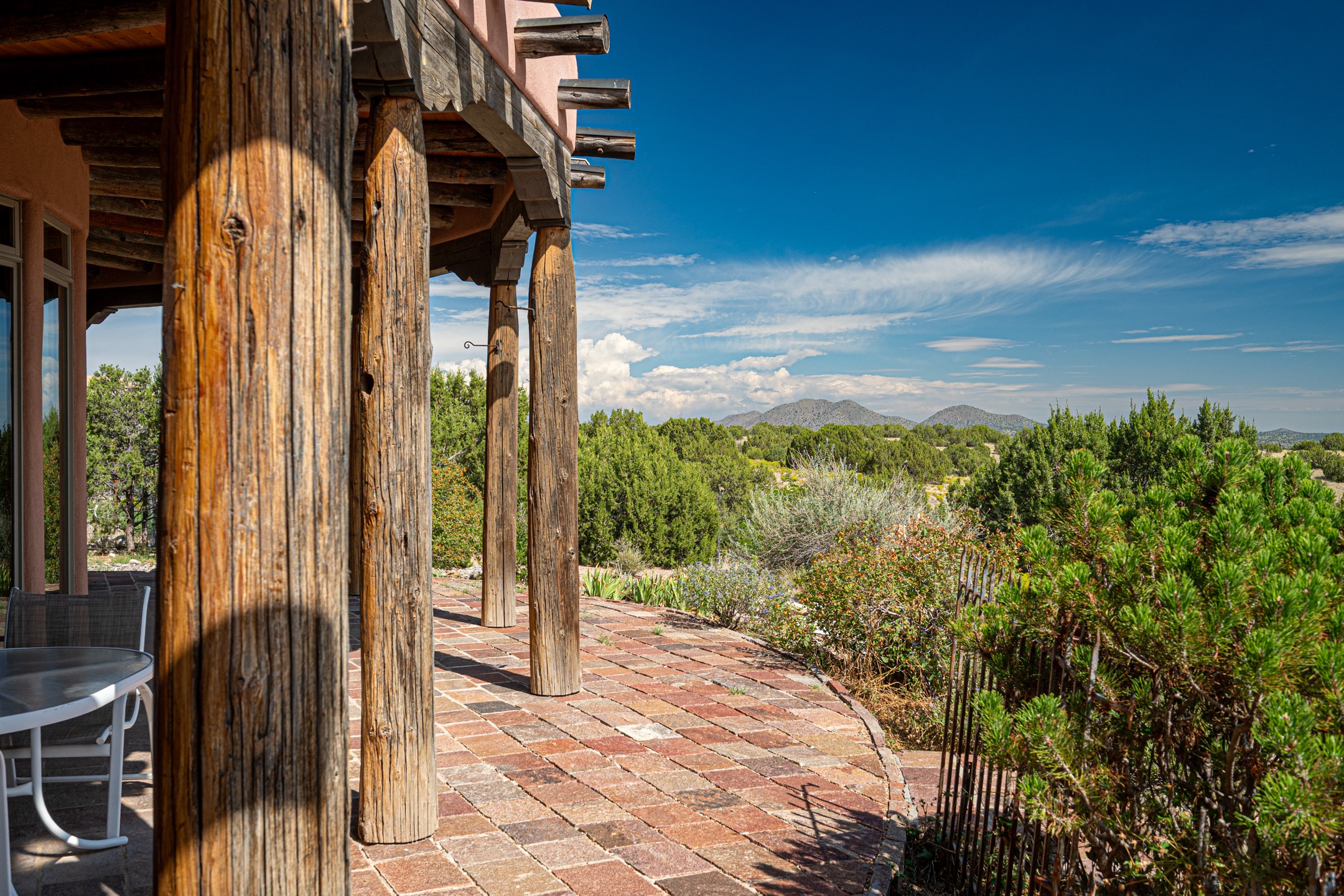 Oro Viejo Ranch is a timeless sanctuary on 106 acres. A harmonious blend of natural splendor, meticulous craftsmanship, and modern convenience. There are breathtaking panoramic views of the Sangre de Cristo, Ortiz Mountains, Cerrillos Hills, and the iconic Lone Butte. The main residence showcases authentic Southwest style, adobe and rastra construction. It features intricate plasterwork, recycled wood vigas, and a heated indoor pool, the rooftop deck offers truly unobstructed views. The solid oak cabin adds rustic charm, originally owned by the Hoover family, and rebuilt on-site. Horse enthusiasts will appreciate the six-stall, barn, tack room, workshop, covered hay storage, electric, and hot water, and protected outdoor runs. An insulated chicken coop provides the perfect setup for fresh eggs, while a private well with a large storage tank ensures a reliable water source.A convenient RV hookup is also available on the property.