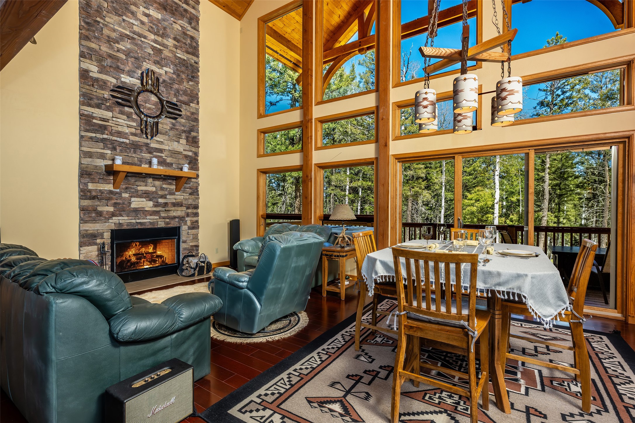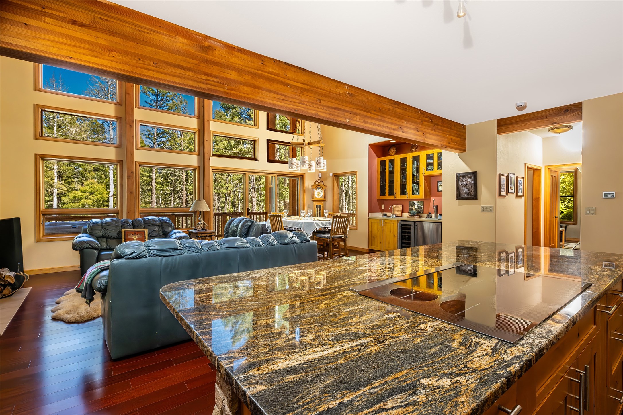 This beautifully maintained property sits on over 2 acres of fire-wise thinned forest, offering both privacy and peace of mind. Thoughtfully upgraded with high-quality appliances, luxury furnishings, and quality finishes throughout, this home combines comfort with sophistication. A gourmet kitchen designed for culinary excellence is perfect for both everyday living and entertaining in style. The towering rock-wall fireplace exudes rustic elegance and warmth. Stunning floor-to-ceiling windows create a seamless connection between indoor living and the large, reinforced covered decks built to withstand the elements and support outdoor living year-round. With ample space for dining, lounging, and gathering, this is truly an extension of the home--where nature and luxury meet. Unwind after a long day in the private hot tub, perfectly positioned to take in the serene mountain landscape. Key features include a home theatre room, an elegant wine cellar, an electric firewood hoist plus two spacious storage sheds for added convenience. Additionally there is a 30 AMP RV hookup for visiting guests and a redone gravel driveway for improved access and curb appeal. Access to nearby hiking trails, stocked fishing lake, PGA rated golf course, ski resort and country club all just minutes away. A true mountain oasis, blending modern upgrades with natural beauty. Move-in ready with furniture and meticulously cared for--this is the mountain lifestyle at its finest.