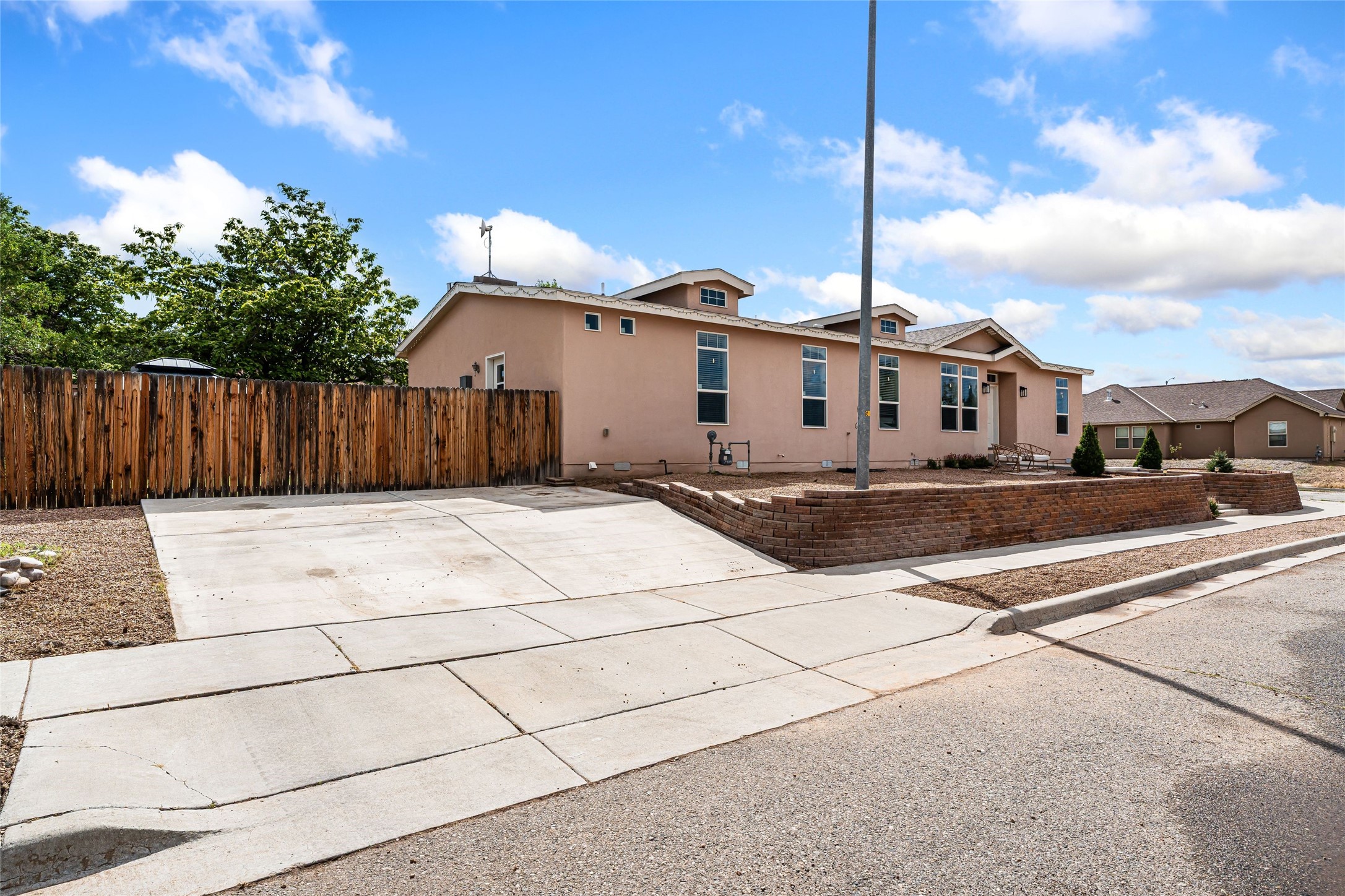Updated 3-bedroom, 2-bath modular home sited on a corner lot with a permanent foundation and numerous seller improvements, this residence offers both style and functionality. Step inside to discover a bright and inviting open floor plan, featuring new luxury vinyl plank flooring. The kitchen showcases crisp white cabinets, modern appliances, and a spacious center island with seating for four. The built-in hutch and adjacent dining area provide a welcoming atmosphere for family meals and gatherings, with easy access to the backyard for outdoor entertaining. The primary bedroom has clerestory windows which fill the space with natural light and an oversized walk-in closet for ample storage. The remodeled en-suite bath has dual sinks and soaking tub, perfect for unwinding after a long day. Two additional guest bedrooms share a well-appointed bath, making this home ideal for families or guests. The second living area offers versatile options as a den, media room, or play area, catering to your lifestyle needs. Outside, enjoy the side pergola and covered outdoor dining area, perfect for alfresco dining and entertaining. The large side patio and garden areas provide ample opportunities for outdoor pursuits. Also has a retaining wall and fence. Located in the heart of Espaola with the added benefit of being equidistant from Santa Fe and Los Alamos.