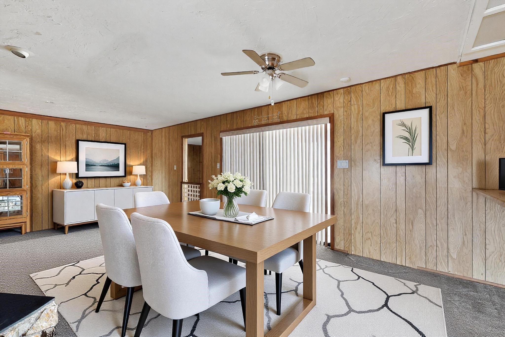Spacious Los Lunas home with unique features! The open living and dining room is anchored by a double-sided fireplace, creating a warm focal point. The kitchen is generously sized with an island and plenty of room to personalize. Step outside to a covered patio with ceiling fans, perfect for relaxing or entertaining. A separate studio in the backyard adds flexibility for hobbies, work, or guests. This home offers great space and character, ready for your vision and updates. Land comes with a manufactured home next door to the North.