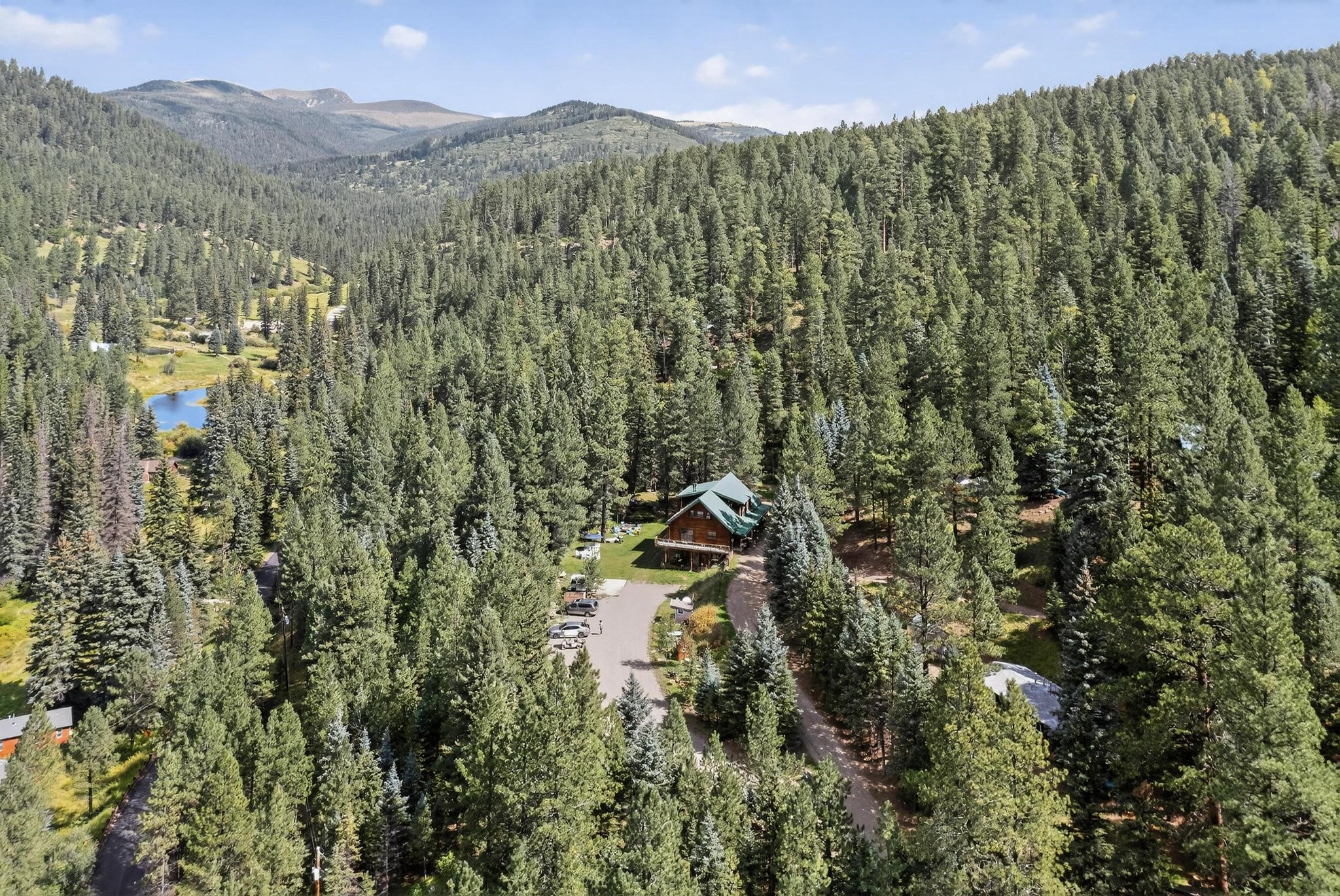 Nestled in the heart of the Santa Fe National Forest, Vida Bonita Pecos offers the perfect blend of comfort and remote wilderness. Located just steps away from the world-famous Pecos River, tranquil Cowles ponds and scenic trails. This fully renovated hospitality property offers 4 deeded parcels being sold as one Estate consisting of 4 cabins: The Ponderosa (Main cabin) 3 stories, 6 bedrooms, 4 bathrooms. Laundry on main and lower level. The Collins Cabin (original home) 3 story, 2 bed 2 baths, full walk out basement with laundry could be additional living space with own entry. The Charming Tiny Cabin conversion sleeps 2, also with a new deck. The Crestview 2 story, 3 bedrooms, 3 baths. 2 additional loft sleeping areas, laundry and private fishing pond. Twin Pines (duplex) 1 bed 1 bath each unit w/ kitchenette. Green house and storage. Vintage "glamping Camper" Sleeps 3, new decking and water and electric. Vida Bonita Pecos is the perfect city escape that blends rustic charm with modern convenience. All beautifully furnished and guest ready. Two high-yield wells, four septic systems, new decks, upgraded kitchens and baths, landscaped grounds, and private trails. Currently marketed on Airbnb/VRBO with repeat guests and established local university and athletic partnerships. Vida Bonita Pecos offers immediate income and growth potential as a boutique resort, family compound, or executive retreat center. Rare turnkey opportunity to own a thriving mountain getaway with proven revenue and limitless possibilities.