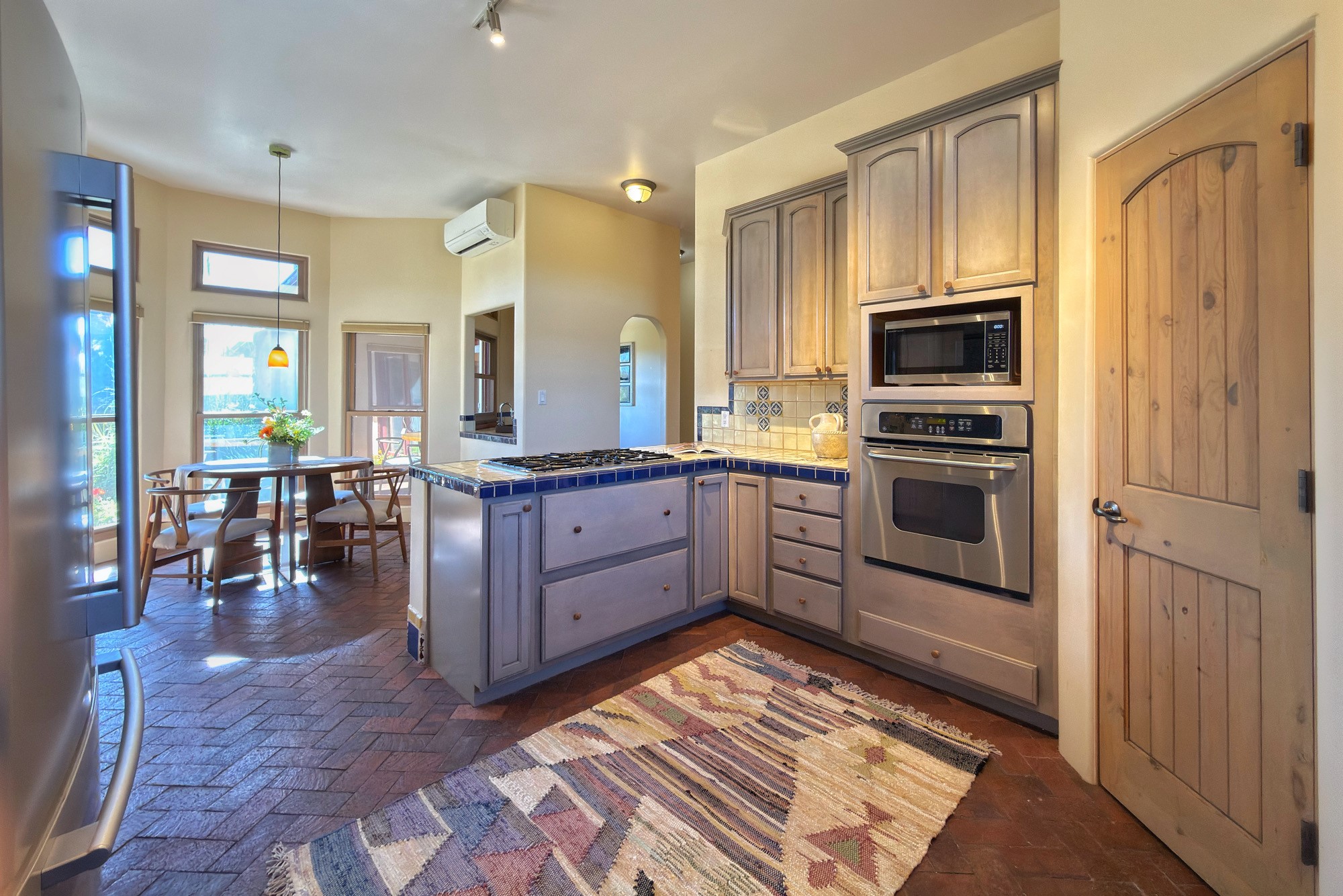 SELLER OFFERING $10,000 CREDIT AT CLOSING TO BUYER! This single-level home, built in 2005, offers the perfect blend of traditional Northern New Mexico architecture and modern comforts. Set on 1.44+/- acres with adjoining open space in the subdivision, the property welcomes you with lush, mature gardens and a beautiful entryway, framed by mountain views and proximity to equestrian facilities. Spanning approximately 2,272 sq. ft. the home features 3 bedrooms and 2 full baths. The spacious living room boasts high ceilings with wooden beams and corbels, a kiva fireplace, and brick floors that extend throughout. The kitchen includes stainless steel appliances, a walk-in pantry, custom cabinets, Mexican tile accents, and an eat-in breakfast nook. The primary suite is a private retreat with a generous walk-in closet and a large bathroom featuring double sinks, a jetted tub, and a separate shower. Two thoughtfully positioned guest bedrooms share a full bath with double sinks. Additional highlights include in-floor radiant heat, split units for supplemental heating and cooling and a two-car garage that offers a built-in workbench, custom cabinetry, and attic storage. Ideally located just minutes from Eldorado, this home is close to shopping, restaurants, gyms, banks, a post office, hardware stores, and pet services.