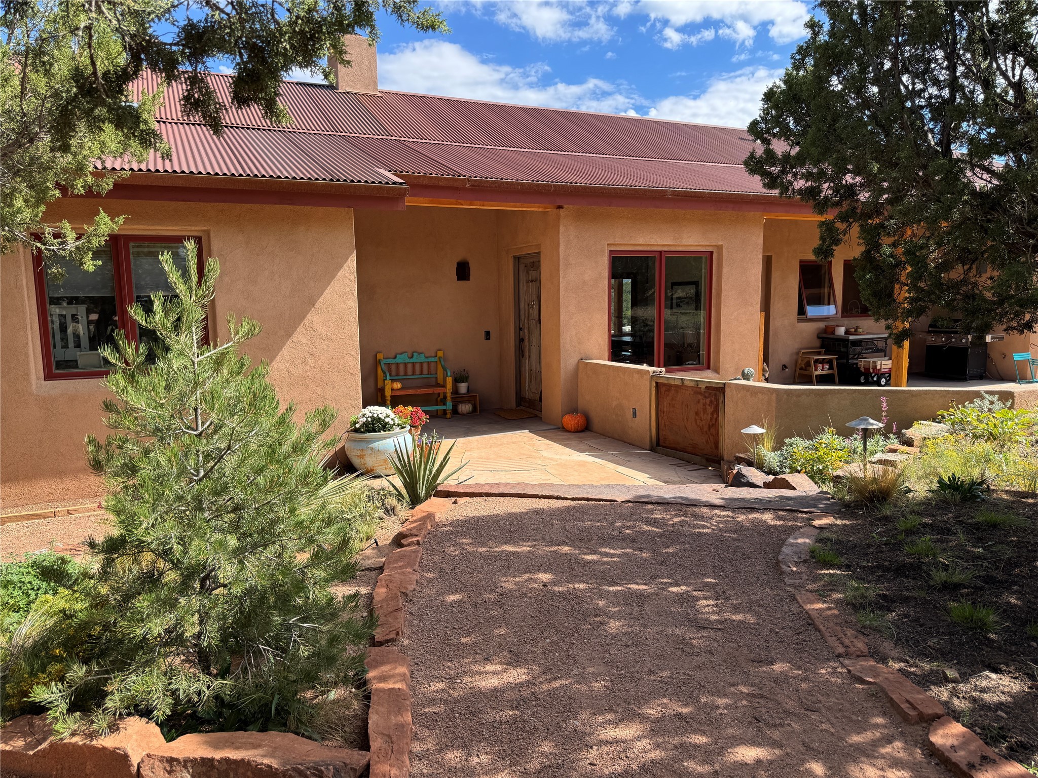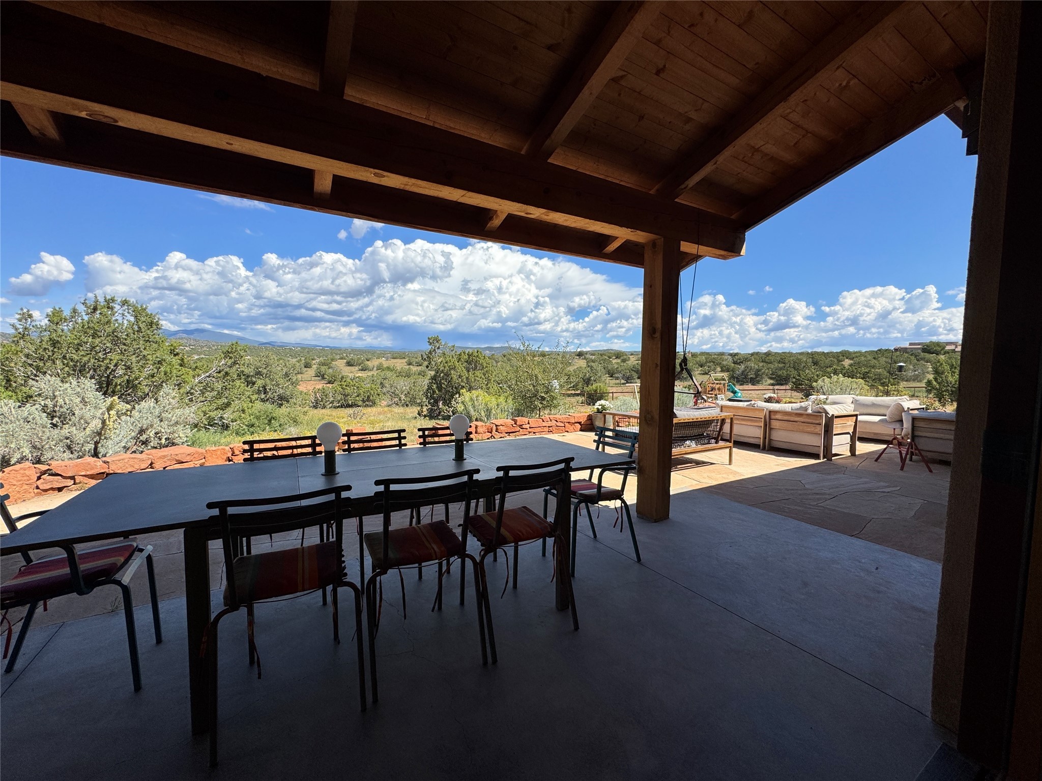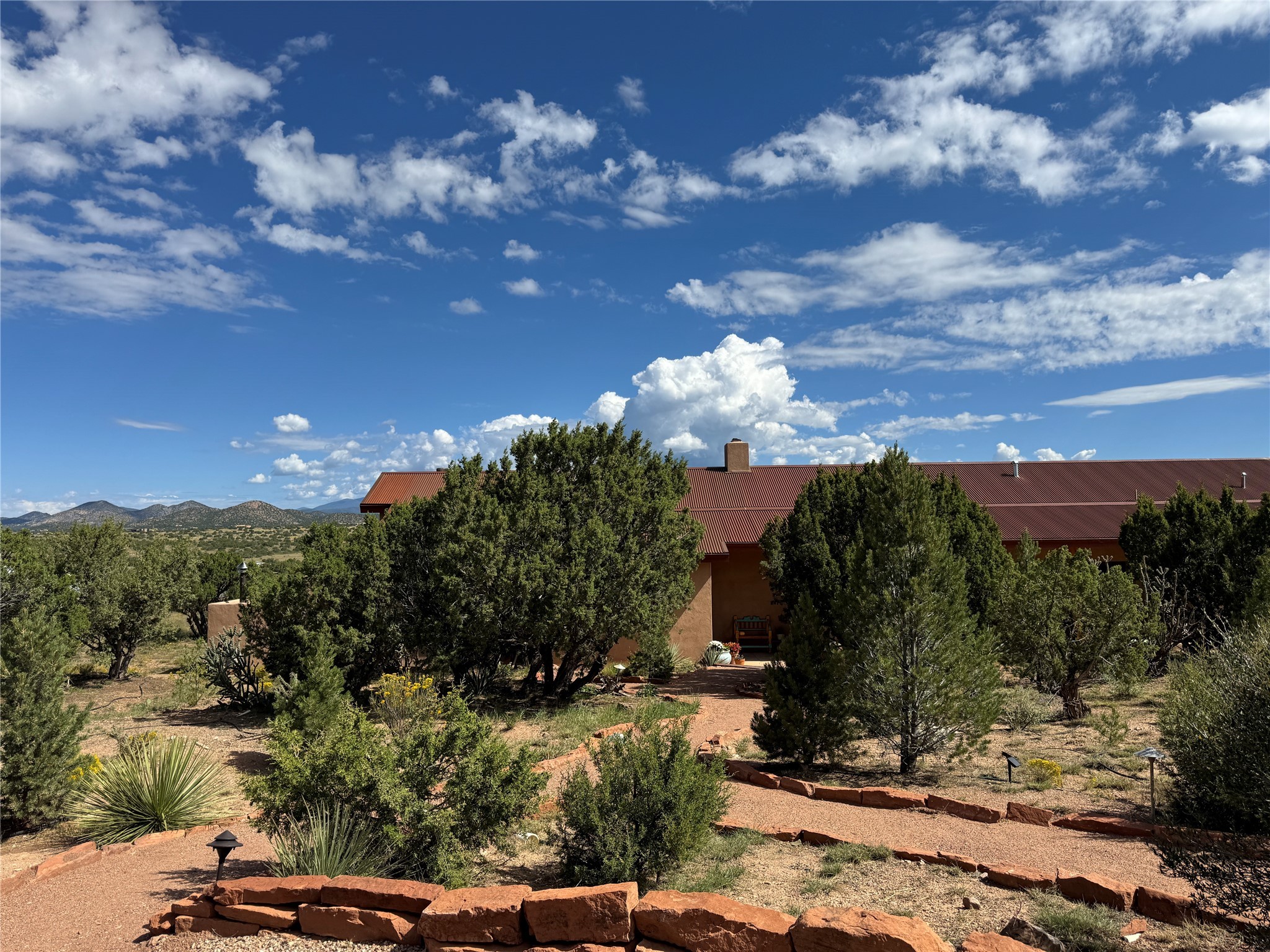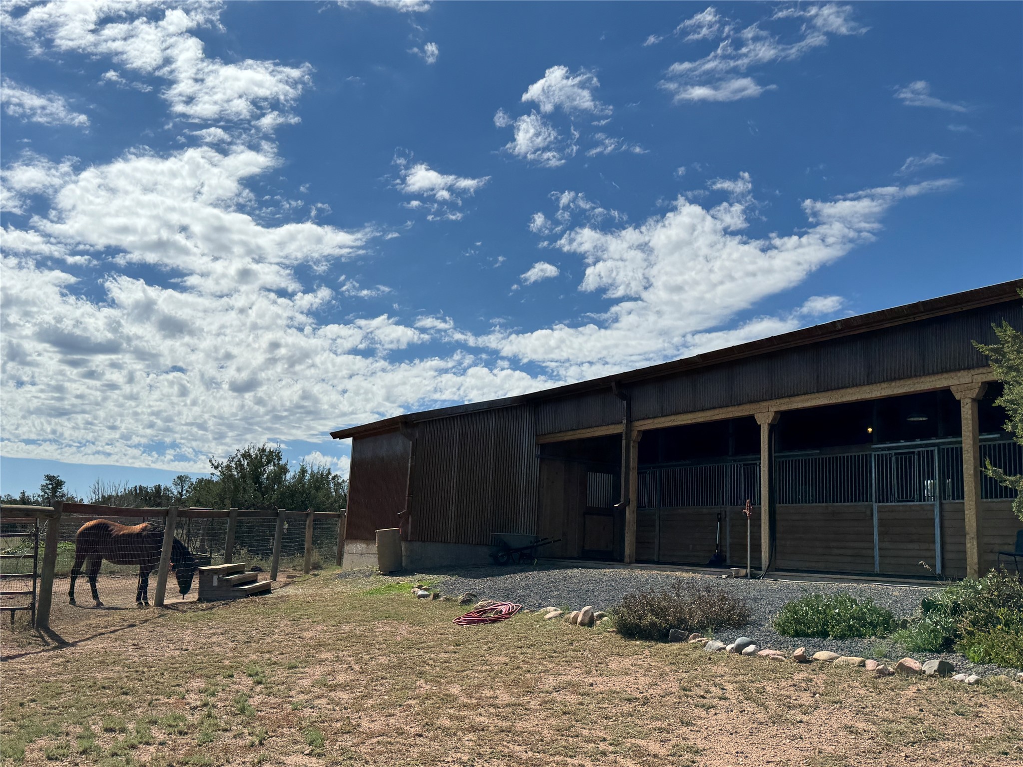 GET READY TO FALL IN LOVE WITH THIS DREAMY MODERN RANCH ON 25 ACRES:21 Cattle Drive is the kind of place that feels like a unicorn - rare, enchanting, and totally magical. This home has it all: space, style, and some seriously stunning views. It's just a short drive from downtown Santa Fe, but feels like your own private sanctuary.BIG, BRIGHT, OPEN: With over 3,000 sq. ft., this home gives you plenty of room to spread out. You've got 2 spacious ensuite bedrooms and 1 flex room currently being used as an additional bedroom. Perfect for hosting family and friends.DREAMY LIVING SPACES: The open living area has it's own special vibe, with natural light pouring in, gorgeous, modern, polished walls, and wood beams that give it that true Santa Fe charm. Plus, the kiva fireplace is perfect for cozy nights in.KITCHEN GOALS: If you love to cook or entertain, this Chef's Kitchen will make you feel like a pro. High-end stainless steel appliances, tons of counter space, and epic mountain views - it's all you need.OUTDOOR OASIS: Step outside, and you're in an enchanting portal, with stunning mountain views and beautiful landscaping that feels like a little piece of heaven.ENERGY EFFICIENT with GEO THERMAL COMFORT: This home is not only eco-friendly but offers year-round comfort with a Geo-Thermal heating and cooling system. The system is super efficient, ensuring your home stays perfectly cozy in the winter and cool in the summer, all while keeping energy costs low. (see PDF in MLS documents for more info)EQUESTRIAN DREAM: For horse lovers, this property includes a 3-stall horse barn complete with a wash bay and hay barn with storage capacity of up to 350 bales. This property is a perfect fit for anyone looking to keep their equine companions at home. The barn is well-maintained and ready to house your horses in comfort, to live their best lives in this beautiful setting.