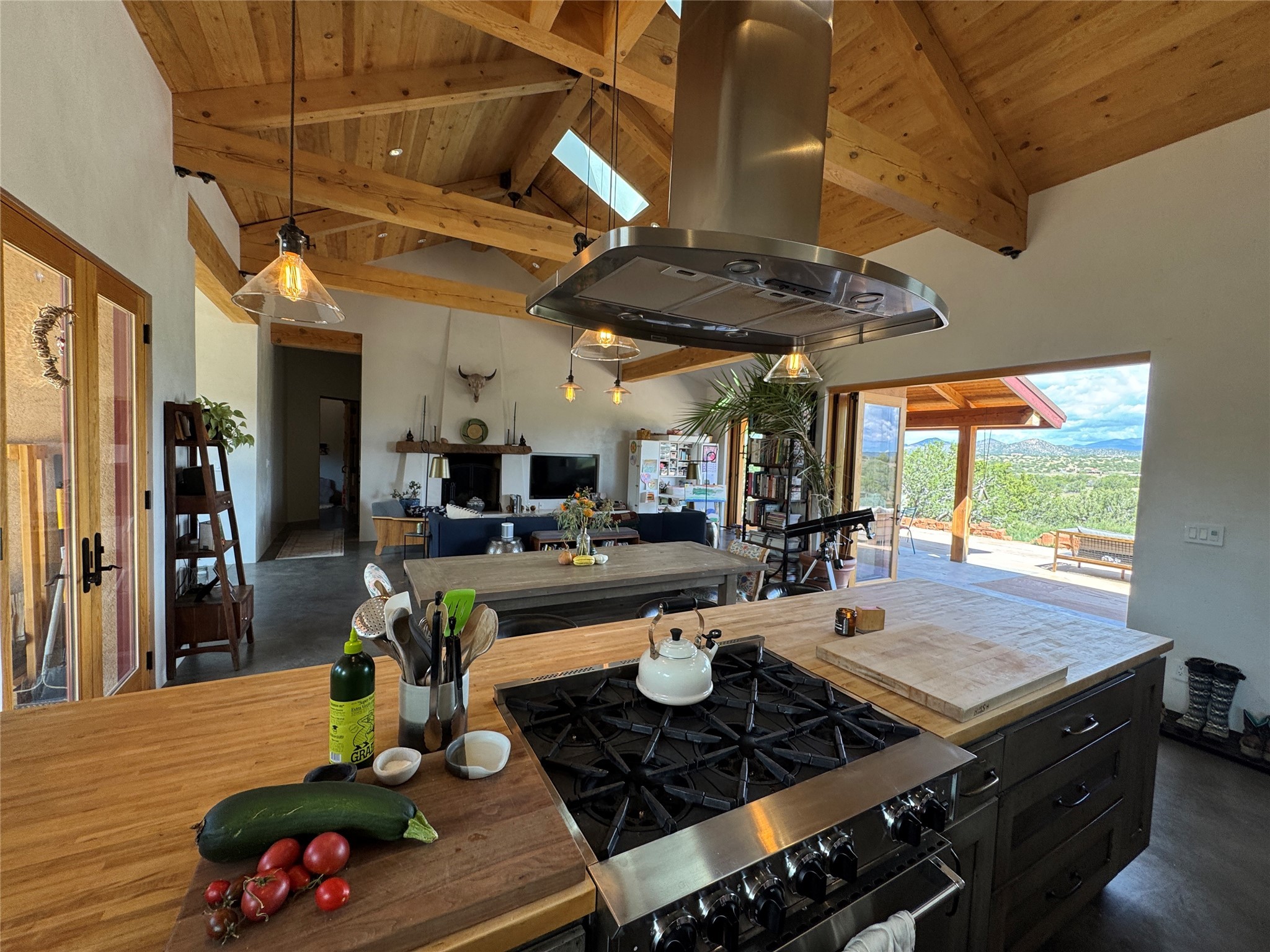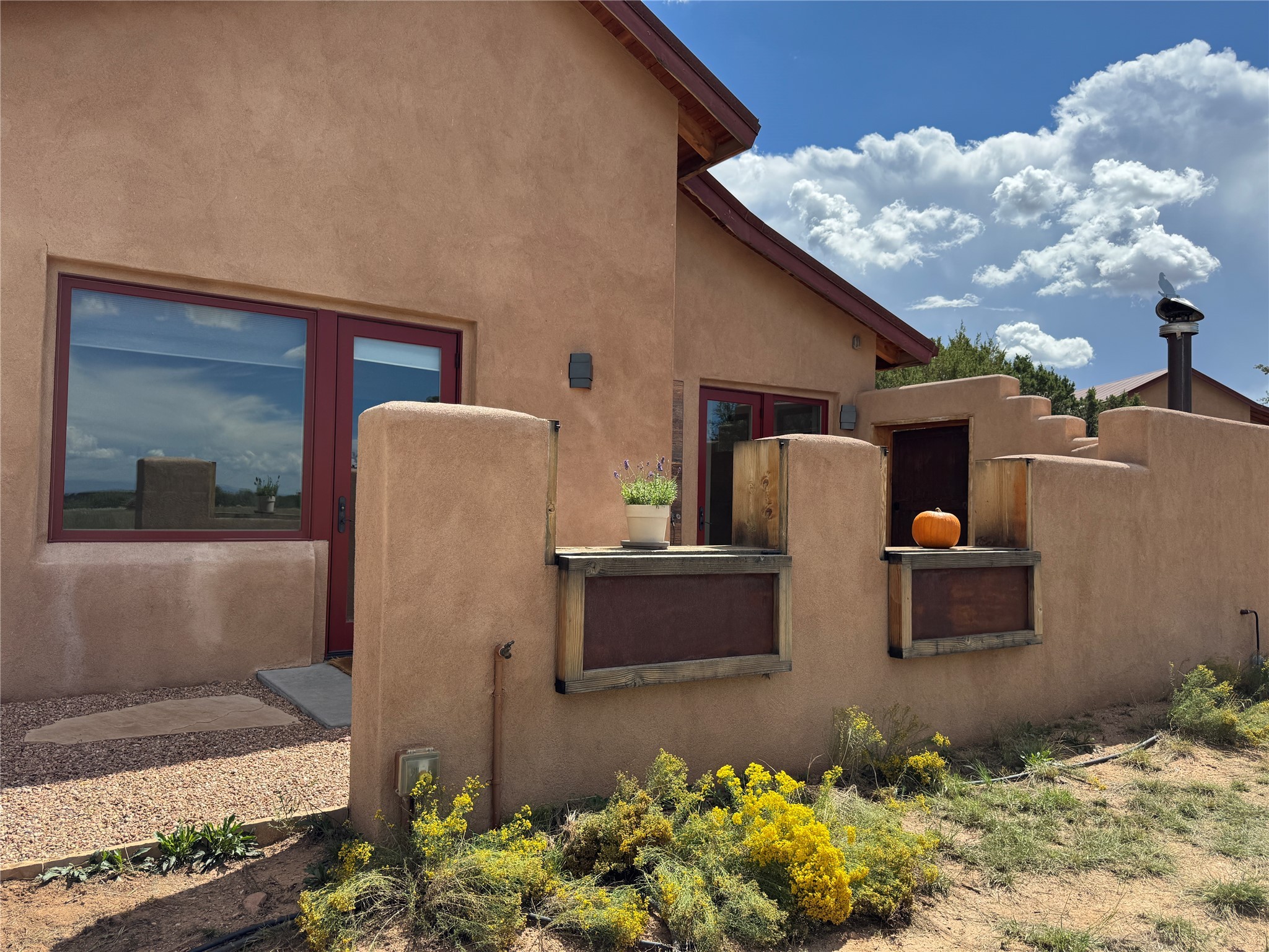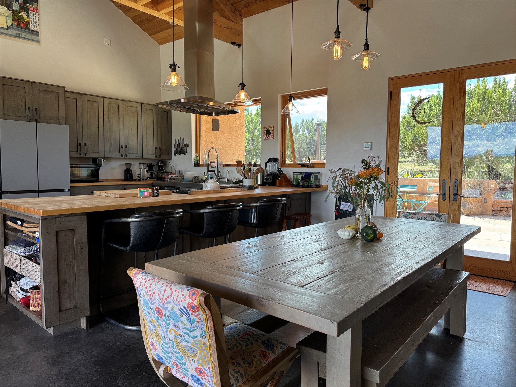 GET READY TO FALL IN LOVE WITH THIS DREAMY MODERN RANCH ON 25 ACRES:21 Cattle Drive is the kind of place that feels like a unicorn - rare, enchanting, and totally magical. This home has it all: space, style, and some seriously stunning views. It's just a short drive from downtown Santa Fe, but feels like your own private sanctuary.BIG, BRIGHT, OPEN: With over 3,000 sq. ft., this home gives you plenty of room to spread out. You've got 2 spacious ensuite bedrooms and 1 flex room currently being used as an additional bedroom. Perfect for hosting family and friends.DREAMY LIVING SPACES: The open living area has it's own special vibe, with natural light pouring in, gorgeous, modern, polished walls, and wood beams that give it that true Santa Fe charm. Plus, the kiva fireplace is perfect for cozy nights in.KITCHEN GOALS: If you love to cook or entertain, this Chef's Kitchen will make you feel like a pro. High-end stainless steel appliances, tons of counter space, and epic mountain views - it's all you need.OUTDOOR OASIS: Step outside, and you're in an enchanting portal, with stunning mountain views and beautiful landscaping that feels like a little piece of heaven.ENERGY EFFICIENT with GEO THERMAL COMFORT: This home is not only eco-friendly but offers year-round comfort with a Geo-Thermal heating and cooling system. The system is super efficient, ensuring your home stays perfectly cozy in the winter and cool in the summer, all while keeping energy costs low. (see PDF in MLS documents for more info)EQUESTRIAN DREAM: For horse lovers, this property includes a 3-stall horse barn complete with a wash bay and hay barn with storage capacity of up to 350 bales. This property is a perfect fit for anyone looking to keep their equine companions at home. The barn is well-maintained and ready to house your horses in comfort, to live their best lives in this beautiful setting.