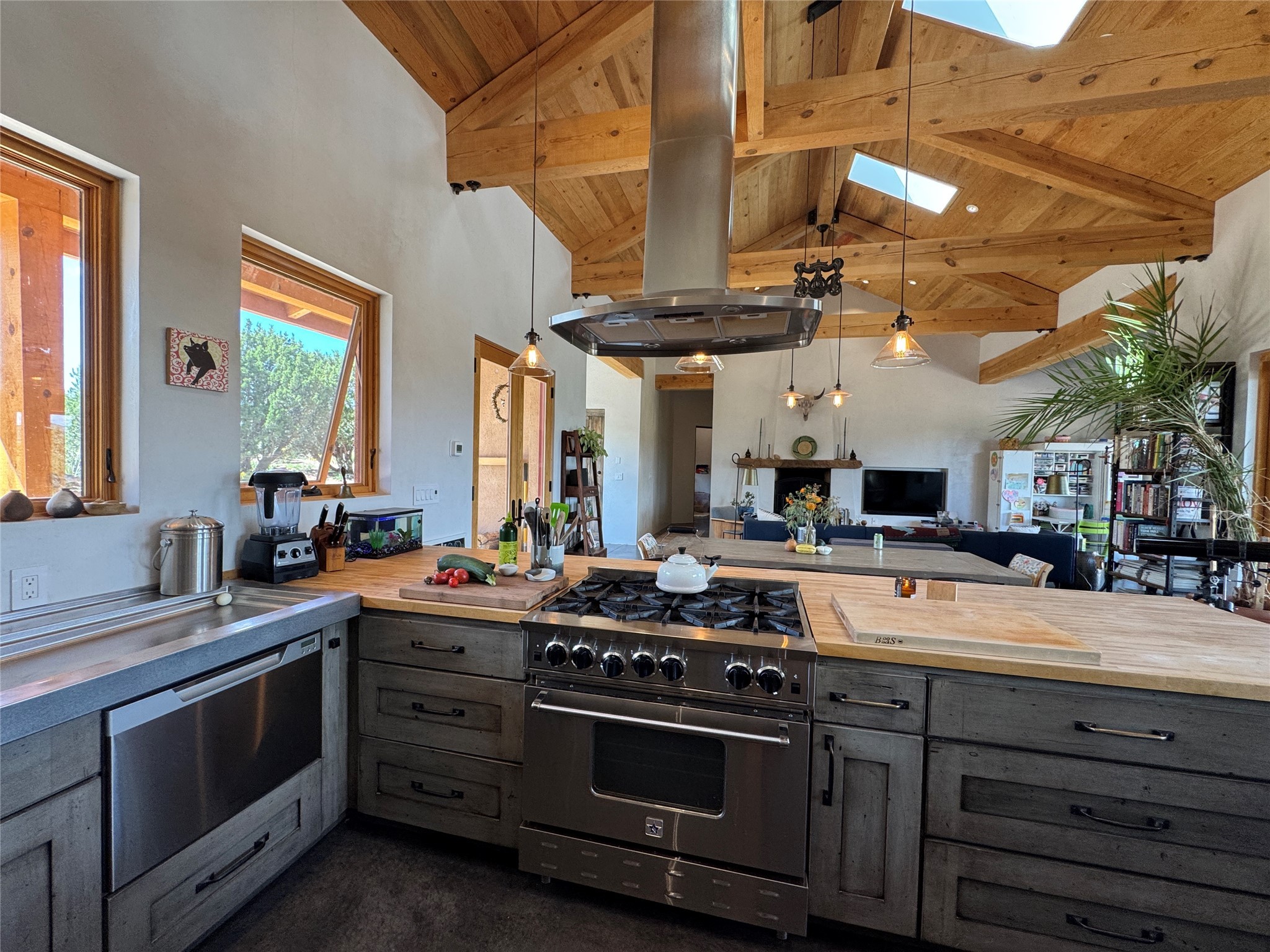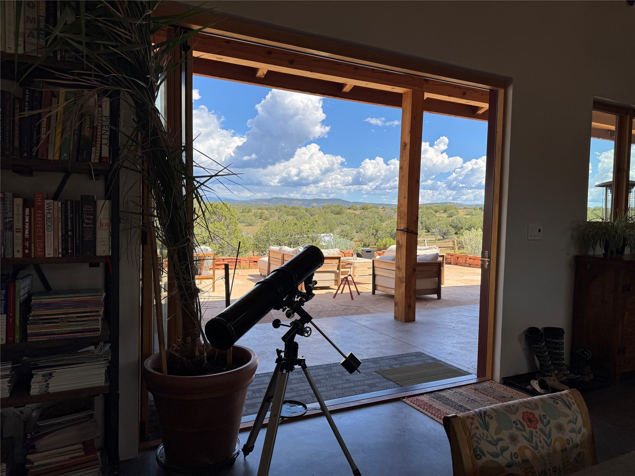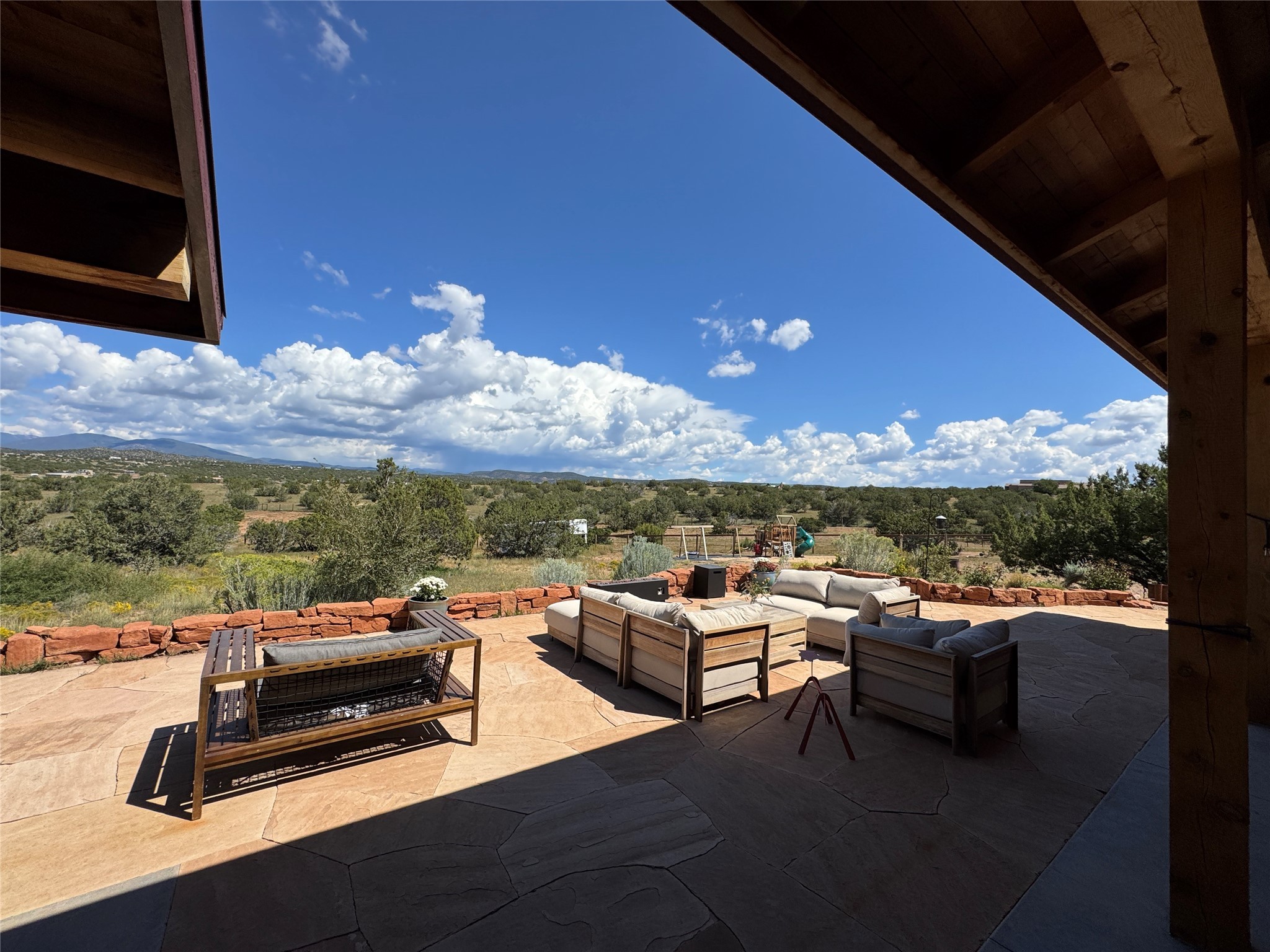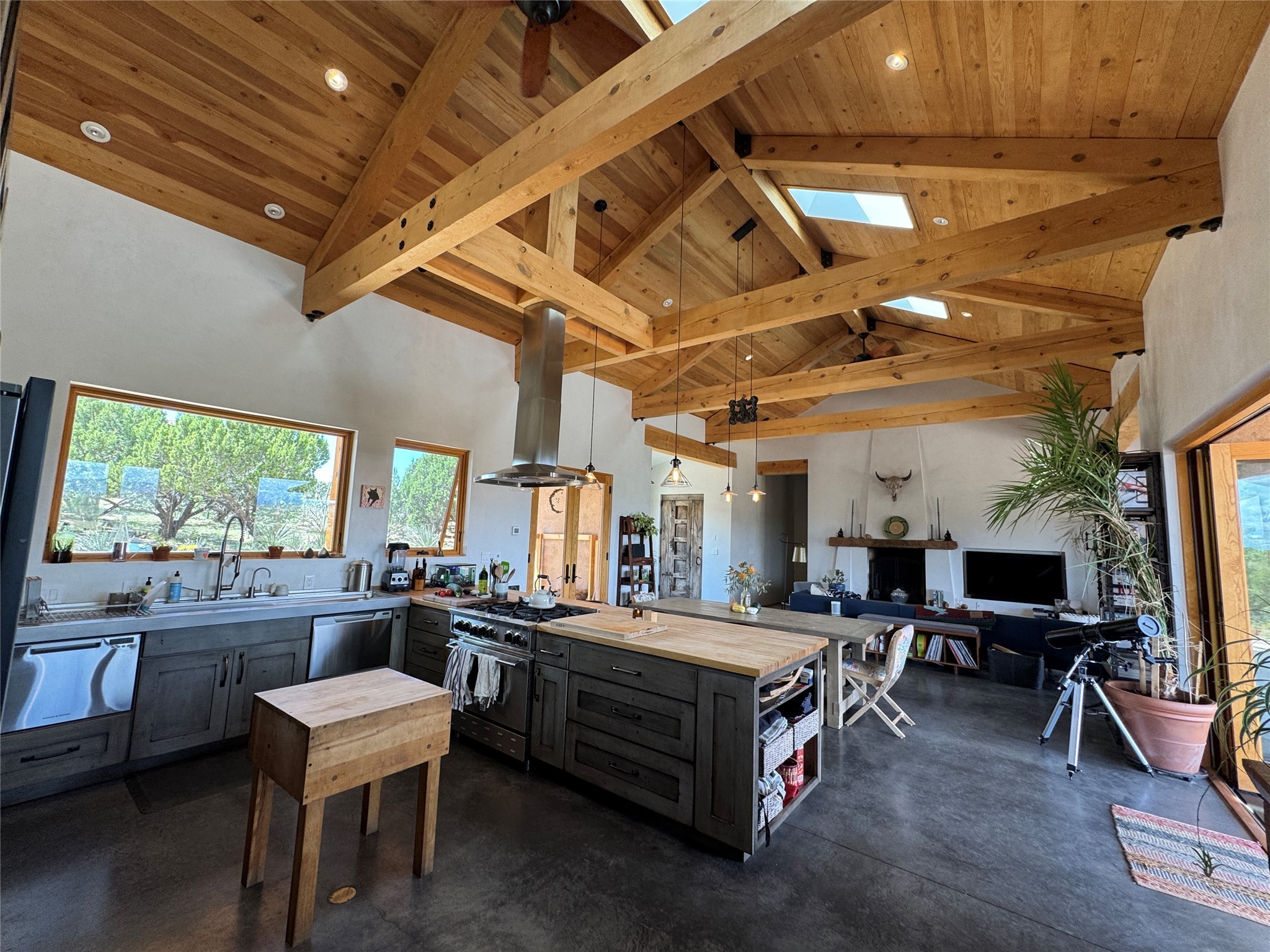 GET READY TO FALL IN LOVE WITH THIS DREAMY MODERN RANCH ON 25 ACRES:21 Cattle Drive is the kind of place that feels like a unicorn - rare, enchanting, and totally magical. This home has it all: space, style, and some seriously stunning views. It's just a short drive from downtown Santa Fe, but feels like your own private sanctuary.BIG, BRIGHT, OPEN: With over 3,000 sq. ft., this home gives you plenty of room to spread out. You've got 2 spacious ensuite bedrooms and 1 flex room currently being used as an additional bedroom. Perfect for hosting family and friends.DREAMY LIVING SPACES: The open living area has it's own special vibe, with natural light pouring in, gorgeous, modern, polished walls, and wood beams that give it that true Santa Fe charm. Plus, the kiva fireplace is perfect for cozy nights in.KITCHEN GOALS: If you love to cook or entertain, this Chef's Kitchen will make you feel like a pro. High-end stainless steel appliances, tons of counter space, and epic mountain views - it's all you need.OUTDOOR OASIS: Step outside, and you're in an enchanting portal, with stunning mountain views and beautiful landscaping that feels like a little piece of heaven.ENERGY EFFICIENT with GEO THERMAL COMFORT: This home is not only eco-friendly but offers year-round comfort with a Geo-Thermal heating and cooling system. The system is super efficient, ensuring your home stays perfectly cozy in the winter and cool in the summer, all while keeping energy costs low. (see PDF in MLS documents for more info)EQUESTRIAN DREAM: For horse lovers, this property includes a 3-stall horse barn complete with a wash bay and hay barn with storage capacity of up to 350 bales. This property is a perfect fit for anyone looking to keep their equine companions at home. The barn is well-maintained and ready to house your horses in comfort, to live their best lives in this beautiful setting.