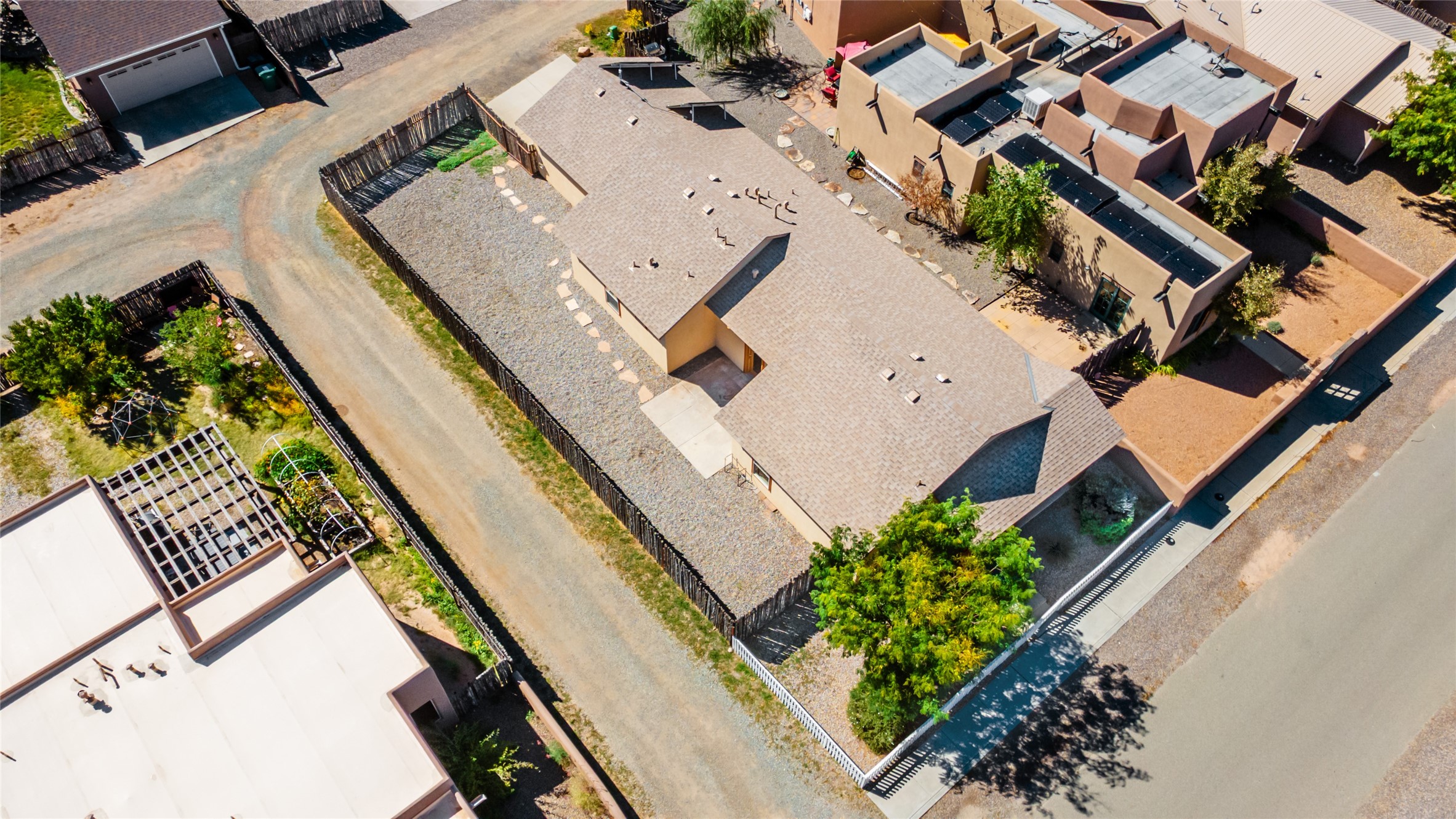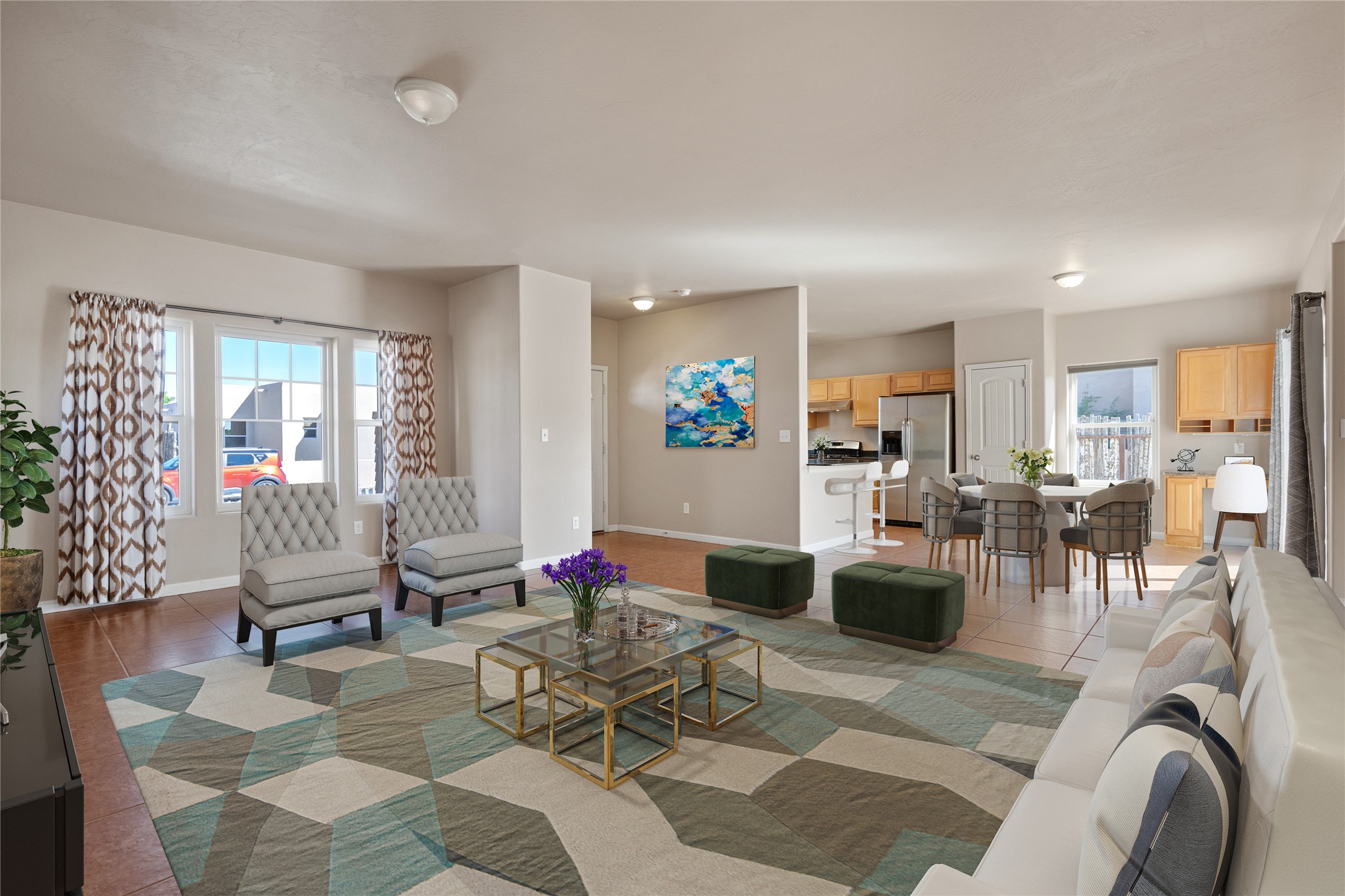 Why buy an ordinary home when you can buy this exceptionally built Craftsman style GREEN home! This LEED Gold certified home includes grid tied photovoltaic, tankless H2O, engineered construction, comfort guarantee, EPA indoor Air-Plus certified, Hepa filter ventilation, Energy Star appliances & Andersen windows, R-21 walls & R-50 roof, eco-friendly countertops, upgraded tile, cabinets, doors & trim and nine-foot ceilings. Owner still receives checks from PNM! Abundance of yard space, coyote fencing all around property. Long hallways for your art displays, a desk area off kitchen/dining and plenty of living/entertaining space. Enjoy the diverse architecture of Oshara Village and Pantry Dos a few blocks away. Community College, shopping and restaurants all around! Home is vacant, furnishings are digitally created.