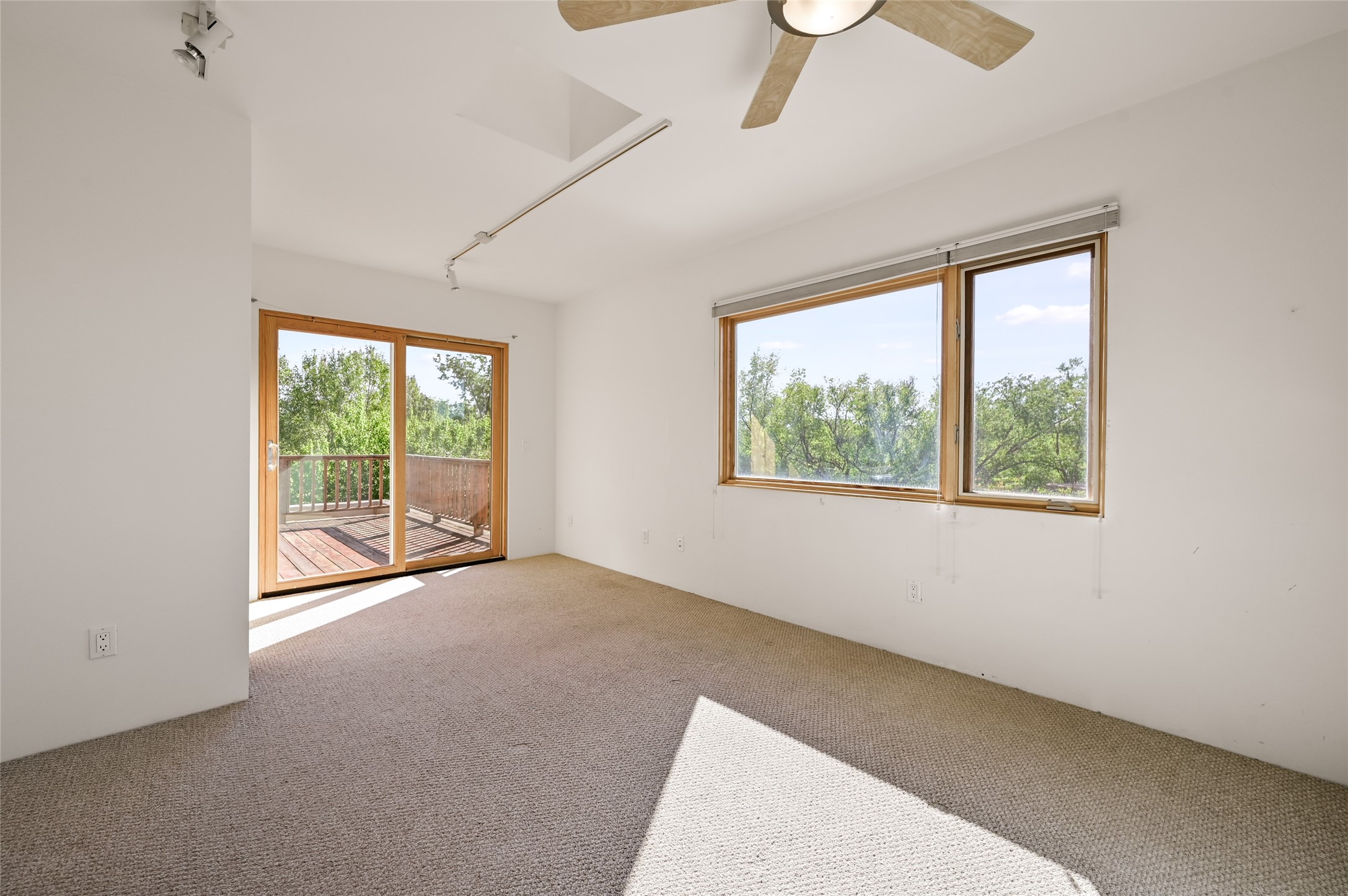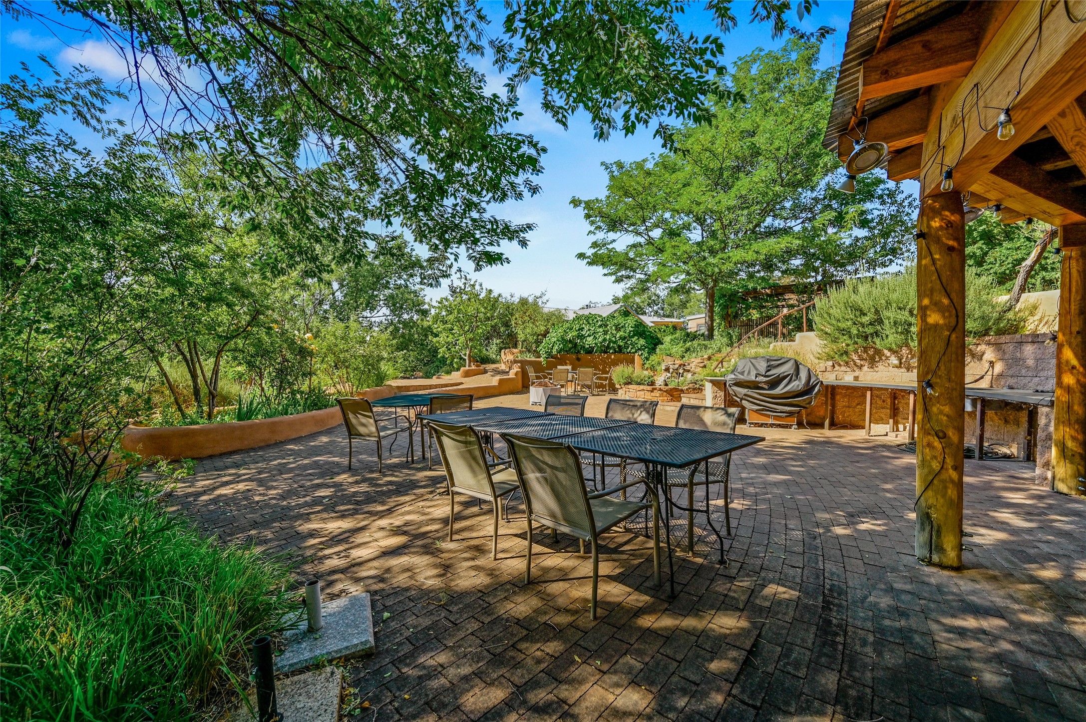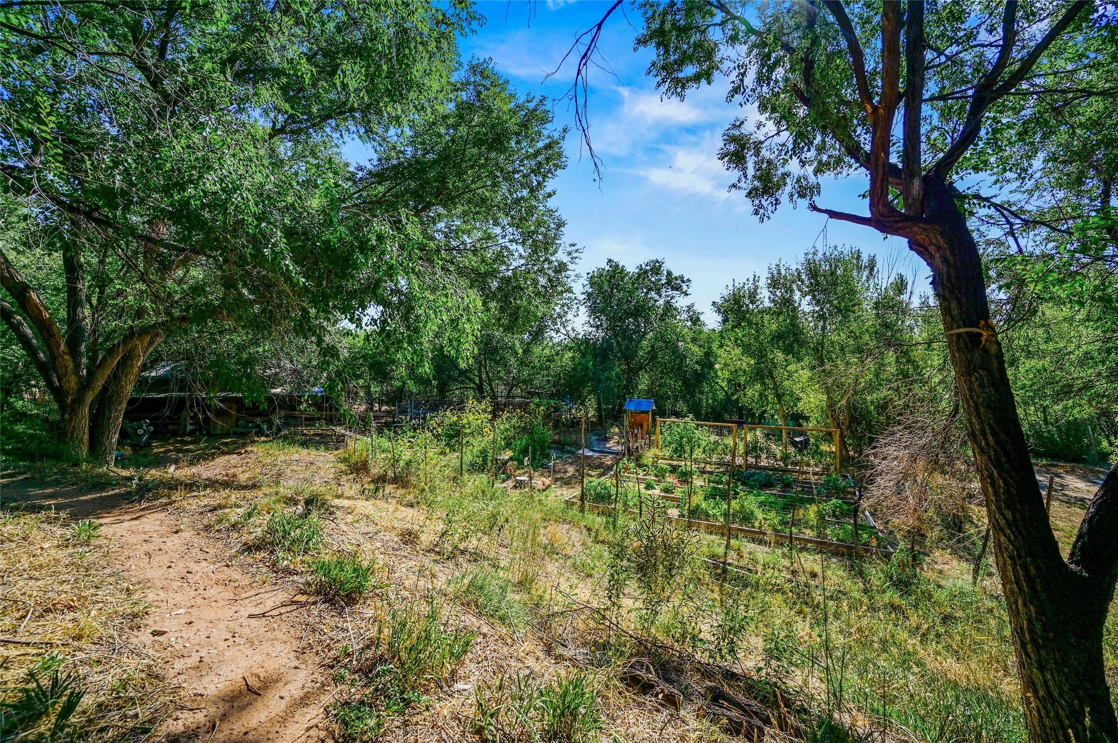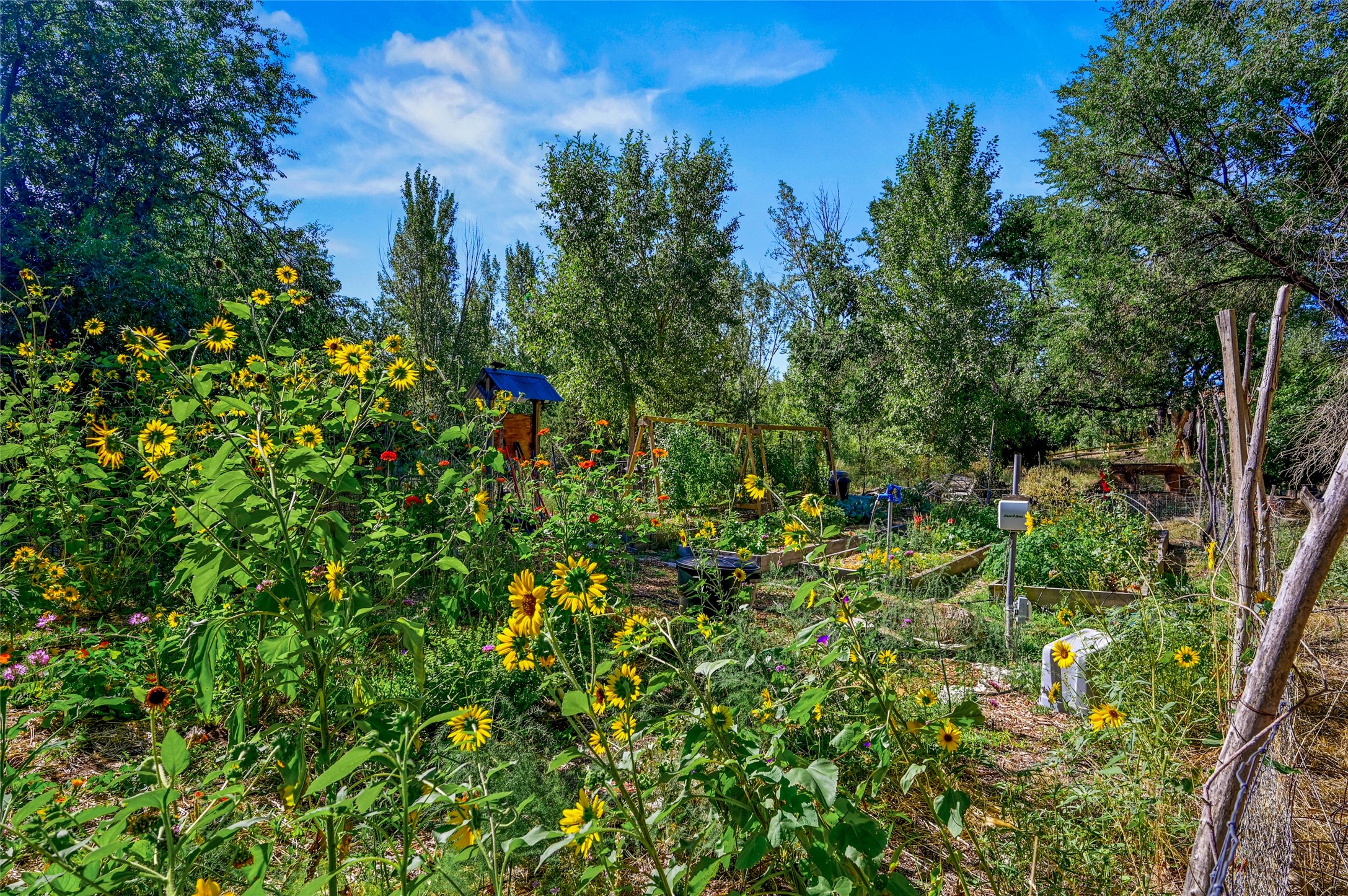 Nestled in the serene Tres Placitas del Rio Co-housing, an intimate enclave of only 11 homes on 2.5 acres. This 3 bedroom, 3 bath residence offers a rare blend of ecological living and artistic inspiration. Set along the Western banks of the Santa Fe River, this unique community is designed for those who cherish nature, creativity and connection.The home itself provides comfortable light filled spaces with a warm, inviting character. Ideal for families, gardeners or artists seeking both privacy and a sense of belonging. Solar panels on the roof provide energy efficiency, while a spacious basement awaits your creativity, perfect for a studio, workshop or additional living space. Beyond the private residence, residents share access to beautifully landscaped common areas featuring terraces, walking paths, an outdoor dining pavilion, an organic garden, fruit trees and a charming barn with goats and chickens.More than a home, this is a sustainable sanctuary where community and nature harmonize. Just minutes from all the cultural and culinary delights of downtown Santa Fe.