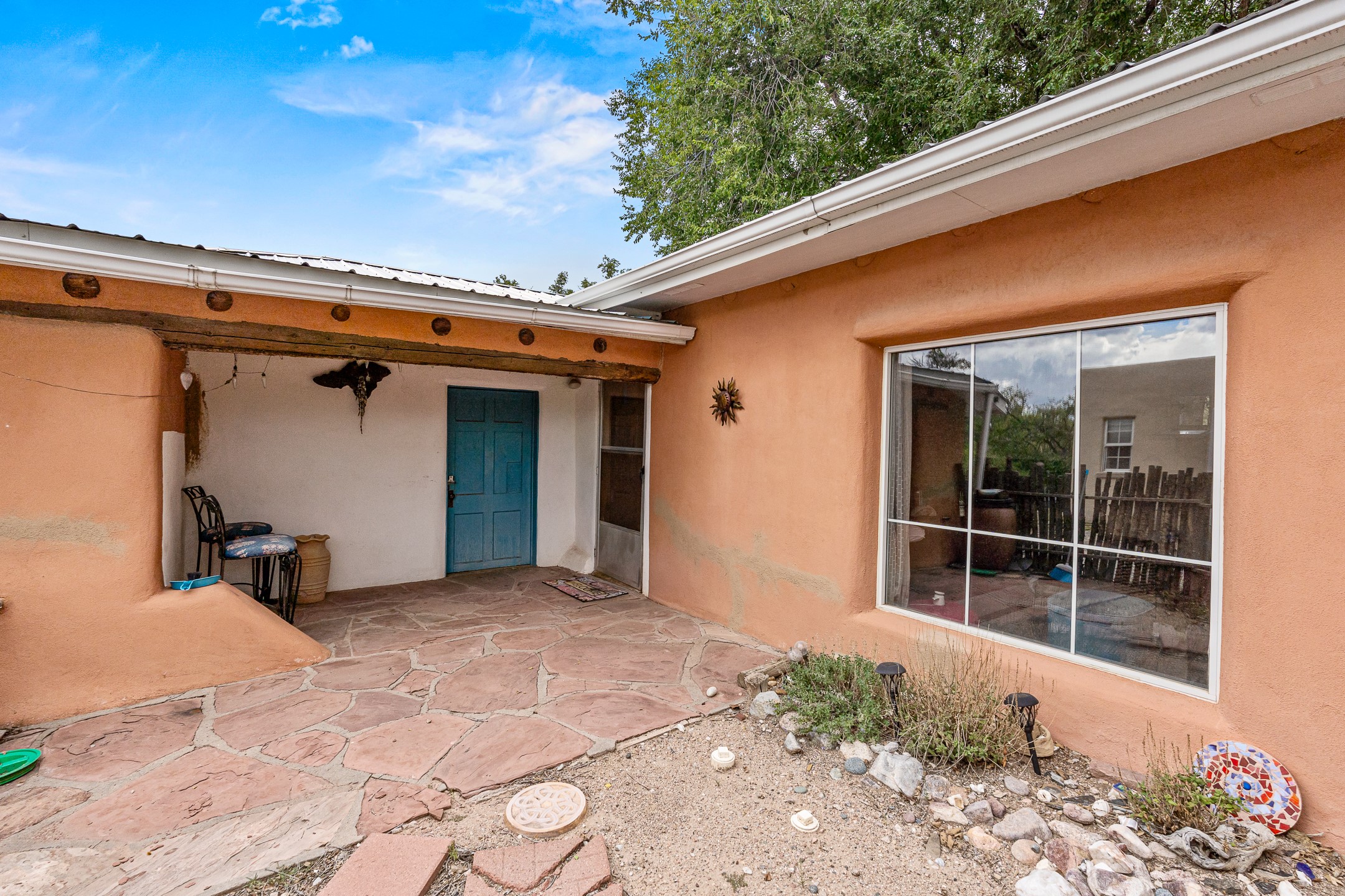 Unique Namb property featuring a 3-bed, 1 full & bath main home plus a private guest house. Owned solar conveys with sale, along with forced-air heating and central A/C for year-round comfort. Main house offers a cozy wood-burning stove and spacious layout. Guest house includes a room, kitchenette, full bath, and traditional kiva fireplace--perfect for guests, rental income, or multigenerational living. Enjoy Southwestern charm with modern efficiency in a serene setting.
