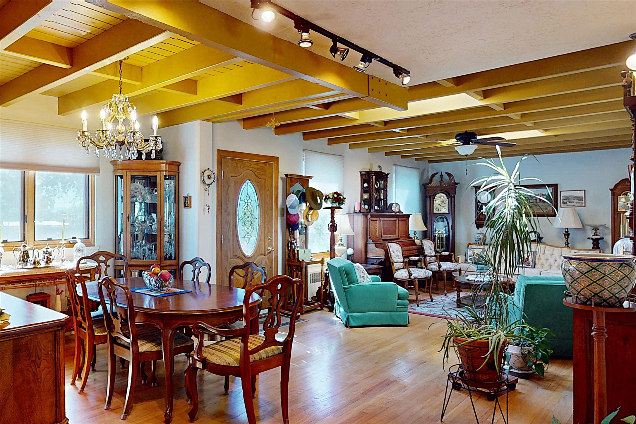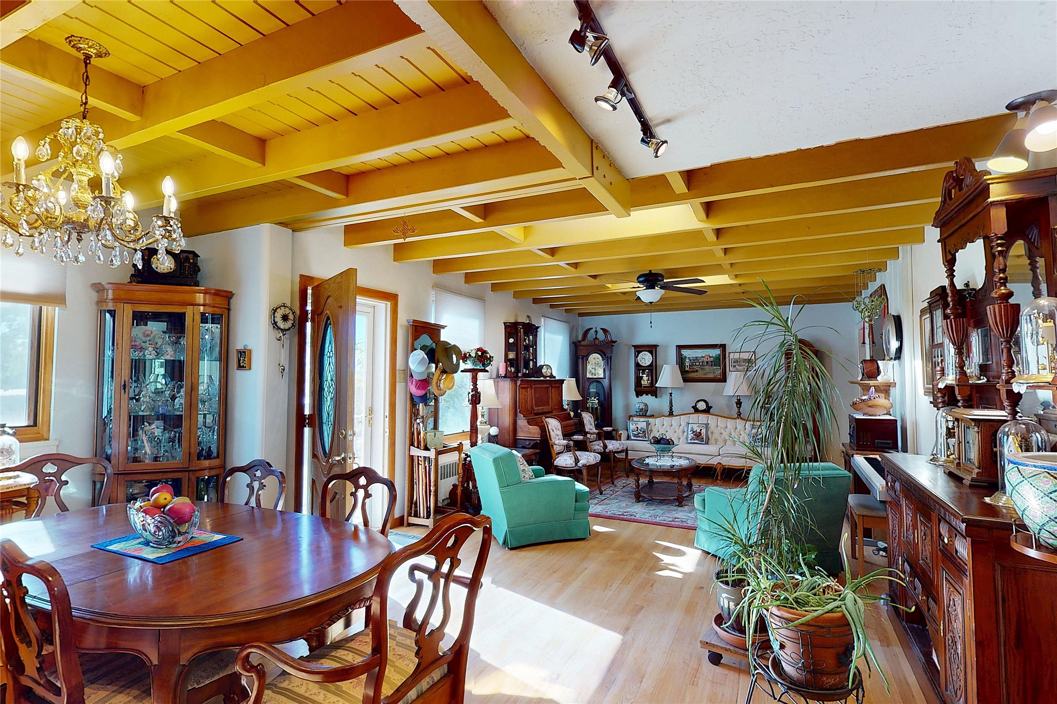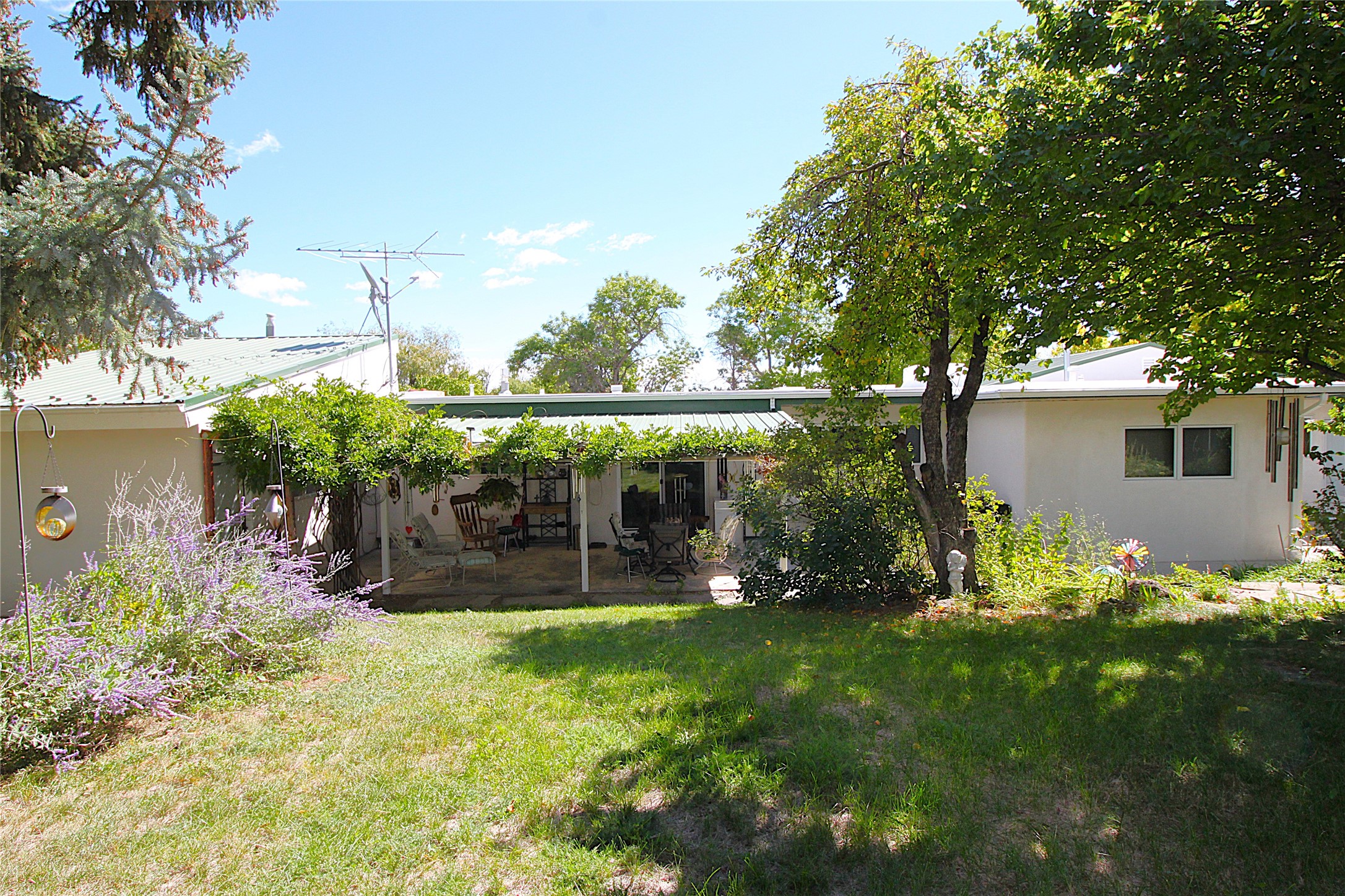 Oversized Garage + Historic Charm in the Western AreaThis 3-bedroom, 2-bath home in the sought-after Western Area blends historic character with thoughtful updates and generous living spaces. Inside, you'll enjoy two living areas, two dining areas, and abundant storage, with rich wood floors and wood ceilings adding warmth throughout. The spacious primary suite is privately located at the back of the home, offering passive cooling, natural light, a walk-in closet, and an adjoining flex room currently used as an office. Two additional bedrooms and a full bath are situated on the opposite side of the home for added privacy. The original carport was enclosed and now functions as a large laundry and storage room, with potential to serve as an office or game room. The front-facing kitchen provides mountain views across the Western Area, while the beautifully landscaped backyard creates a private retreat with mature fruit trees and flowering plants--perfect for entertaining or relaxing. The oversized, insulated two-car garage boasts 8-foot doors, attic storage, and plenty of space for large vehicles plus a workbench. Additional upgrades include added insulation under the stucco, Pella windows, a convertible storm/screen door, tankless hot water heater, and gutter guards. Steeped in history as the former home of Harold Agnew, this property offers a unique blend of charm, comfort, and convenience--just minutes from LANL, Los Alamos Medical Center, parks, and trails. Schedule your showing today!