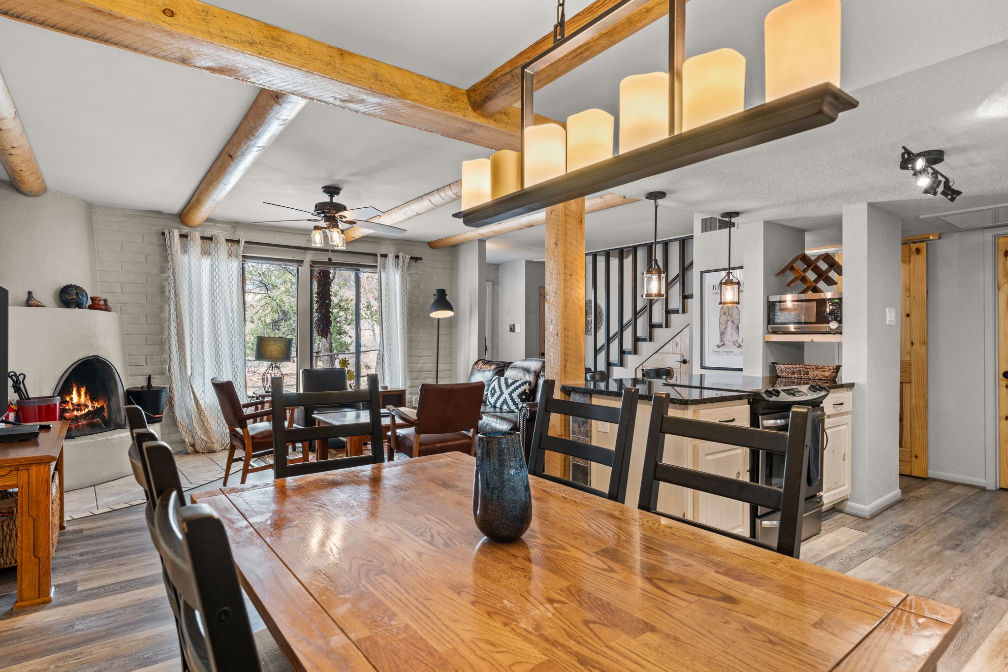 Just minutes from the Historic Santa Fe Plaza, this beautifully maintained 2-bedroom, 2-bath Fort Marcy condo offers the perfect blend of comfort, convenience, and investment potential. The residence features a contemporary feel with an updated kitchen and bathrooms, abundant natural light from extra windows, and wonderful views of the grassy gazebo in a forest-like setting where deer are often seen.Access is simple, with parking close by and just a couple steps to the front door. A cozy kiva fireplace adds authentic Santa Fe charm.This turn-key property is being sold fully furnished--including appliances, housewares, electronics, linens, and dcor--making it move-in ready for a full-time residence, part-time retreat, or short-term rental. The condo is already enrolled in a nightly rental program, and the existing VRBO and Airbnb listings can transfer to the buyer if desired, making it an effortless investment opportunity.Recent community updates include a brand-new 20-year roof, adding confidence for years to come. Fort Marcy amenities include an indoor pool, hot tub, clubhouse, landscaped grounds, and on-site management. HOA dues cover exterior building and roof maintenance, water/sewer/refuse, cable, internet, snow removal, and groundskeeping.This property checks all the boxes: location, views, convenience, updates, and income potential. Don't miss this exceptional opportunity to own one of the best units at Fort Marcy!