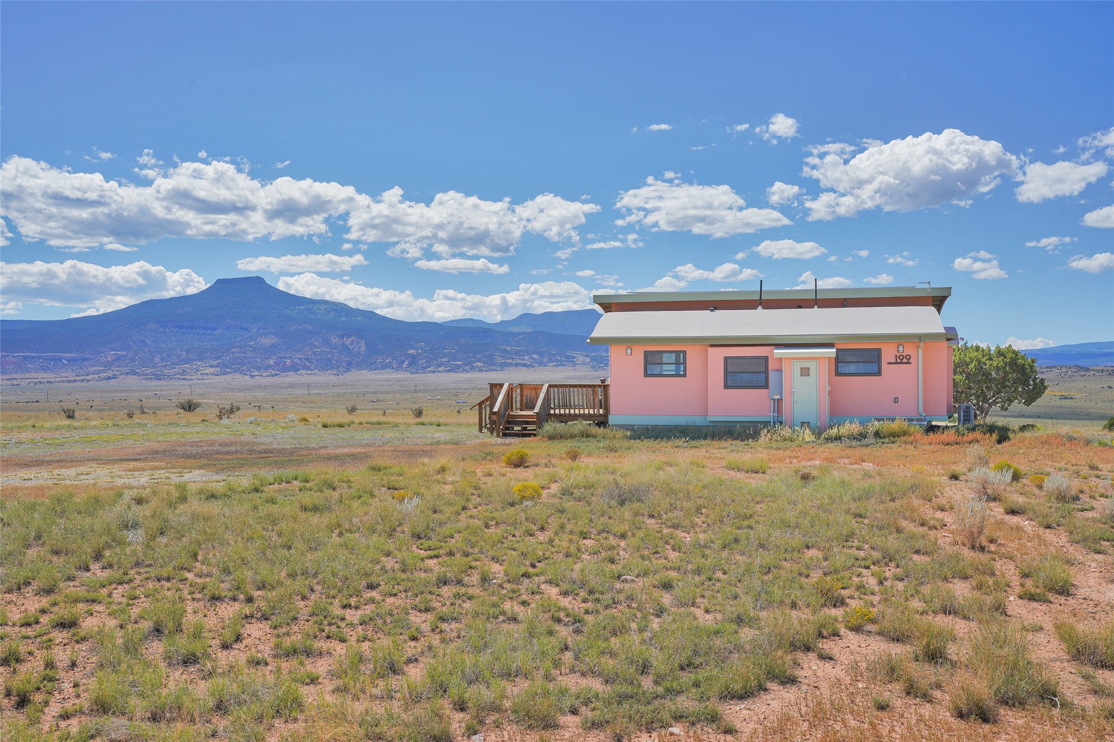 199 Private Drive 1728 in Youngsville sits on five acres with access to a private boat ramp and recreation area on Abiquiu Lake. Behind a motorized gate, the property offers both privacy and convenience. The 768-square-foot home, completed in 2020, was designed around the idea of efficient living. High ceilings, clerestory windows, and rounded corners create an easy flow through two bedrooms, a full kitchen, dining nook, living area, and three-quarter bath.Energy-efficient windows and appliances, mini-split heating and cooling, and smart-home features are already in place. The home is tied to the grid, and the solar array helps offset electric costs, with the option to add battery backup if desired. Low-flow fixtures, low or no-VOC finishes, and fire-resistant siding contribute to its durability and efficiency.The property is served by a shared well with a reverse osmosis system and a conventional septic system. From the house, the views reach across Ghost Ranch, Cerro Pedernal, and Mesa Prieta--landscapes that define northern New Mexico. With gated entry, lake access, and a home designed for efficiency, this property offers a comfortable balance between setting and design.