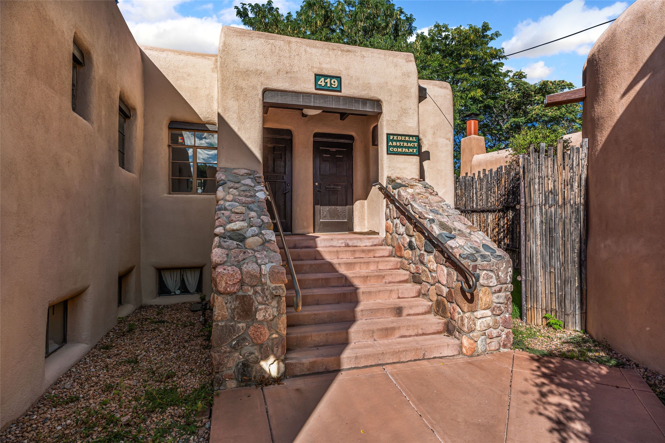 Excellent opportunity to own a mixed-use building on E. Palace Avenue in the heart of the Historic Eastside. Zoned BCD Zone 4 which includes residential and multiple commercial uses. Two-story building with elevator comprised of 3,555 sq. ft. Onsite parking. This is a one-of-a-kind property. Adobe (Primarily) and Frame construction; building is commercially wired and plumbed. Outside security lighting and security/fire alarm. 8 parking spaces and storage unit conveys with sale. Ideally located just minutes from the downtown historic plaza and Canyon Rd.
