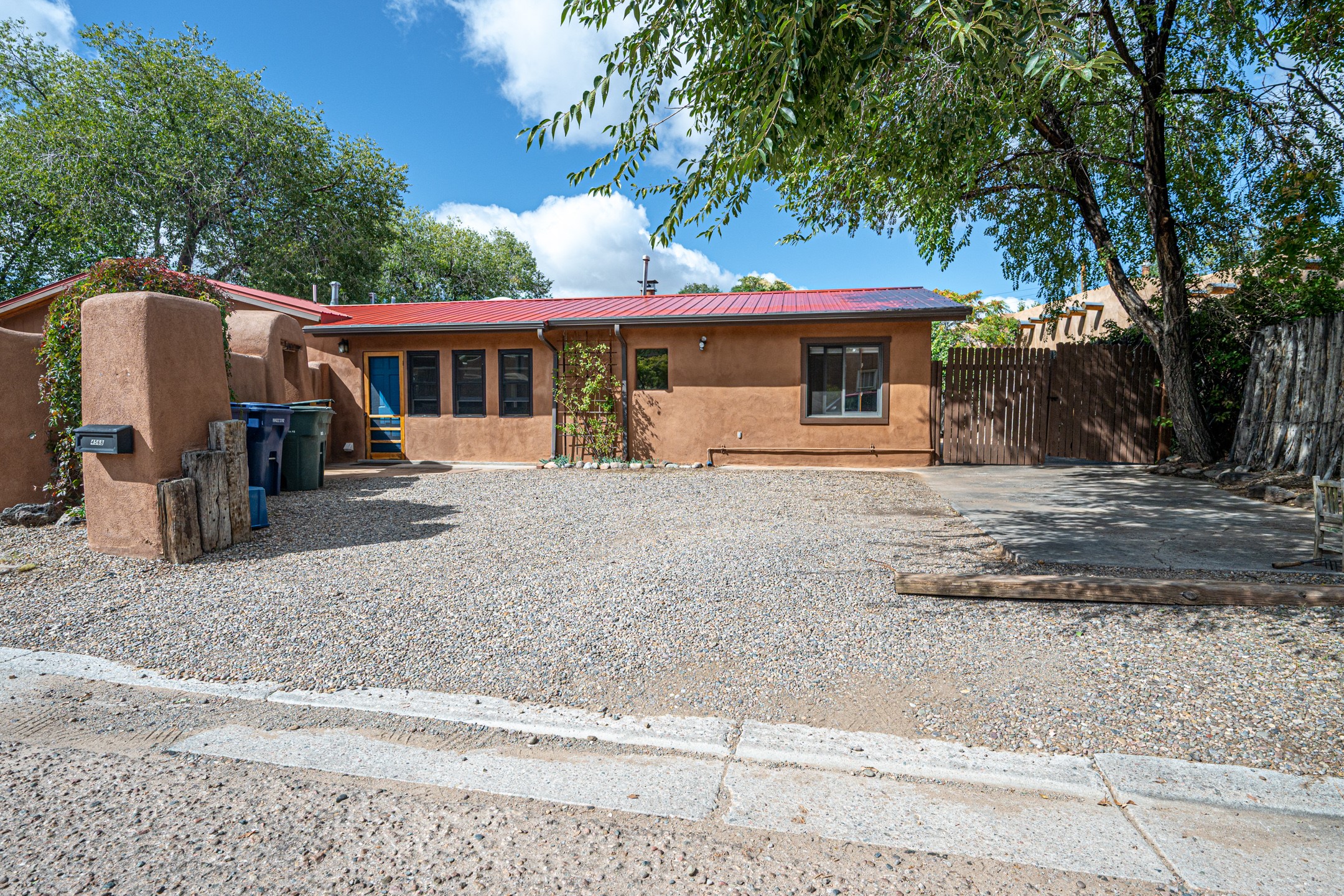 This quintessential Santa Fe style property offering Kiva fireplace, willow doors, Talavera and Saltillo tile, nichos, a walled courtyard, and off-street parking is tucked away in the much sought after Railyard Arts District. The setting is peaceful and quiet yet only a quick 5 minute jaunt to The Violet Crown, Farmer's Market, park, outdoor concerts, coffee shop, pubs, restaurants, and the vibrant vibe offered along Guadalupe Street! About a 15 minute walk to The Santa Fe Plaza where you will find shopping, world-class dining, and galleries along with stellar museums. Walking and cycling trails are minutes away making this the perfect urban home. One can even hop on the train for a ride to Albuquerque! Opportunities Abound for this property which features a home with attached guest house. You can live in one unit and rent the other or rent them both! There is even room to add a casita! Easy access to St. Francis Drive is a plus for those who commute to Los Alamos! Both units offer office space for those who work from home. A Must See!