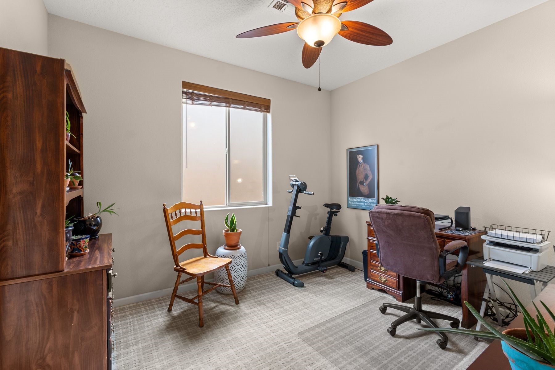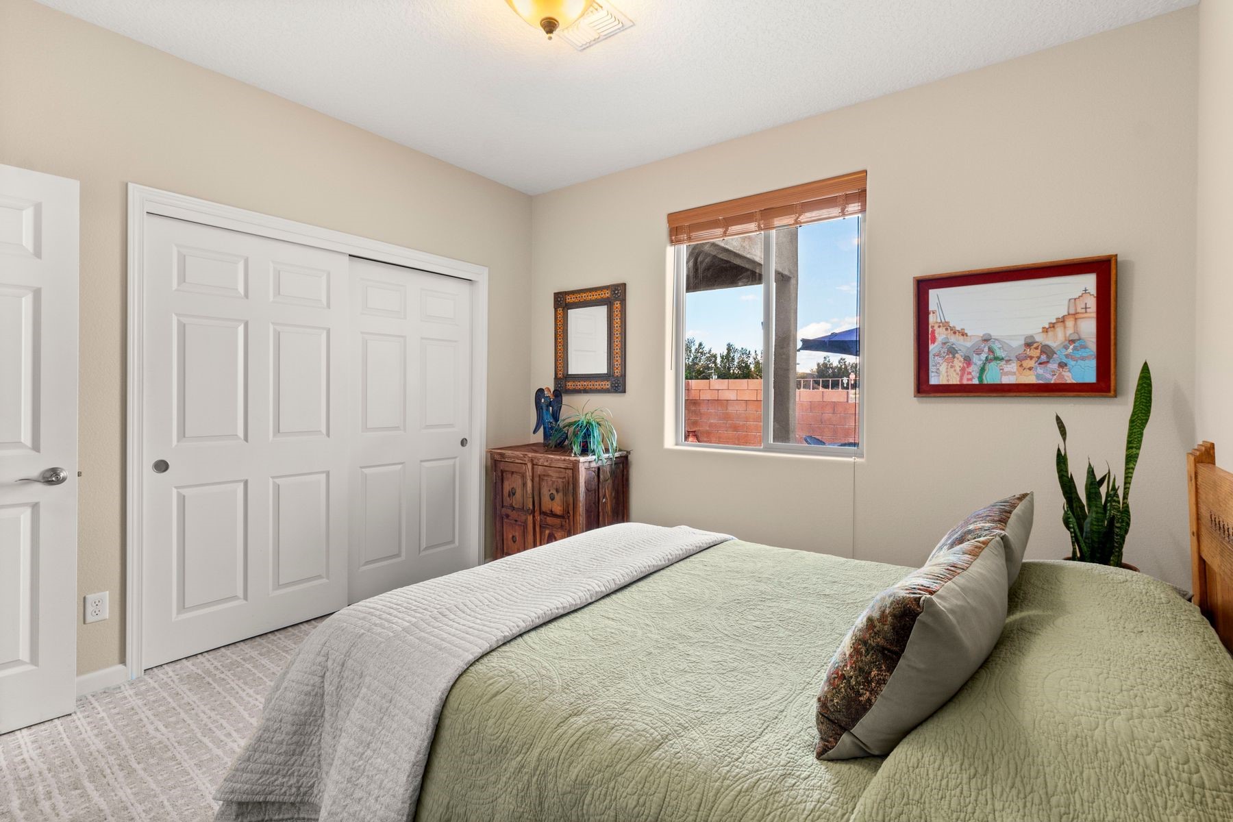 This Rancho Viejo home combines soft contemporary style with functional design. The open concept floor plan supports easy living, and the primary suite is privately located away from the guest bedrooms. Refined touches add a timeless character, and the property enjoys striking views of the Sangre de Cristo Mountains. A community park with picnic tables, benches, and playground equipment sits just a block away, adding to the appeal. Stretching across 11,000 rolling acres, Rancho Viejo is thoughtfully planned to provide a sense of community, while maintaining the wide open spaces with 50 percent of the land preserved as natural open space, parks and winding trails. The combination of comfort, style, and setting makes this a truly inviting residence.