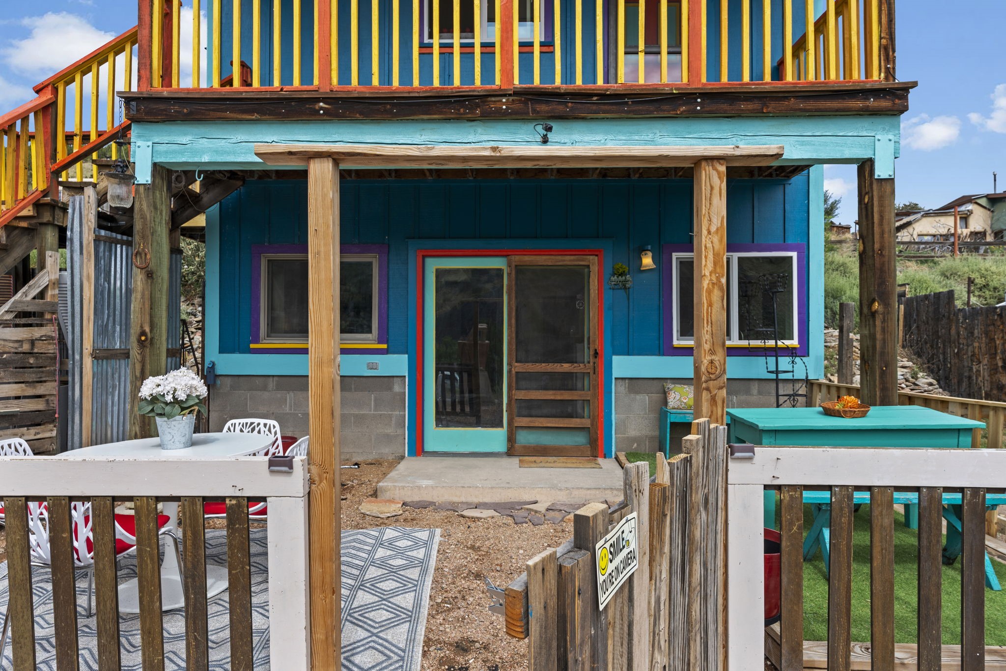 Authentic Magical Madrid Cottage with Creative Spaces! This sun-soaked gem blends possibility with artistic living. The upper level features a one-bedroom, one full bathroom, full kitchen owner's suite with a private deck perfect for morning coffee or stargazing. Below, features a flex space like no other. Open floorplan with one bathroom and full kitchen. Great family home. With a separate entrance, the downstairs is perfect for a full-time rental or a short-term rental. Commercial space to display your unique art, local jewelry, homemade candles, local apparel, or anything your heart desires, while living upstairs and walking to enjoy all that Madrid has to offer! PLUS, lot next door is included. Perfect for additional parking or bldg. Amy Biehl Elem, Milagro Middle, SF High. YOU'RE HOME!
