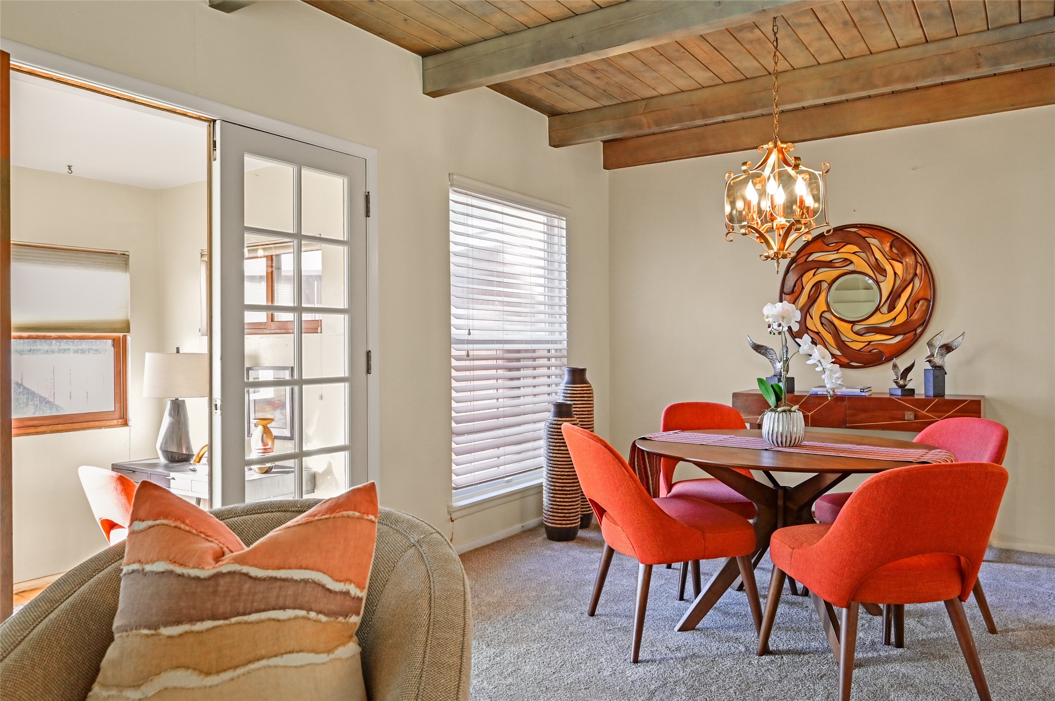 Step into this charming 2-bedroom, 2-bath retreat of approximately 1,384 sq ft in the desirable Park Plazas neighborhood of Santa Fe. This home offers an exceptional blend of comfort, potential and outdoor space.Inside, the residence showcases a flowing open-living concept anchored by a living room with a kiva fireplace and rich New Mexico character. The adjacent kitchen and dining area afford functionality and ease for daily living and entertaining. Two well-sized bedrooms provide room for guests, a home-office or creative studio, and the full bath completes the thoughtfully arranged floorplan.Outside, the expansive lot offers unique potential-- imagine a private terrace or garden oasis, within a serene, tucked-away setting yet minutes from city conveniences. Walkable trails, community green space and an active HOA atmosphere make Park Plazas a unique address in the Santa Fe market.