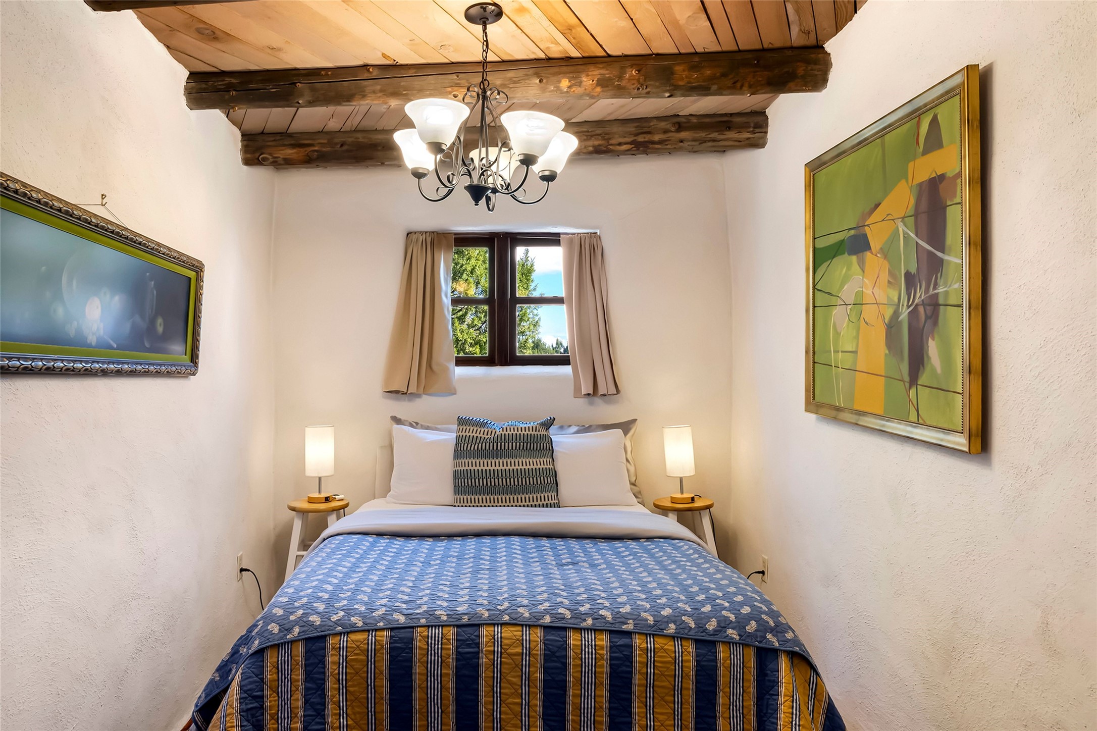 Experience the ultimate Southwestern lifestyle--where vast skies, sweeping mountain vistas, and timeless Santa Fe architecture come together on 12.5 private acres along the historic Turquoise Trail. Just a short drive from Santa Fe, this rolling, historic parcel offers three distinct structures: a two-bedroom main house, a one-bedroom guest casita, and an open-plan studio--ideal for an artist's workspace, creative retreat, or flexible additional living space. The main residence blends authenticity and comfort with hallmark Santa Fe craftsmanship. High ceilings with massive round vigas, hand-painted Mexican tile, custom wood doors, and hand-forged ironwork create a home rich in character and warmth. Natural light fills each room, and the easy flow to multiple patios and portals makes outdoor living effortless. From every vantage, the property captures stunning views of surrounding mountain ranges and the endless New Mexico sky--perfect for entertaining, dining alfresco, or quiet reflection. The freestanding one-bedroom, one-bath guest casita offers its own sense of serenity, with multiple outdoor living spaces that frame sweeping views of the Ortiz Mountains. Ideal for guests or extended stays, it provides privacy while keeping nature close at hand. The nearby studio, with its open-concept design, dedicated bedroom space, kitchen, and inspiring light, is a dream space for artists, writers, or anyone seeking a creative sanctuary. Rooted in history, this land was once part of the ancient San Marcos Pueblo, offering a deep sense of place and tranquility. Here, privacy, beauty, and authenticity define daily life--all within easy reach of Santa Fe's renowned culture, dining, and galleries.