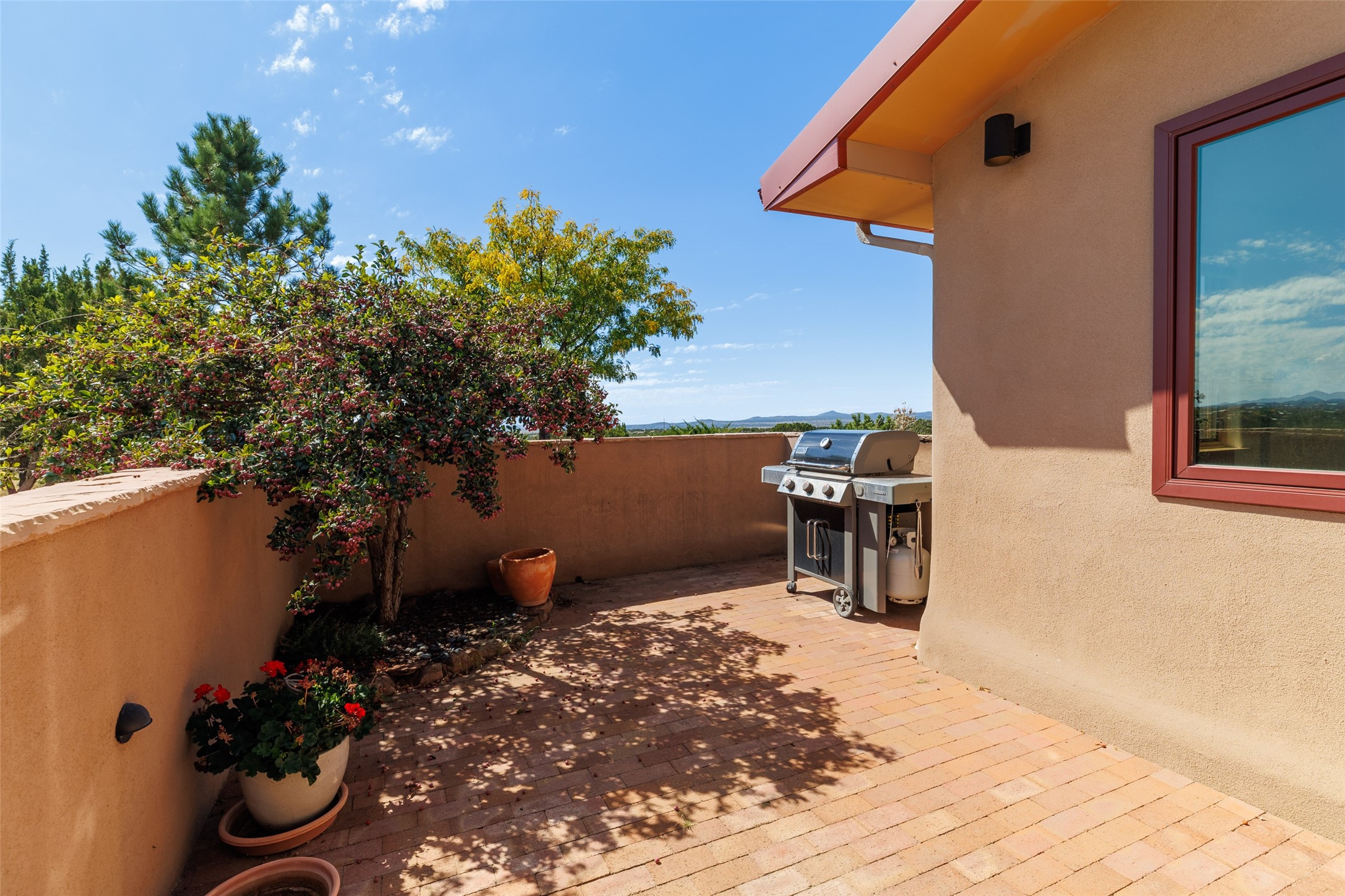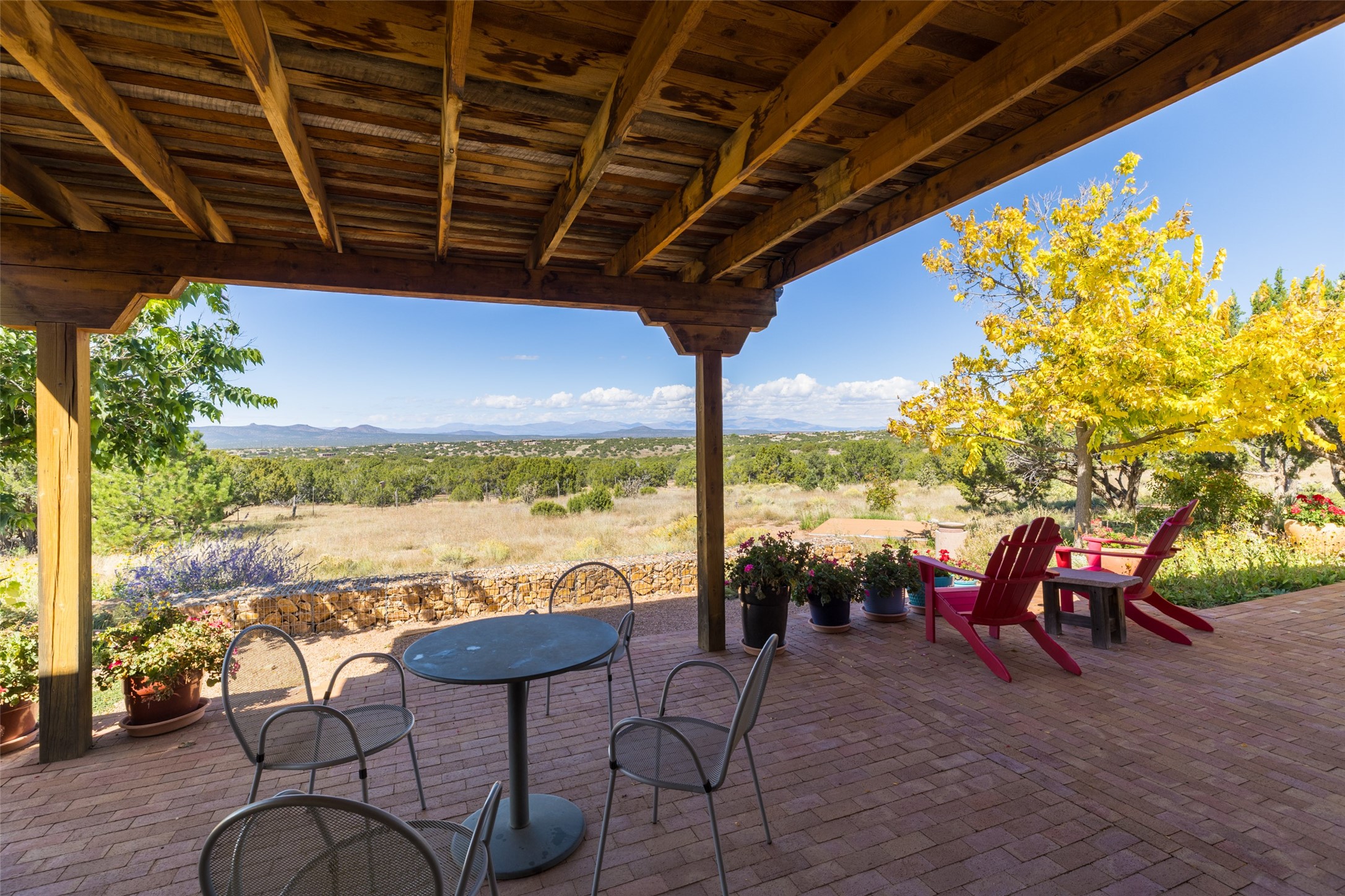 Set on 3 private acres with sweeping views of the Jemez and Sangre de Cristo Mountains, this contemporary home blends style, efficiency, and versatility. The 2-bedroom, 2-bath main house features an updated primary suite, newer kitchen, windows, and cork flooring. Owned solar panels help offset electric bills, adding to the home's sustainability. Creative and functional spaces expand the possibilities: a detached, 1050 sq ft, artist studio with its own bathroom, a 600 sq. ft. heated and cooled garage with office, a potting shed, and an additional storage shed. Established gardens and cisterns for water catchment support irrigation and year-round enjoyment of the land. With no HOA restrictions and a setting designed for privacy, this property offers freedom, modern comfort, and inspiring Northern New Mexico views -- all in one remarkable package.