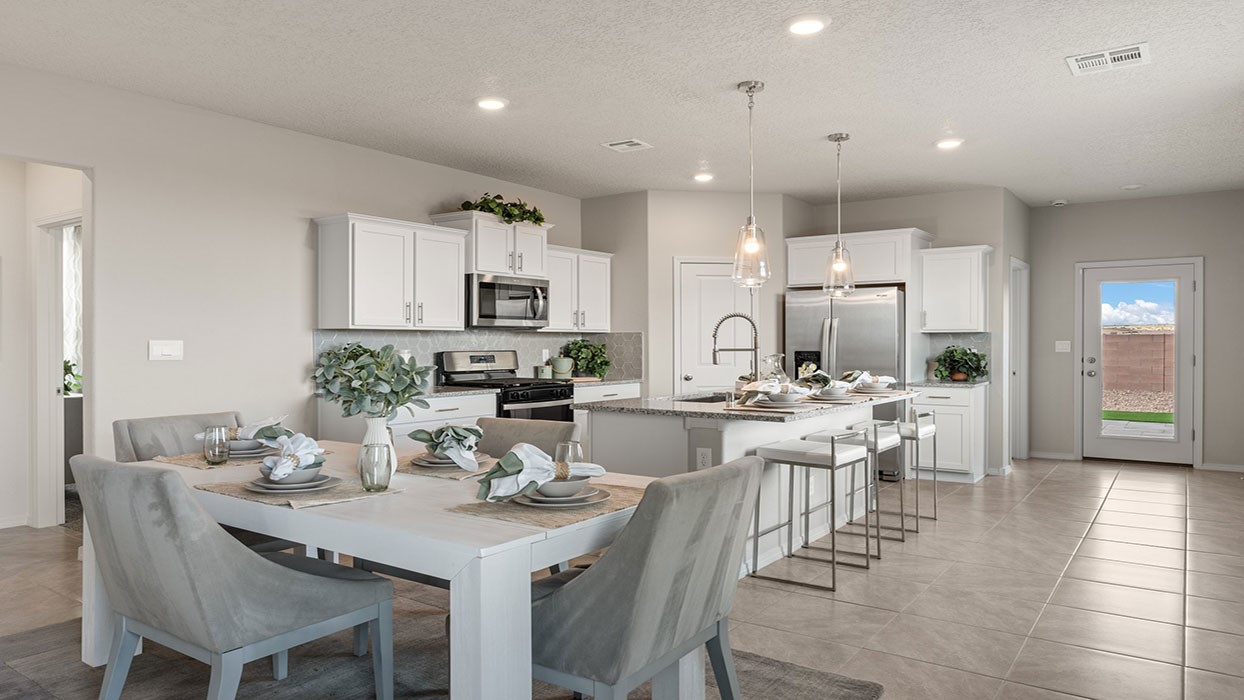 This beautifully designed 1,602 sq ft single-story home offers a versatile and spacious layout, perfect for modern living. Featuring in Desert Skies colors, it is a four bedrooms and two bathrooms, this home provides ample space for families or those who enjoy having extra rooms for guests/office/hobbies. The open-concept living area flows seamlessly into the dining and kitchen spaces, creating a perfect environment for entertaining and day-to-day activities. The kitchen is well-equipped with generous counter space and storage, making meal preparation both practical and enjoyable. The owners suite includes a private en-suite bathroom and a walk-in closet, creating a peaceful retreat. An attached two-car garage provides convenient access.