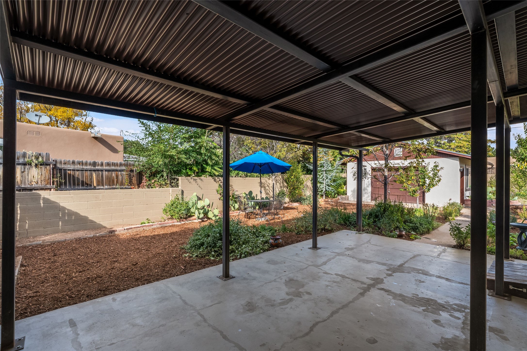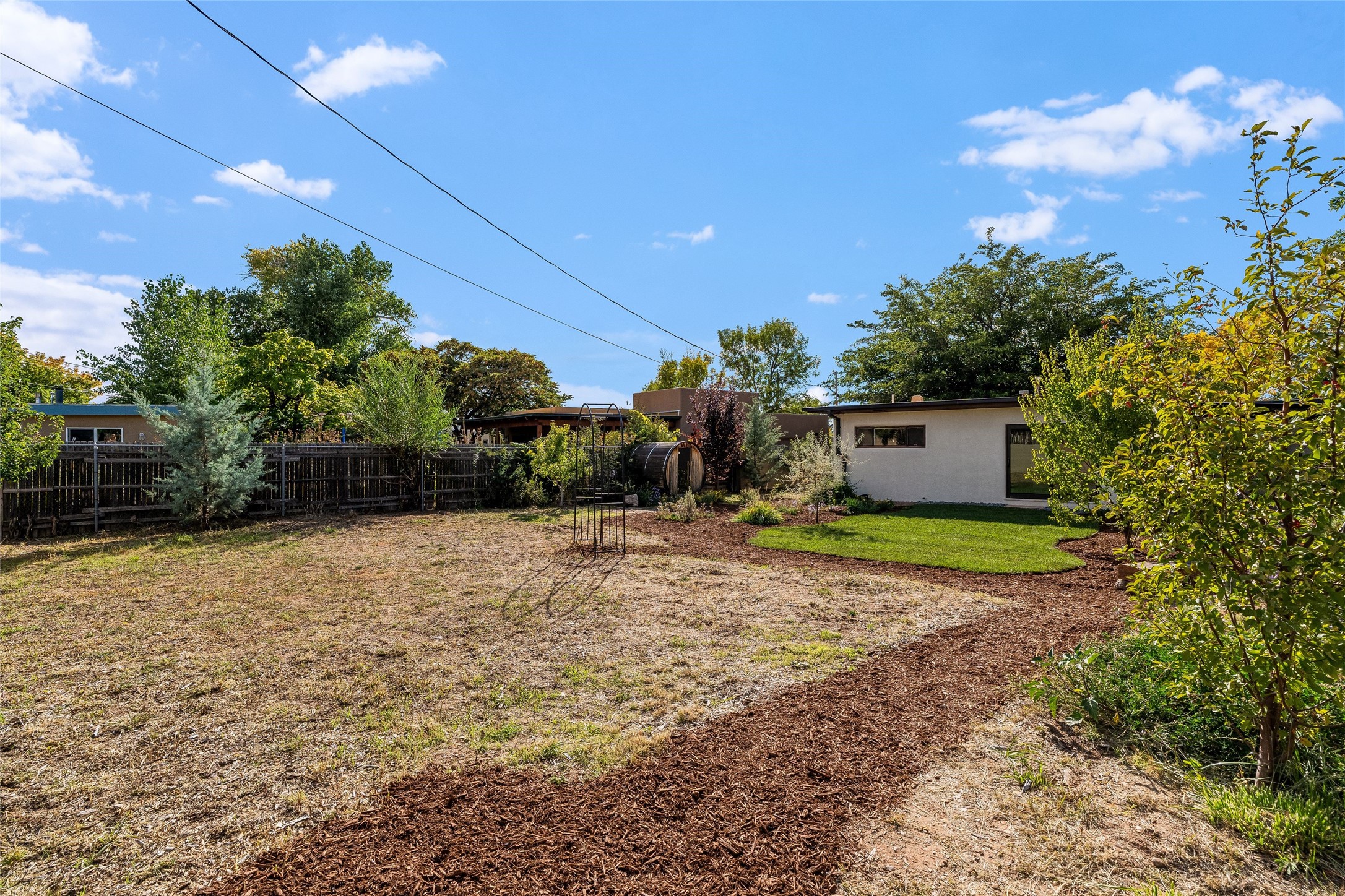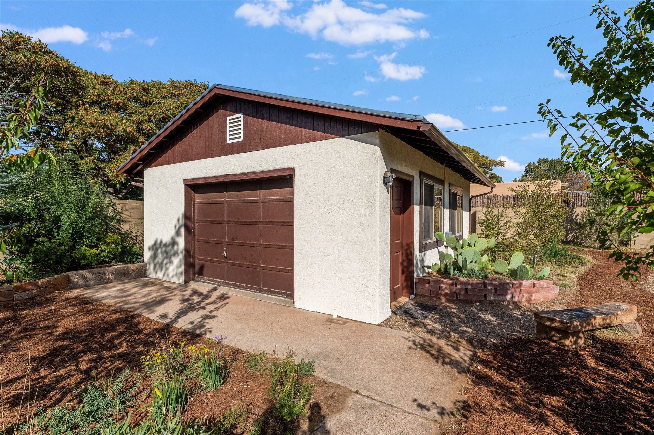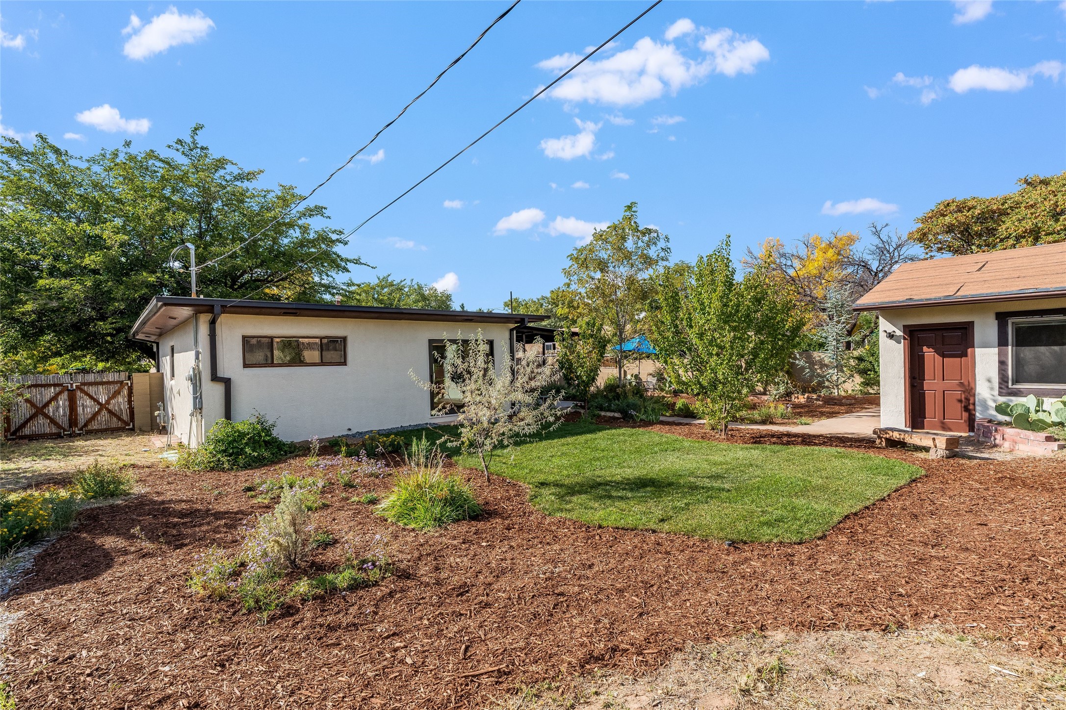 Welcome to 207 Las Mananitas, a precious and authentic Stamm home filled with Santa Fe charm and light located in the coveted Casa Solana neighborhood. Single level, 3 beds, 1 bath, with a large and bright detached studio/workshop with its own utilities, offering wonderful flexibility for art, hobbies, or a home office -- a real jewel! All this with no HOA fees. Inside the home radiates warmth with original oak hardwood floors and finishes, a classic kiva fireplace, and Stamm's signature craftsmanship that gives each room a timeless appeal. The open floor plan connects the living, dining, and kitchen spaces creating a bright and inviting atmosphere. Outdoors, the beauty continues on a spacious irrigated lot framed by mature fruit trees and manicured gardens. Relax on the flagstone front patio, unwind in the outdoor sauna under the stars, or simply enjoy the peace and privacy of your lush backyard oasis. Thoughtfully maintained with a maintained roof and reliable systems, this gem is move-in ready yet offers ample opportunity to add your personal touches. Located just minutes from the Santa Fe Plaza, Canyon Road, neighborhood parks, and walking trails, this home captures the best of authentic Santa Fe living -- charm, character, and possibility in one delightful package."