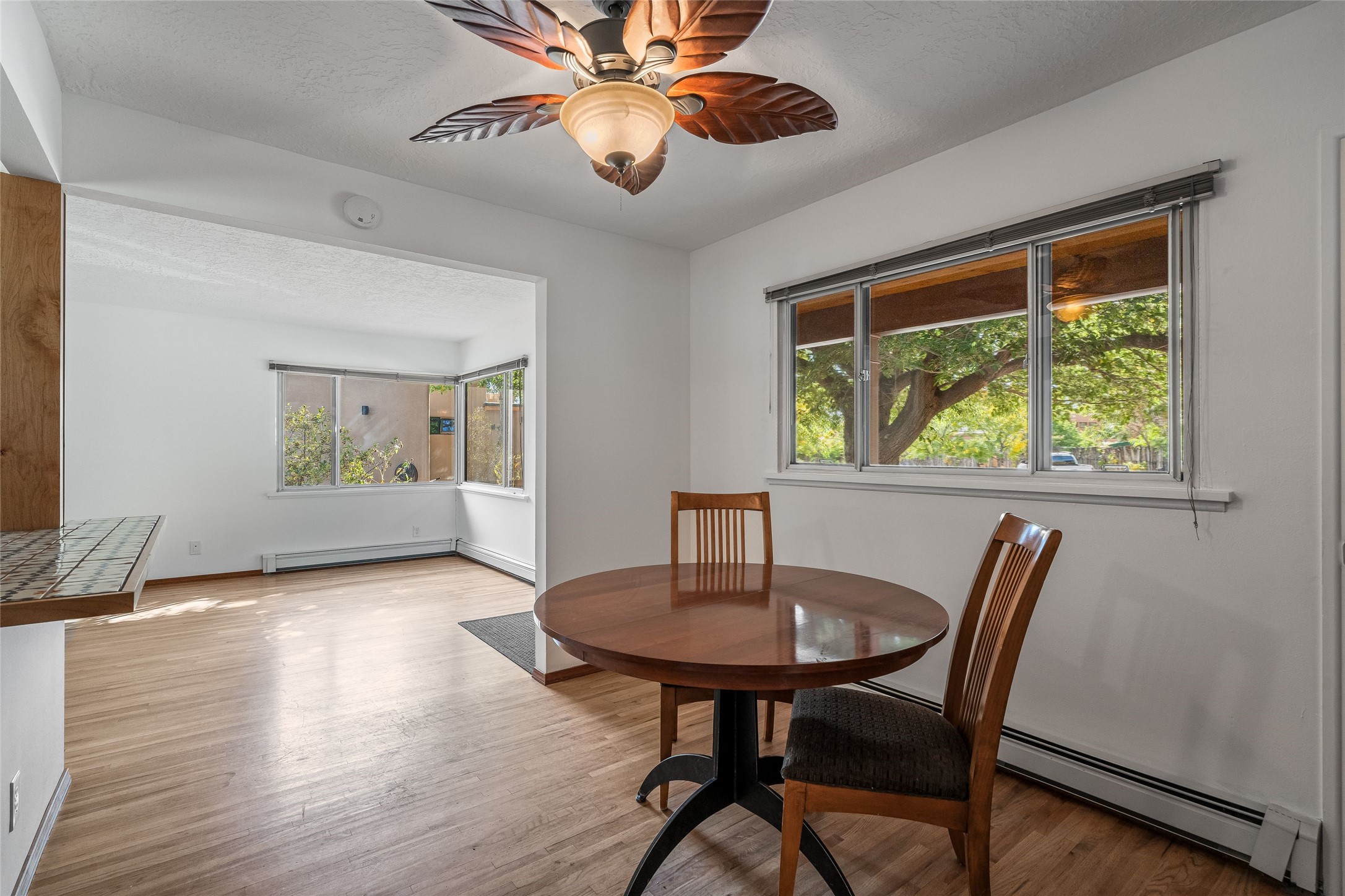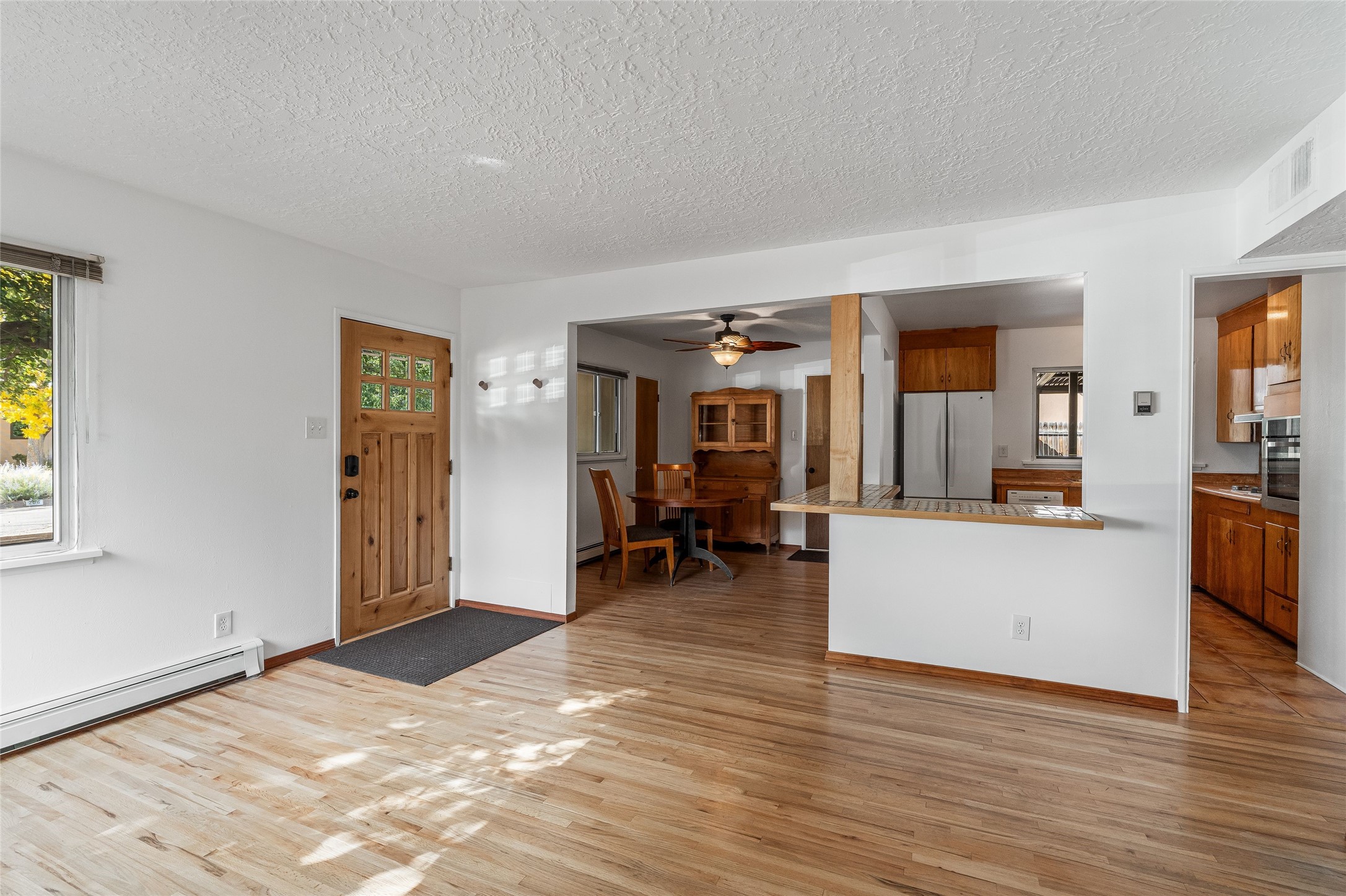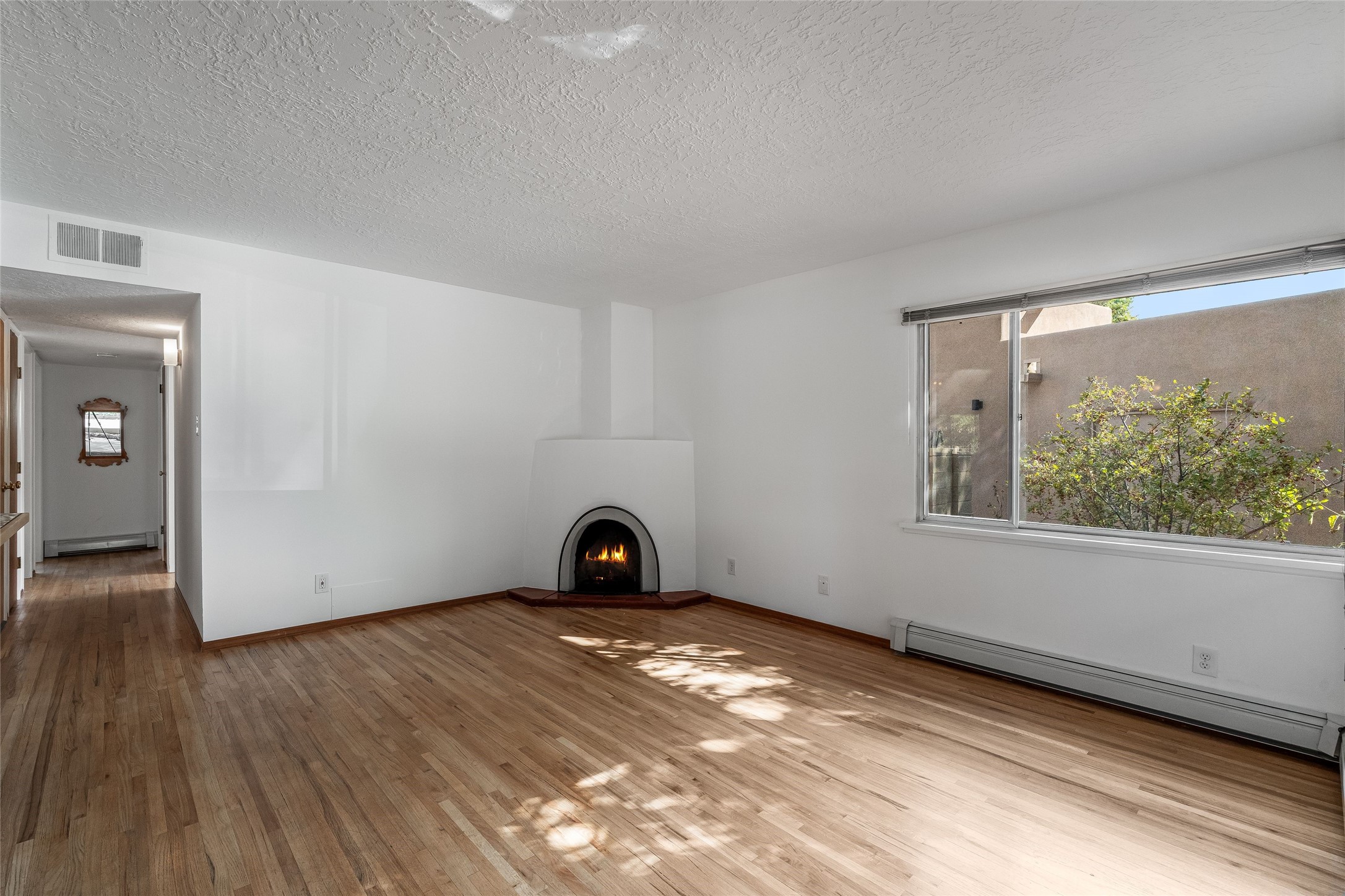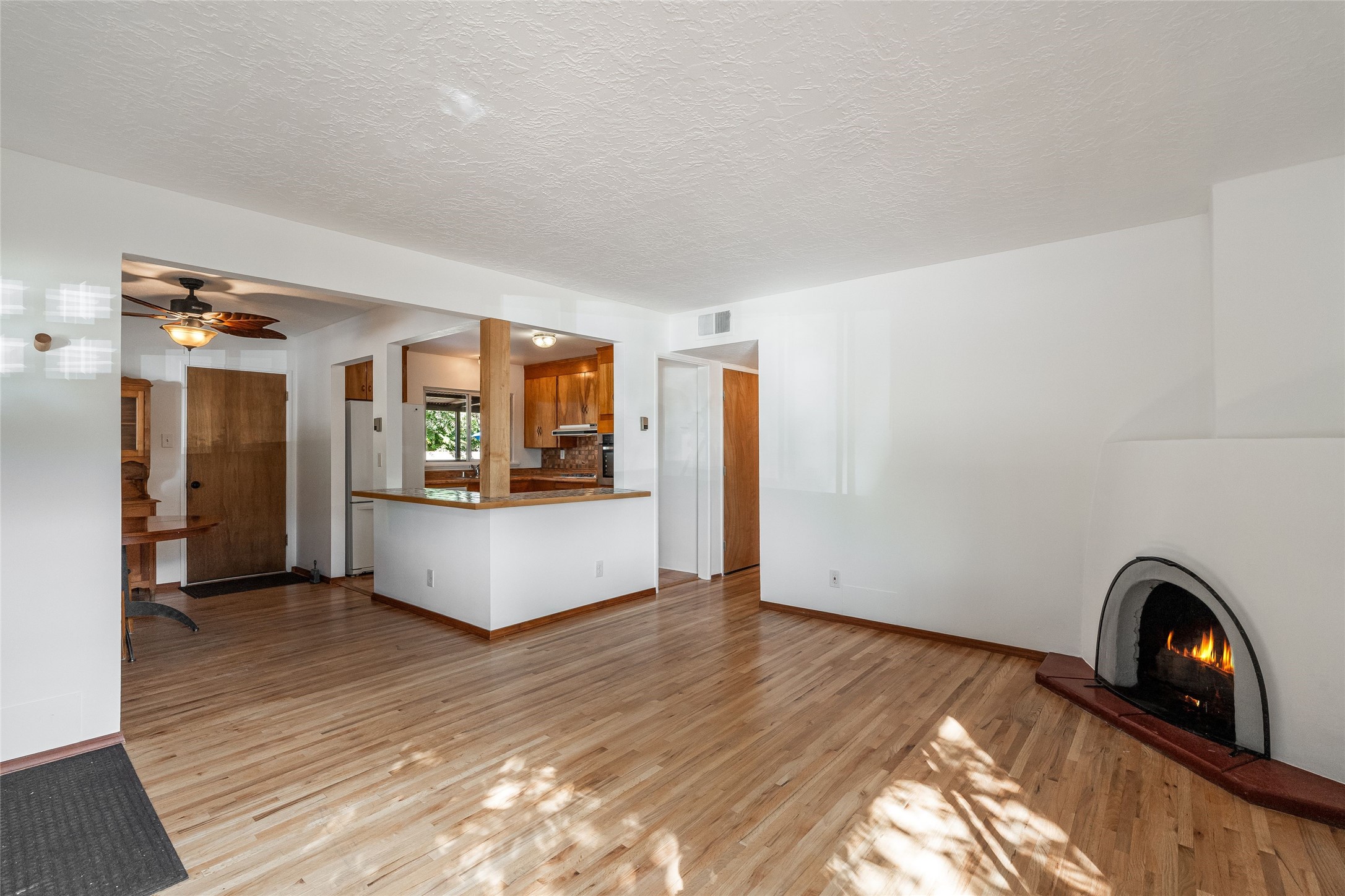 Welcome to 207 Las Mananitas, a precious and authentic Stamm home filled with Santa Fe charm and light located in the coveted Casa Solana neighborhood. Single level, 3 beds, 1 bath, with a large and bright detached studio/workshop with its own utilities, offering wonderful flexibility for art, hobbies, or a home office -- a real jewel! All this with no HOA fees. Inside the home radiates warmth with original oak hardwood floors and finishes, a classic kiva fireplace, and Stamm's signature craftsmanship that gives each room a timeless appeal. The open floor plan connects the living, dining, and kitchen spaces creating a bright and inviting atmosphere. Outdoors, the beauty continues on a spacious irrigated lot framed by mature fruit trees and manicured gardens. Relax on the flagstone front patio, unwind in the outdoor sauna under the stars, or simply enjoy the peace and privacy of your lush backyard oasis. Thoughtfully maintained with a maintained roof and reliable systems, this gem is move-in ready yet offers ample opportunity to add your personal touches. Located just minutes from the Santa Fe Plaza, Canyon Road, neighborhood parks, and walking trails, this home captures the best of authentic Santa Fe living -- charm, character, and possibility in one delightful package."