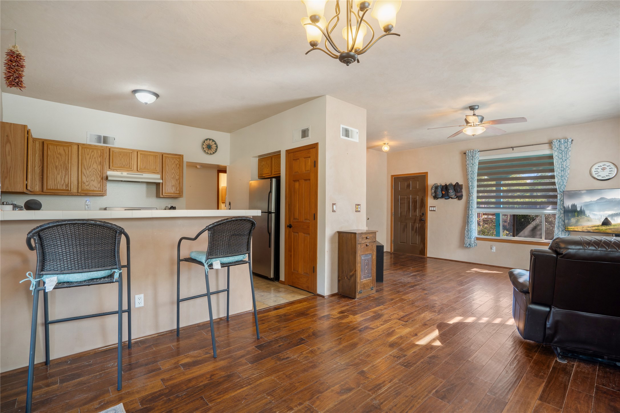 Santa Fe city southwest, the largest area of Santa Fe and still growing…. West SideThis older, family community boasts an eclectic mix of commercial development and mid-priced adobe structures. St. Anne's church and Larragoite elementary school help create a neighborhood atmosphere. Barrio de la CanadaClose to town and just west…