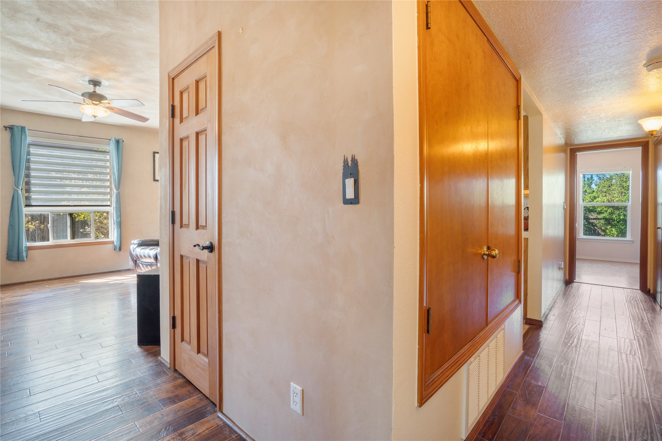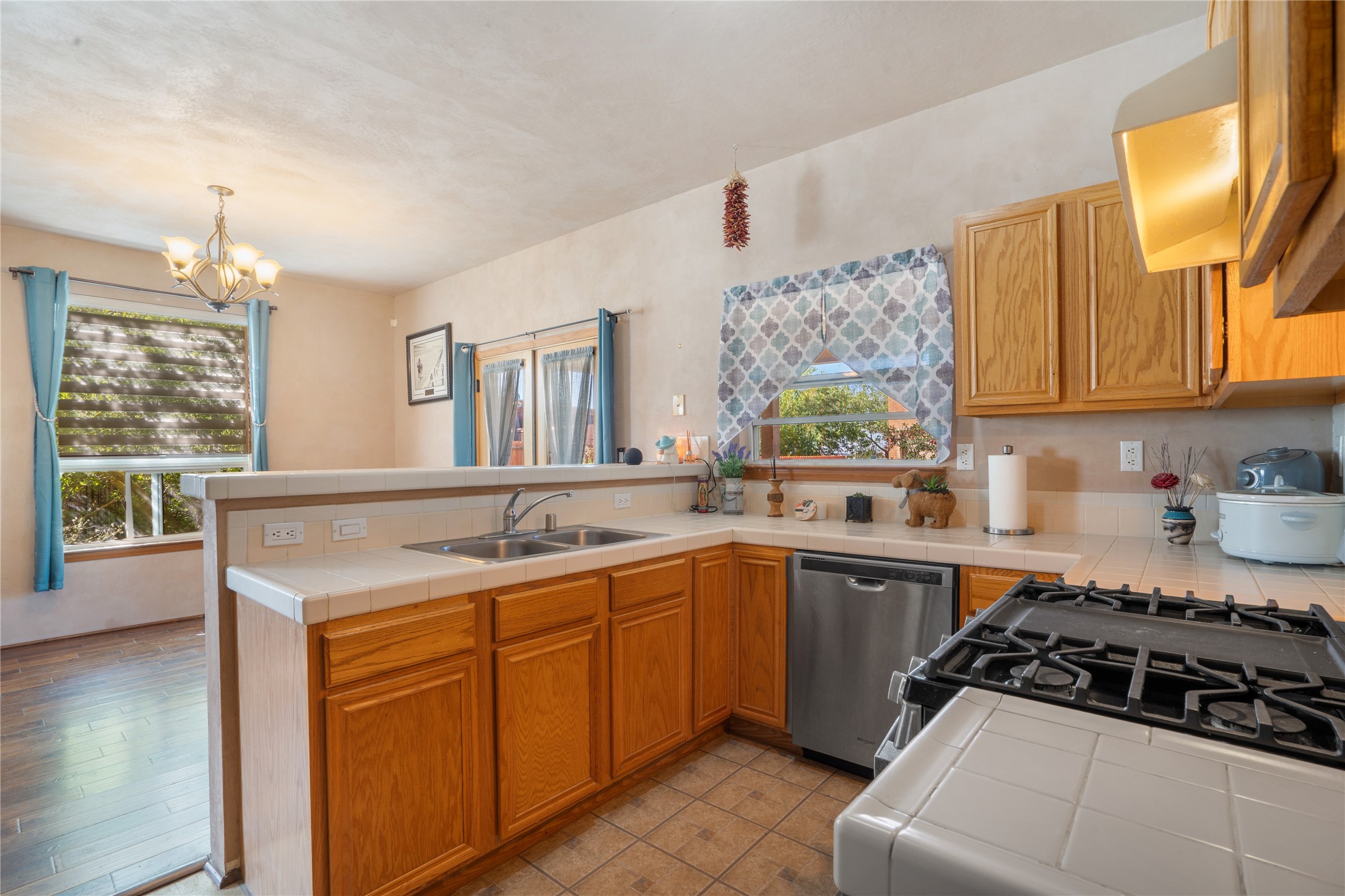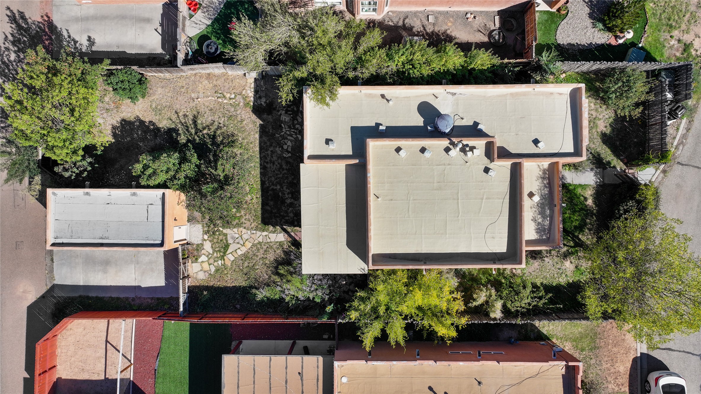 Charming 2-bedroom, 1-bath home with a 1-car garage and off-street parking. Comfortable, move-in ready living with tranquil outdoor spaces. A gated, fenced front yard with established, drip-irrigated plantings provides curb appeal and privacy. Inside, the living and dining areas flow into the kitchen, and an updated bathroom showcases clean, modern finishes. The fully enclosed backyard is a gardener's delight with bountiful apple trees and lush landscaping, plus a detached garage that could also serve as a gym or workshop. Ideally located with easy access to I-25 and NM-599 and near shopping, schools, popular restaurants, and Presbyterian Hospital. Schedule your showing today!
