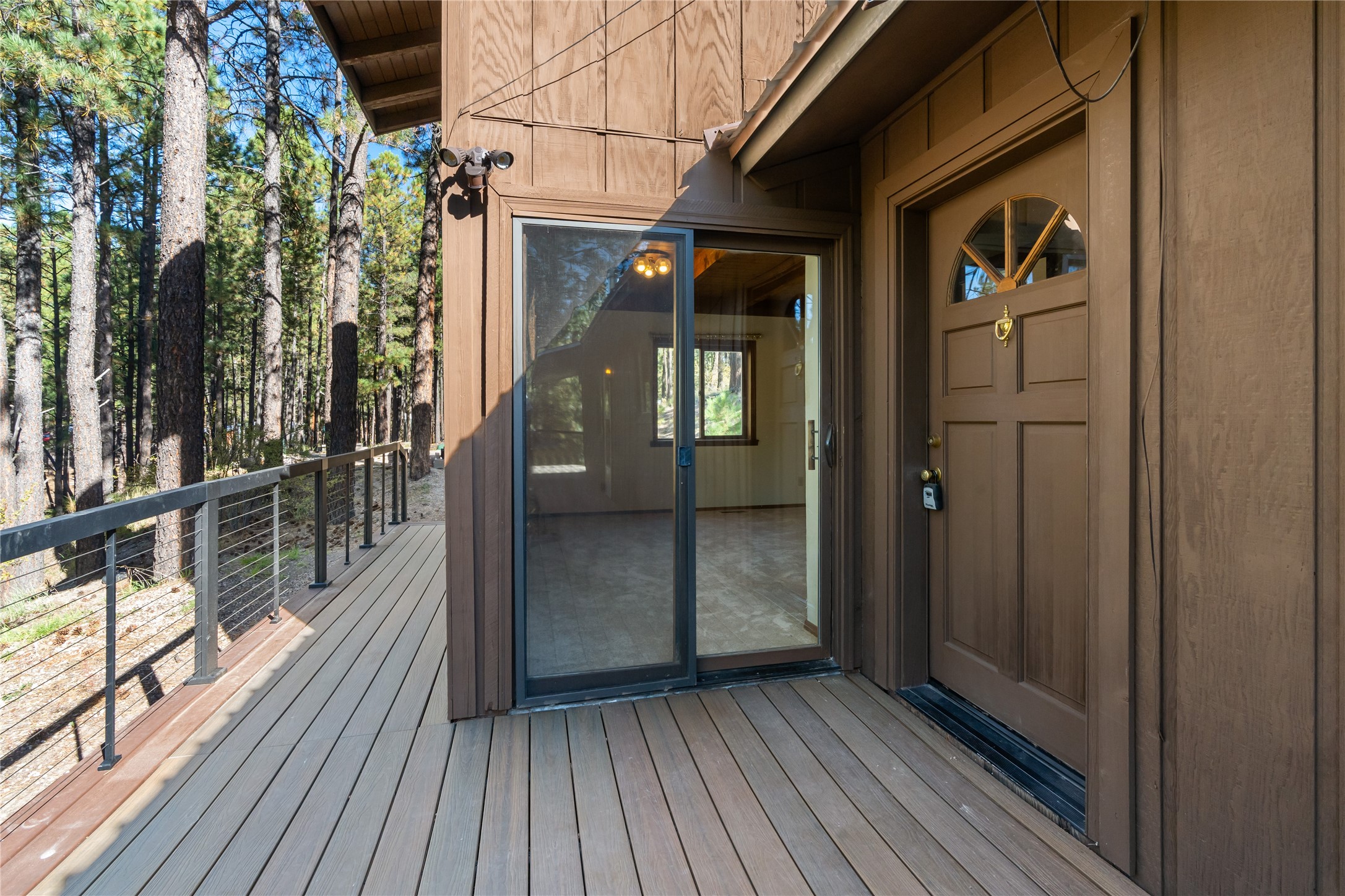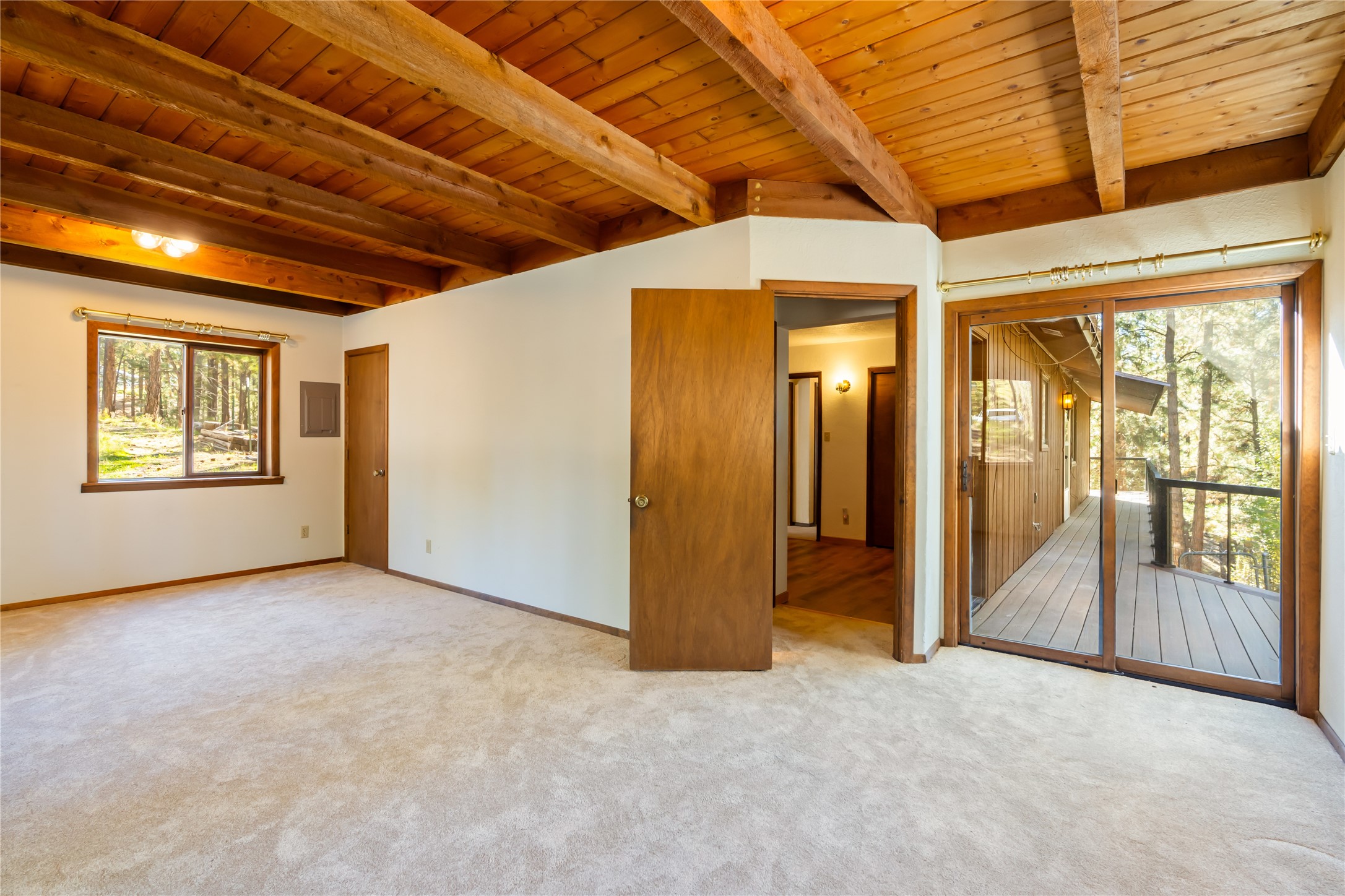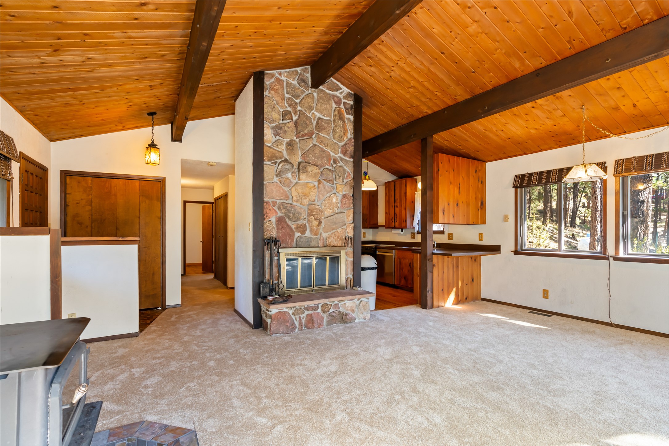 Fine Mountain Living in the heart of the Jemez Valley! Just 30 minutes to Los Alamos and minutes to the Valles Caldera and endless outdoor adventures. This 3-bedroom, 2-bath home features a warm and inviting living room with soaring vaulted wood-beam ceilings that capture the true mountain feel. A wall of sliding glass doors opens to a brand-new Fiberon deck, perfect for dining, relaxing, and soaking in the views. Enjoy both a woodstove and fireplace for cozy winter days. Set on 1.849 acres in the desirable Sierra Los Pinos subdivision, with HOA covering road maintenance and water supply. Come on up and take a look! Selling below appraised value.