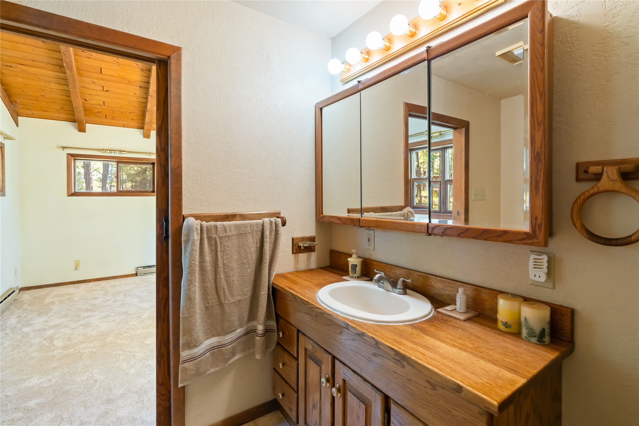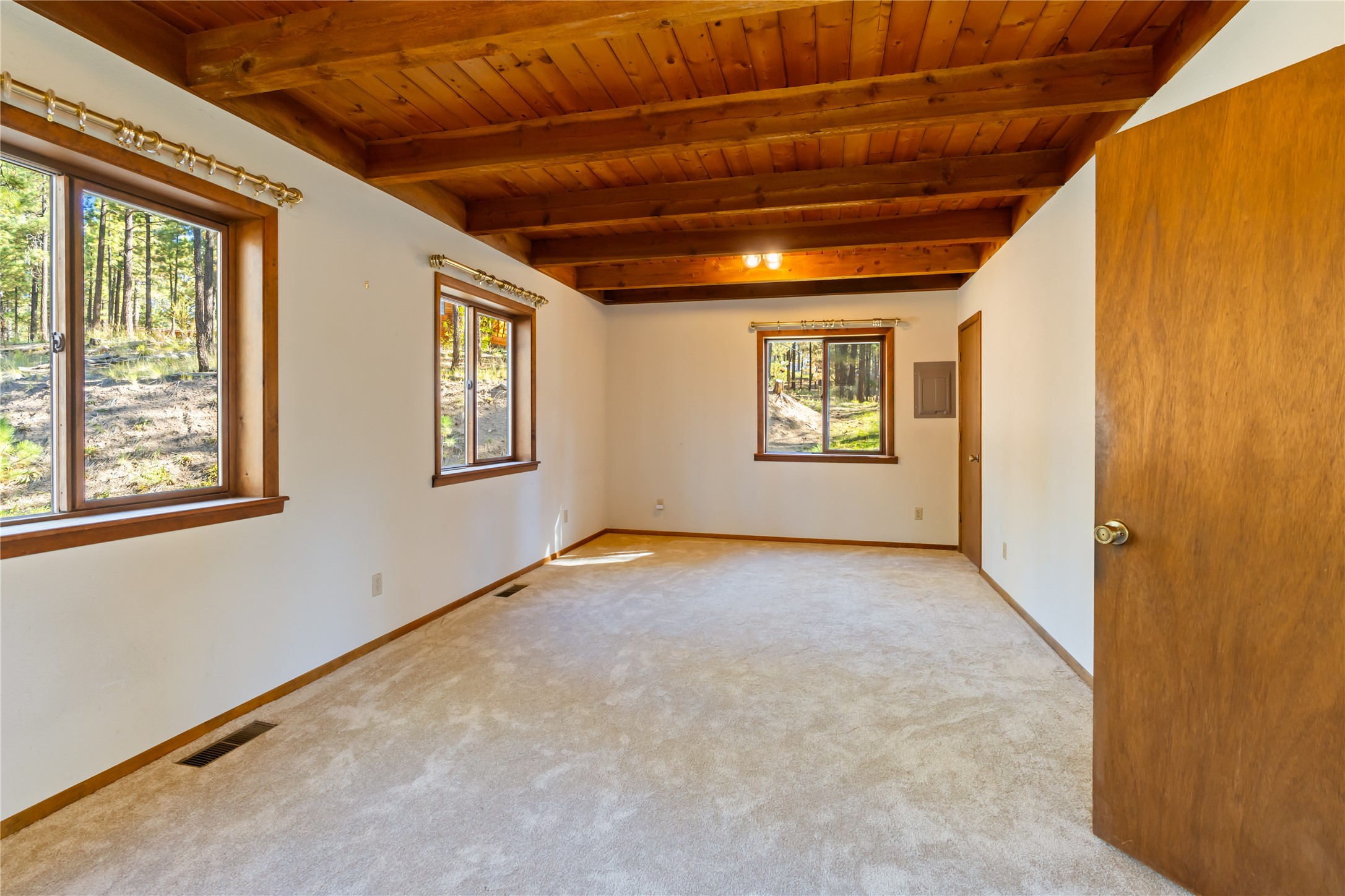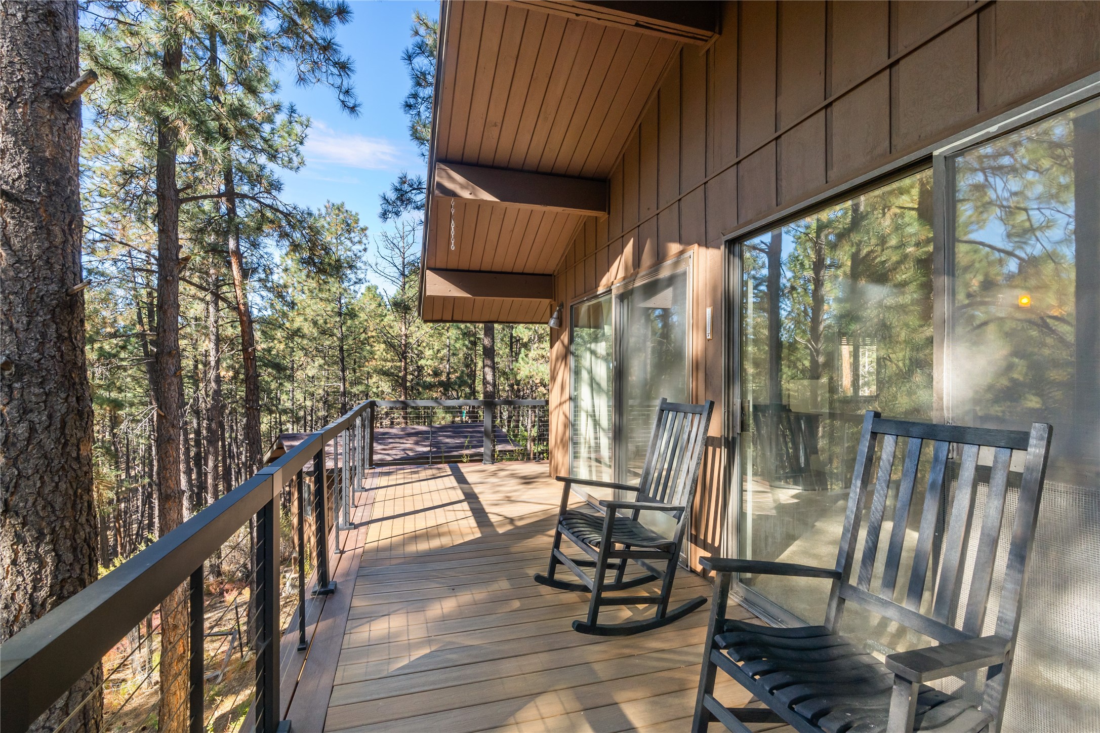 Fine Mountain Living in the heart of the Jemez Valley! Just 30 minutes to Los Alamos and minutes to the Valles Caldera and endless outdoor adventures. This 3-bedroom, 2-bath home features a warm and inviting living room with soaring vaulted wood-beam ceilings that capture the true mountain feel. A wall of sliding glass doors opens to a brand-new Fiberon deck, perfect for dining, relaxing, and soaking in the views. Enjoy both a woodstove and fireplace for cozy winter days. Set on 1.849 acres in the desirable Sierra Los Pinos subdivision, with HOA covering road maintenance and water supply. Come on up and take a look! Selling below appraised value.