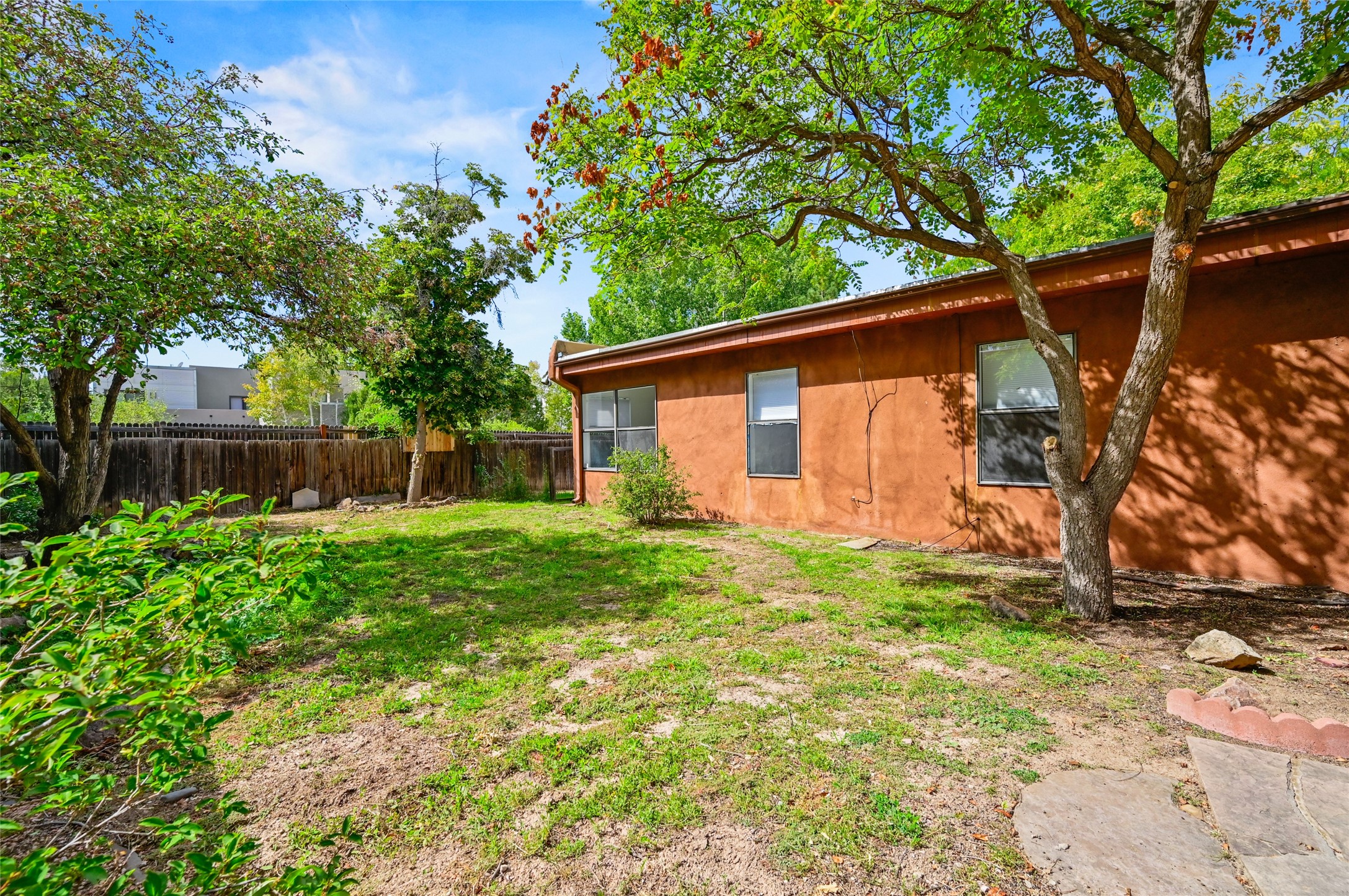 Nestled in the serene Pueblo Alegre neighborhood at the end of a quiet cul-de-sac, this bright and inviting home combines comfort with convenience. Situated opposite a lush park and surrounded by mature fruit trees, a vegetable garden, and a flagstone patio, the outdoor spaces are perfect for relaxation and connecting with nature. Inside, you'll discover new flooring and a well-maintained interior featuring a spacious, open layout and a primary bedroom with natural light and a custom closet. Enjoy easy access to scenic walking and biking along the nearby Santa Fe River Trail. Pueblo Alegre, a beloved subdivision opposite Frenchy's Field City Park, offers two small parks and a children's playground--creating an ideal setting for peaceful living just minutes from all Santa Fe has to offer.