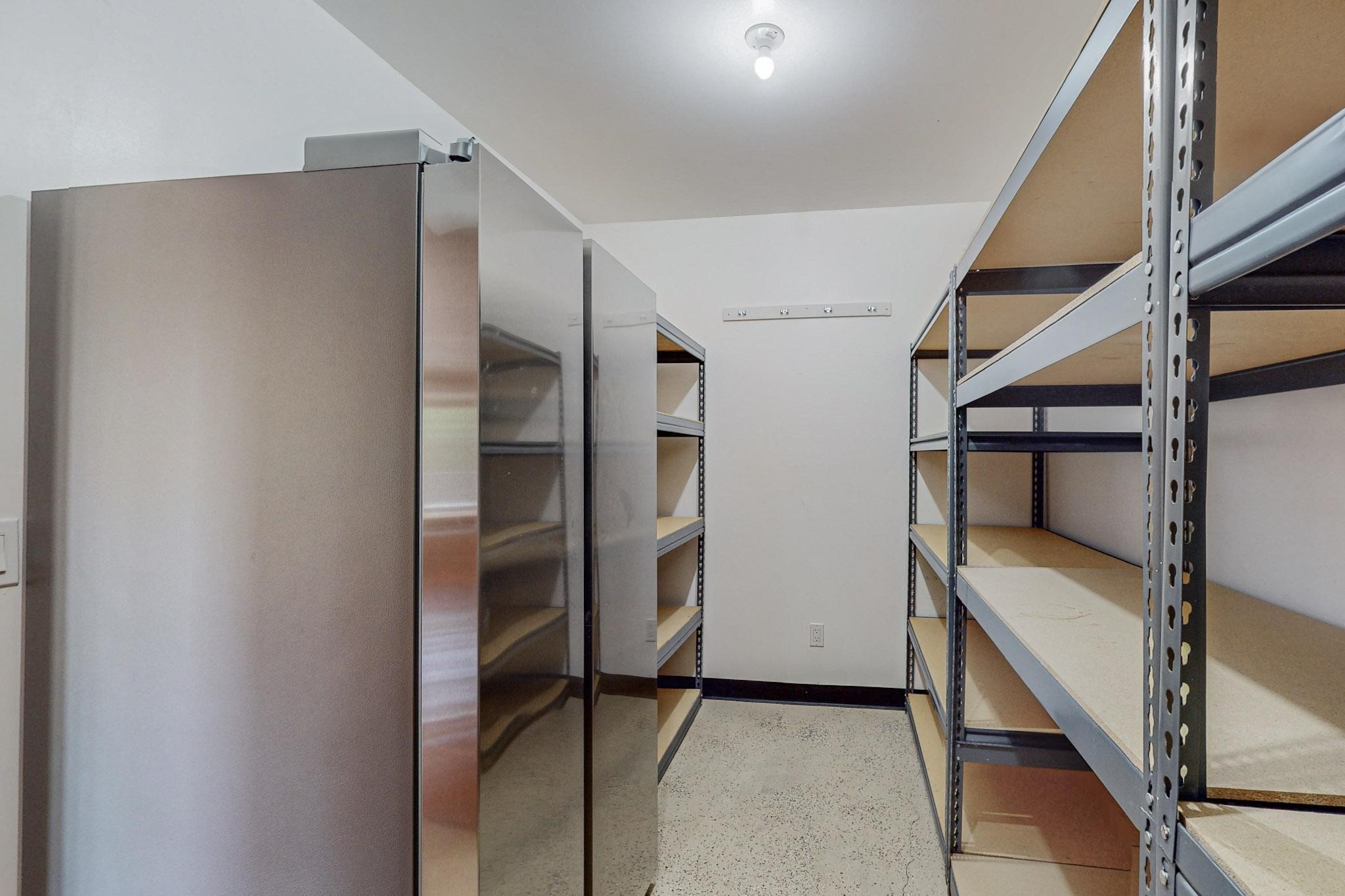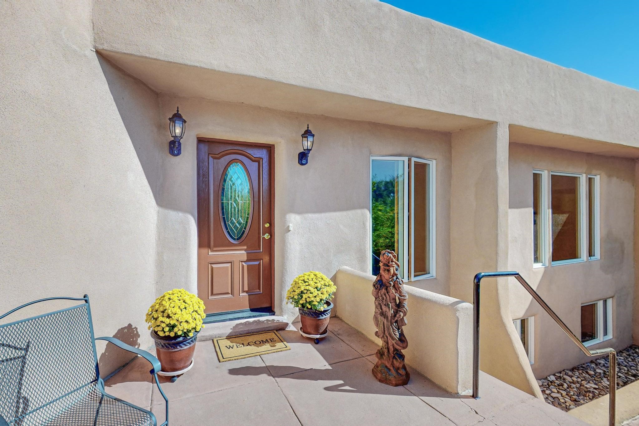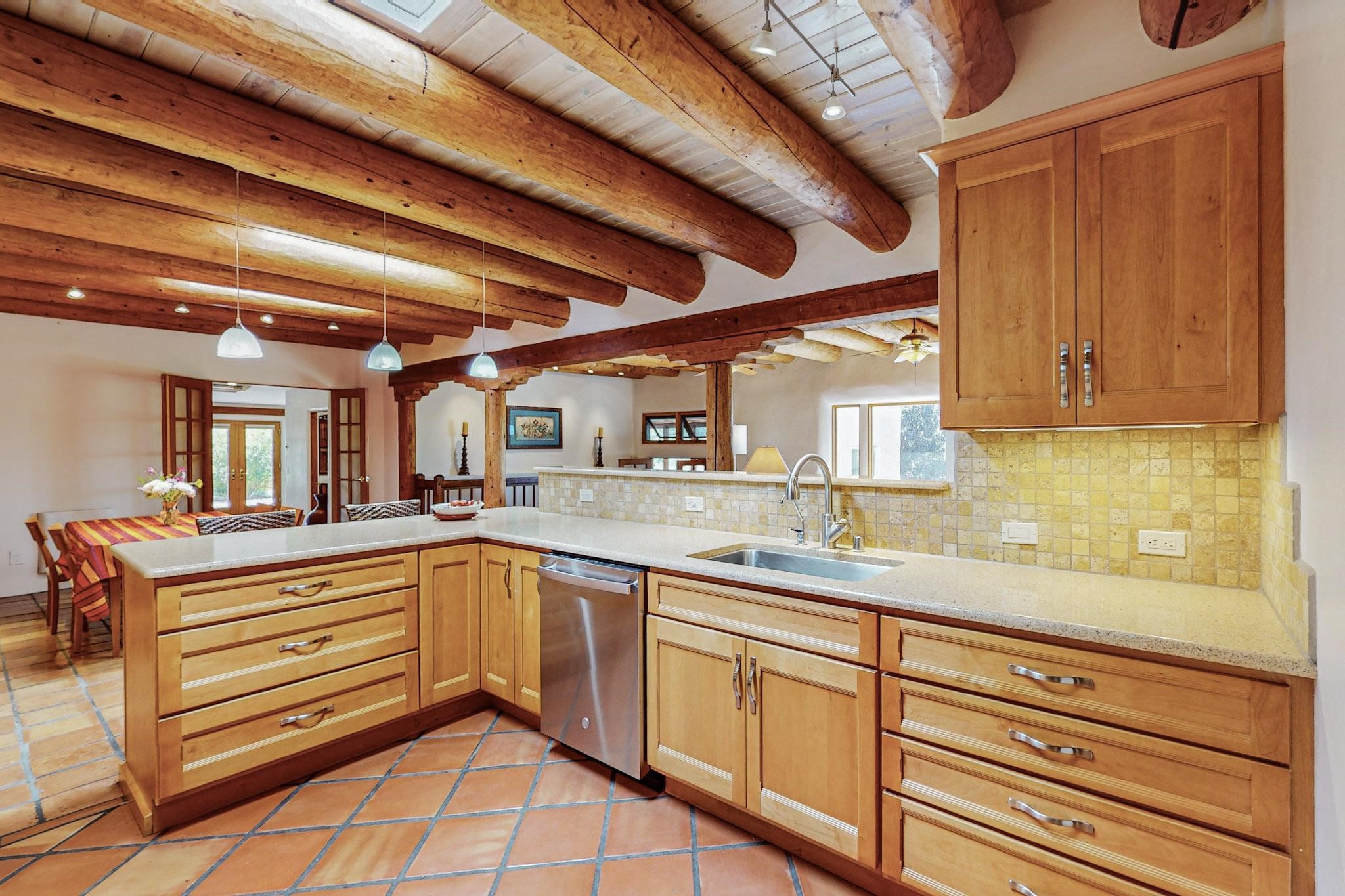 A rare offering in Northern Santa Fe County, this solar-powered berm home and guest house sit on two acres beside protected public land, where expansive views, established gardens, and access to nearby trails define the setting. Located approximately 30 minutes from Santa Fe and Los Alamos, the property blends Southwest architectural character with a thoughtfully cultivated landscape.Gardens lovingly tended for more than two decades surround the home with fruit trees, vegetables, flowering plants, and open skies. The property includes approximately 5,300 square feet of living space with a main residence and a separate guest house, offering a total of 7 bedrooms and 4 bathrooms. The guest house includes 3 bedrooms and 1 bath and may provide flexible use for guests, multi-generations, or as a rental.The south-facing main residence features an open-concept great room and kitchen with custom handmade cabinetry, skylights, traditional vigas, Saltillo tile flooring, a large walk-in pantry with full-size refrigerator, and a newer dishwasher. A spacious 700-square-foot studio/sunroom with high ceilings and 7-foot south-facing windows overlooks a courtyard garden.The main level includes one bedroom and one full bath, while the lower level offers three bedrooms, two bathrooms, and additional storage. The primary bath features a Jacuzzi tub.The main home was constructed as a solar-powered berm home which provides natural energy efficiency and stable interior temperatures throughout the year. Additional features include evaporative cooling, wall-mounted panel heaters, a Scandinavian wood stove, and a gas-powered Adobelite kiva fireplace.Outdoor spaces include expansive views, a rooftop seating area, and an established orchard and gardens supported by a 10,000-gallon rainwater catchment cistern with automated drip irrigation. A new septic tank and leach field were installed in August 2024. Zoned Traditional Community: potential for multiple dwellings or retreat center.