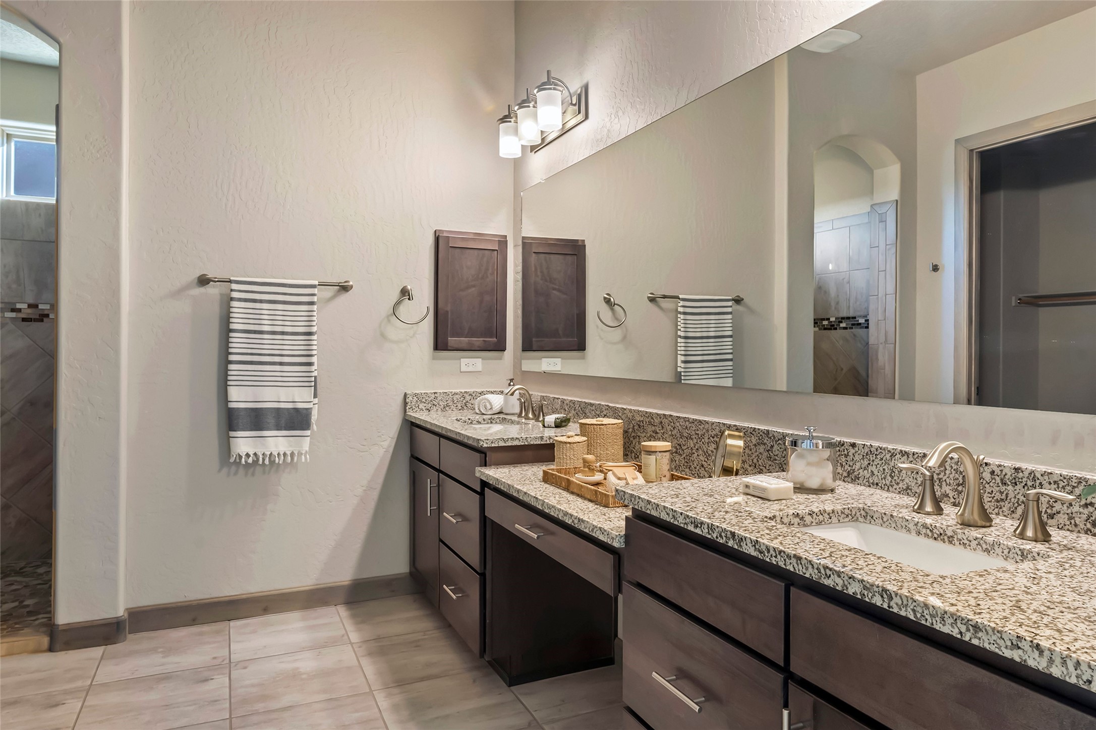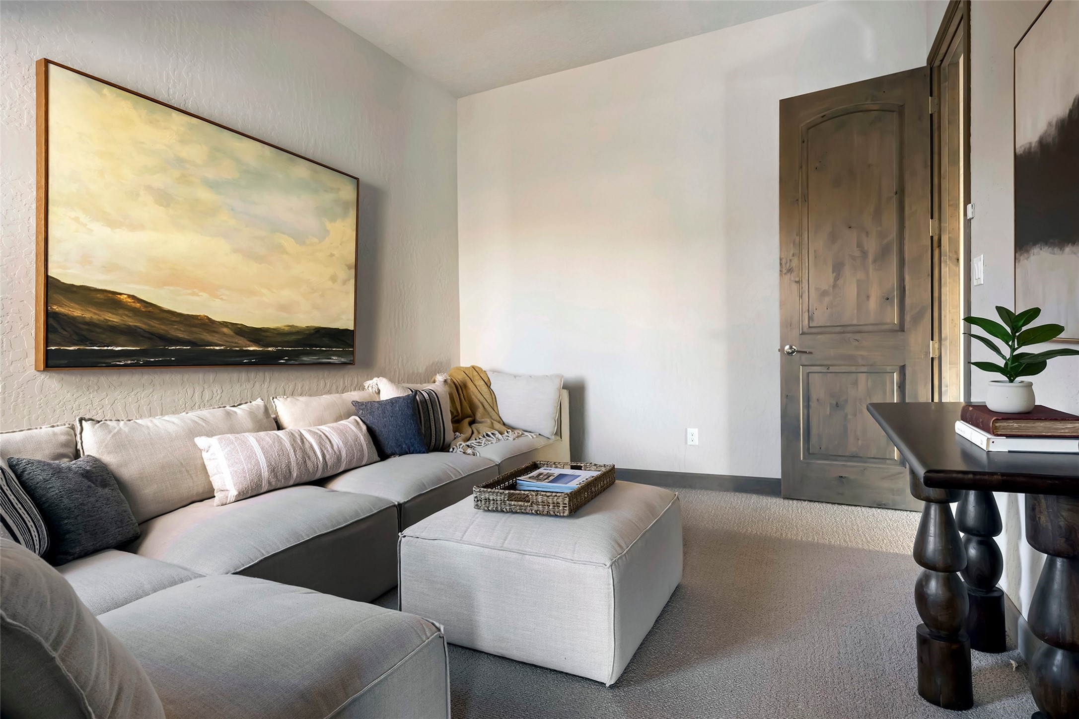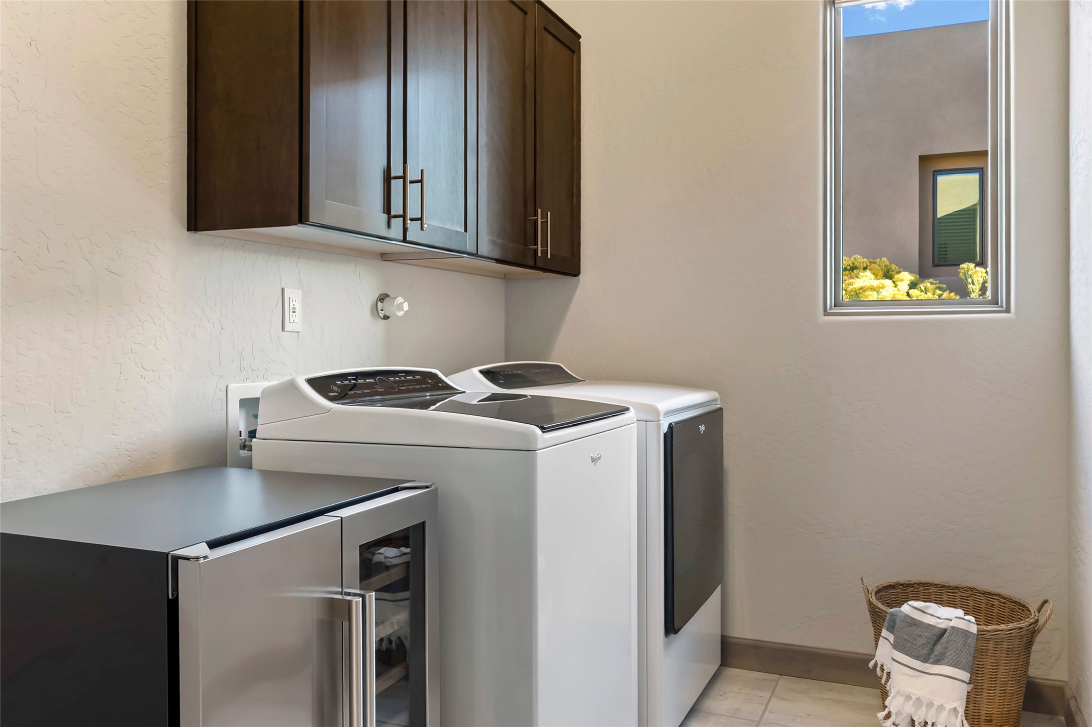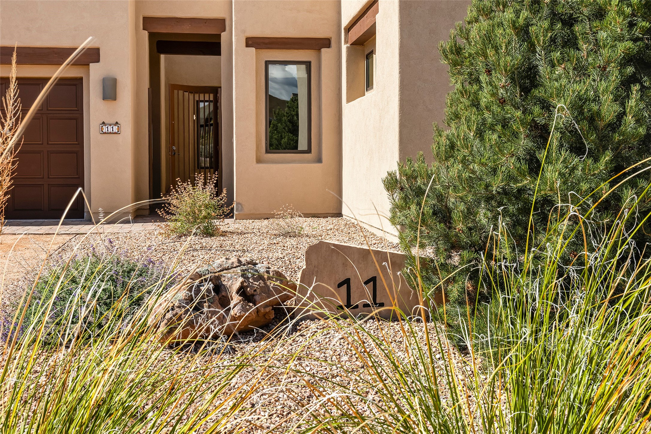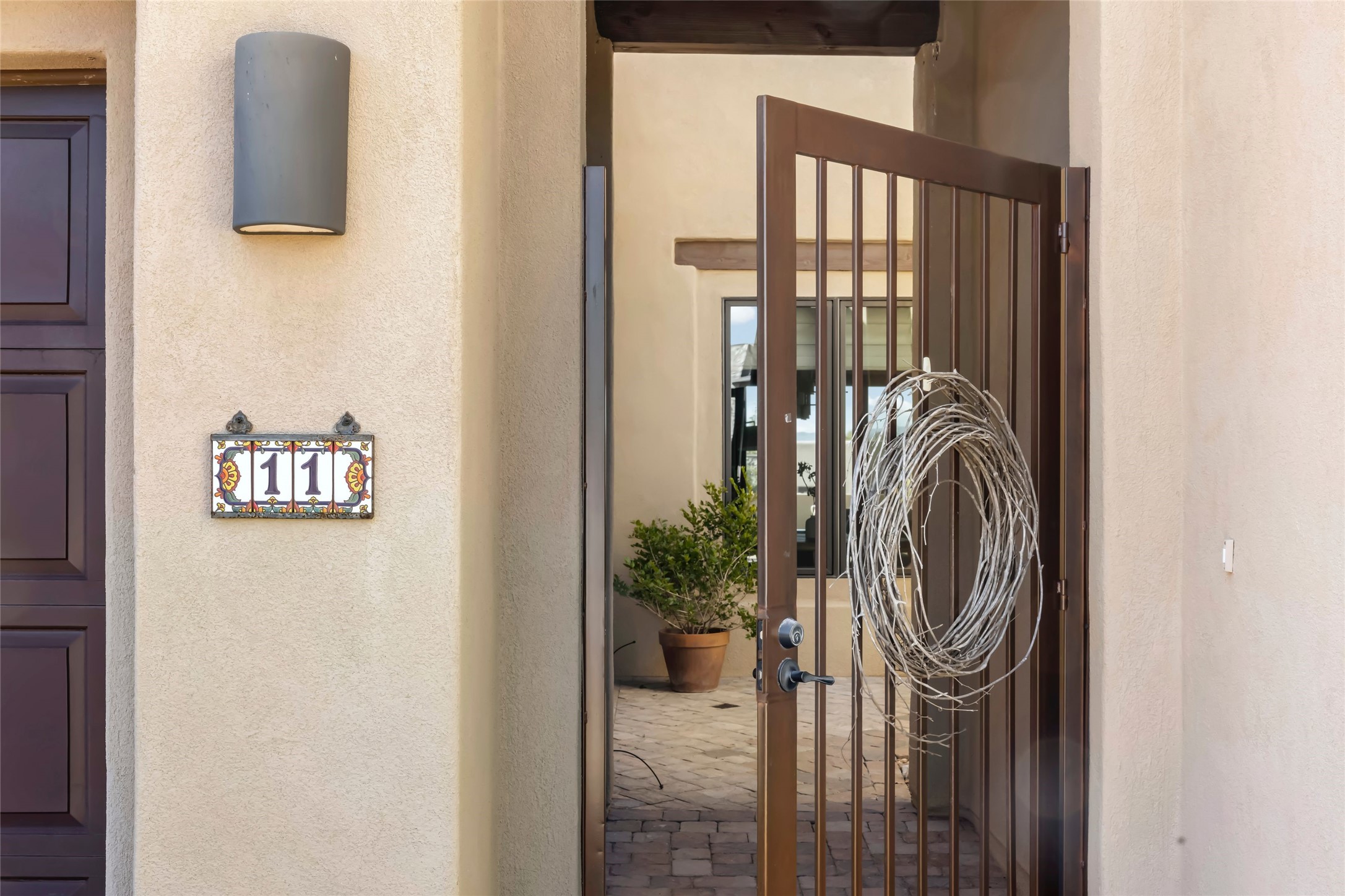 Live the Ultimate Las Campanas Lifestyle. Beautifully sited on a premier elevated corner lot, this exceptional 4-bedroom residence captures breathtaking Jemez Mountain and dramatic sunset views. Located within walking distance of The Club at Las Campanas, this home perfectly blends sophisticated modern design with the timeless essence of Santa Fe. The thoughtfully designed floor plan impresses from the moment you enter, featuring a spectacular living room ideal for both relaxed living and grand entertaining. Western views frame the space, while a modern gas fireplace with stone surround and mantle, and retractable glass doors, create a seamless indoor-outdoor living experience. The chef's island kitchen delights with a generous natural stone breakfast bar, modern appliances, and a large walk-in pantry. This culinary haven flows effortlessly into both a gracious formal dining room and a casual dining area--each with mountain views, designer lighting, and portal access for al fresco dining. The private, luxurious primary suite offers Jemez Mountain views, a cozy sitting area, and a spa-inspired bath with a spacious walk-in shower, dual vanities, and an expansive walk-in closet. Separate from the main living areas, the light-filled office (or 4th bedroom) with glass French doors provides the perfect work-from-home retreat. Two additional guest suites, each with ensuite baths, share a comfortable secondary living area or media room. The outdoor living experience is elevated with vast entertaining areas, a covered portal, an outdoor fireplace, and tranquil landscaping that enhances the home's serene ambiance. With its quality finishes, soft natural light, welcoming gated front entrance courtyard, newly installed carpet and a neutral palette throughout, this special Las Campanas home defines refined living and represents an exceptional value--move-in ready and not to be missed. The owner's Equity Golf Membership to The Club at Las Campanas is available for purchase.