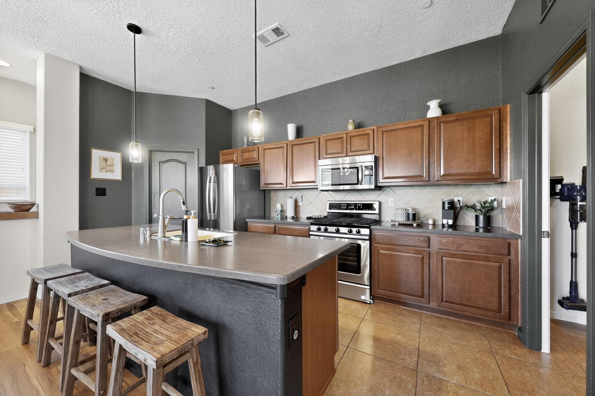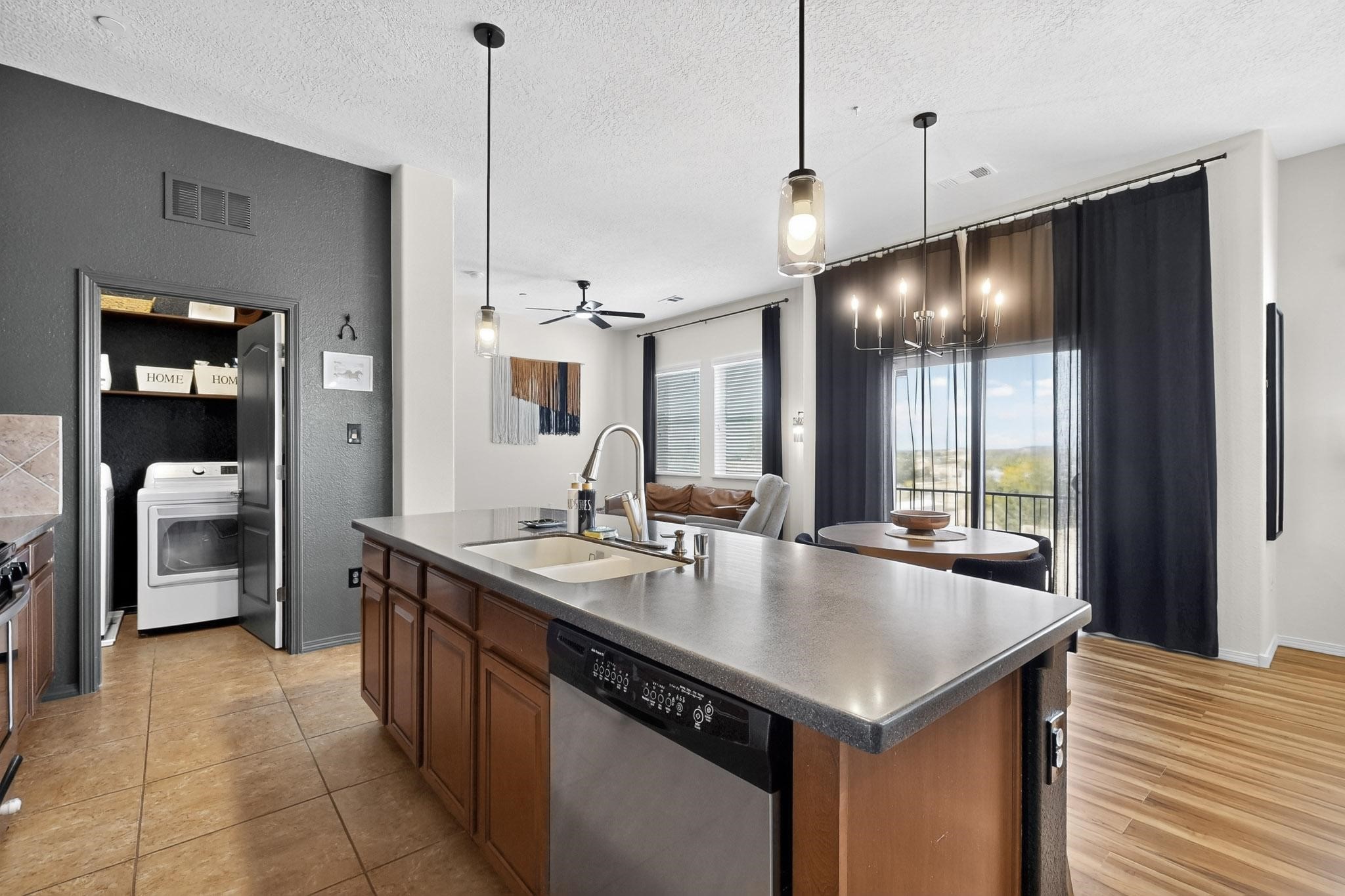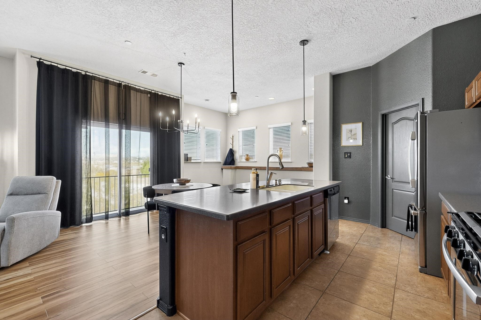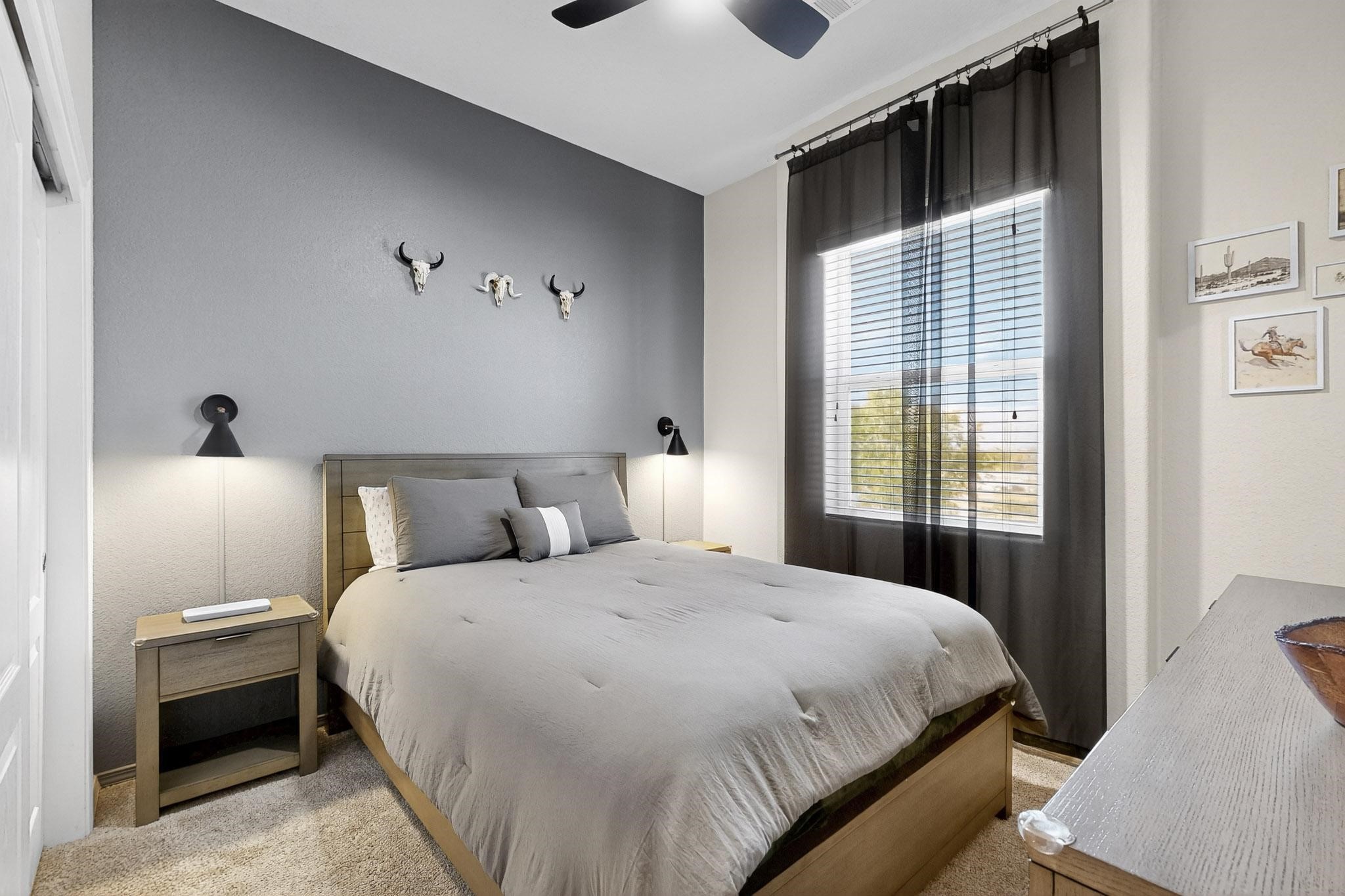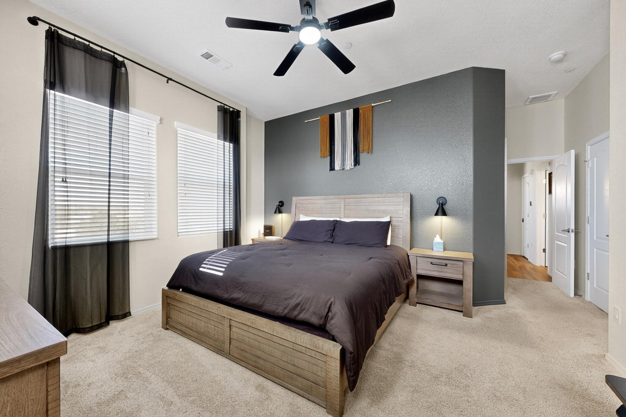 Welcome to this contemporary Southwest-inspired home. This home features modern updates, smart features, and mountain views. It includes a 1-car garage, 10-foot ceilings, updated fixtures, fresh paint, and tile accents throughout the main living, kitchen, and dining areas, with an open floor plan. Engineered vinyl plank flooring extends throughout the main areas. The kitchen has a generous island, pendant lighting, and stainless steel appliances. Both bedrooms feature plush carpet, and the primary bedroom includes a well-organized closet system, with additional shelving in the second bathroom. A dedicated laundry room includes an LG WiFi-enabled washer and dryer. Smart home features include a Yale front door lock, MyQ garage system, Ring doorbell, and Ecobee thermostat. Situated on a quiet cul-de-sac, the elevated corner lot provides views of the Jemez Mountains, sunsets, seasonal snowfall, and summer monsoons. The home receives abundant natural light and airflow throughout. This home is being sold fully furnished, including kitchen, bathroom, and bedroom essentials, along with coordinated furniture and dcor--ready for immediate occupancy (including quality kitchen items such as Calphalon cookware and knives, and OXO utensils). The home is located near a local park, shopping, and dining options, with access to I-25 and US-599.