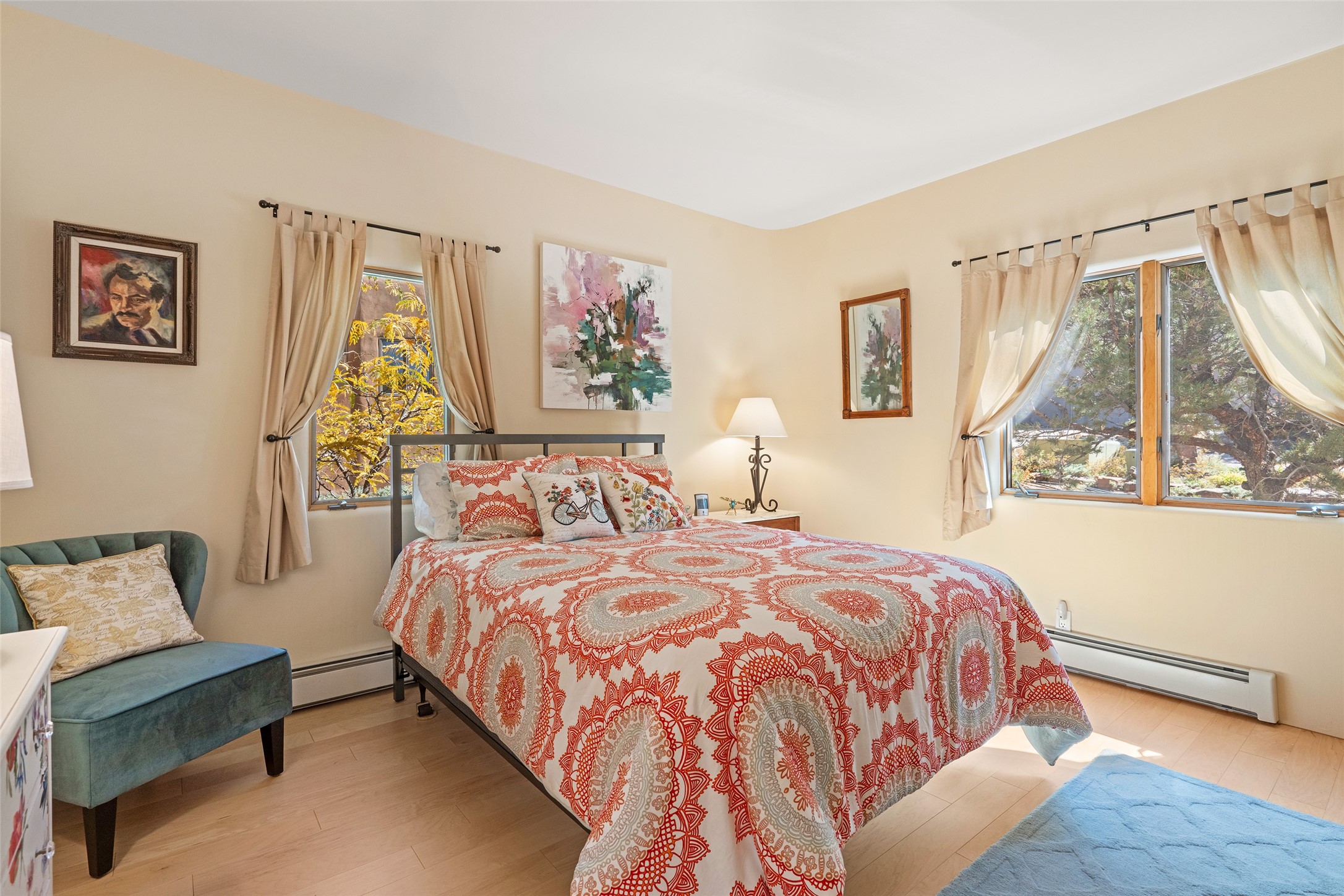 Immaculate Santa Fe Retreat in Estancia Primera! Nestled in the foothills just above the Santa Fe Plaza, this exceptional home offers the perfect blend of elegance, comfort, and location. Thoughtfully remodeled and meticulously maintained, this property is a true gem for those seeking refined Santa Fe living with modern luxury. At the heart of the home, the showstopping kitchen--remodeled by Kitchens by Jeannine--is a chef's dream. Featuring premium cabinetry with abundant storage, high-end appliances including a Viking Range and Sub-Zero Refrigerator, and striking thick-slab Esprit de Santos granite countertops with elegant copper veining, this kitchen truly inspires. Light maple wood floors flow through the living spaces, where tall beamed ceilings, double patio doors, and a classic kiva fireplace create a warm and inviting ambiance. The elevated primary suite is a private haven, complete with its own fireplace and a beautifully remodeled bath. The oversized walk-in closet is a dream, offering generous storage and thoughtful design. Two additional bedrooms--one with its own private entrance and charming Santa Fe-style bath--offer wonderful flexibility for guests or work-from-home living. Additional highlights include freshly repainted interiors, an immaculate garage with epoxy floors and new cabinetry, and a serene walking path just behind the home leading into downtown Santa Fe. Located in the sought-after Estancia Primera community, residents also enjoy access to a seasonal outdoor swimming pool and tennis courts. This immaculate foothills home combines Santa Fe charm, luxurious upgrades, and an unbeatable location--just minutes from world-class dining, galleries, and the historic Plaza.