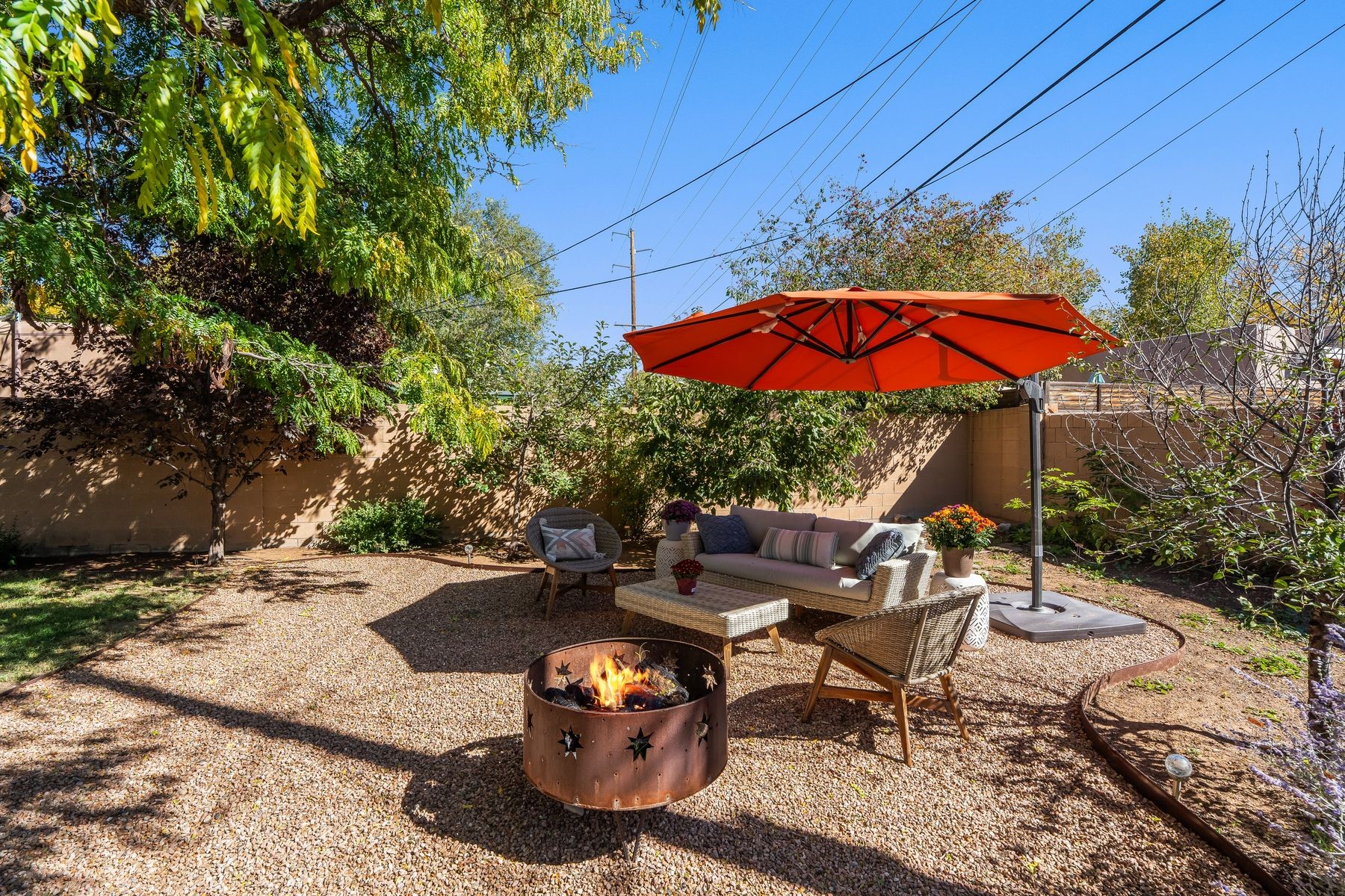 With much of its original design beautifully preserved, this Casa Alegre Stamm home radiates timeless Southwestern charm. Built in 1954, it showcases hallmark Stamm features - original hardwood floors, vigas, and handcrafted doors - while incorporating thoughtful modern updates for today's comfort and convenience. The inviting floor plan includes two bedrooms plus a versatile third room ideal for an office, den, or guest space, along with two bathrooms, a warm welcoming living room, a dedicated dining area, and an updated kitchen with tasteful finishes. The spacious primary suite offers an ensuite bath and walk-in closet. An attached one-car garage provides added functionality and storage options. Outdoors, a large brick patio opens to a fully enclosed yard featuring lush grass, mature shade trees, fruit trees, and a colorful array of perennials - perfect for entertaining, gardening, or simply relaxing in your own private oasis. Nestled on a quiet street in the heart of Casa Alegre, this home enjoys one of Santa Fe's most desirable and convenient locations. Residents can easily access Frenchy's Field, the River Trail, Ashbaugh Park, and the Acequia Trail, while being just a short drive from shops, restaurants, and other local amenities. With its ideal blend of character, modern livability, and prime location, this turnkey Santa Fe classic offers comfort, style, and connection to all "The City Different" has to offer.