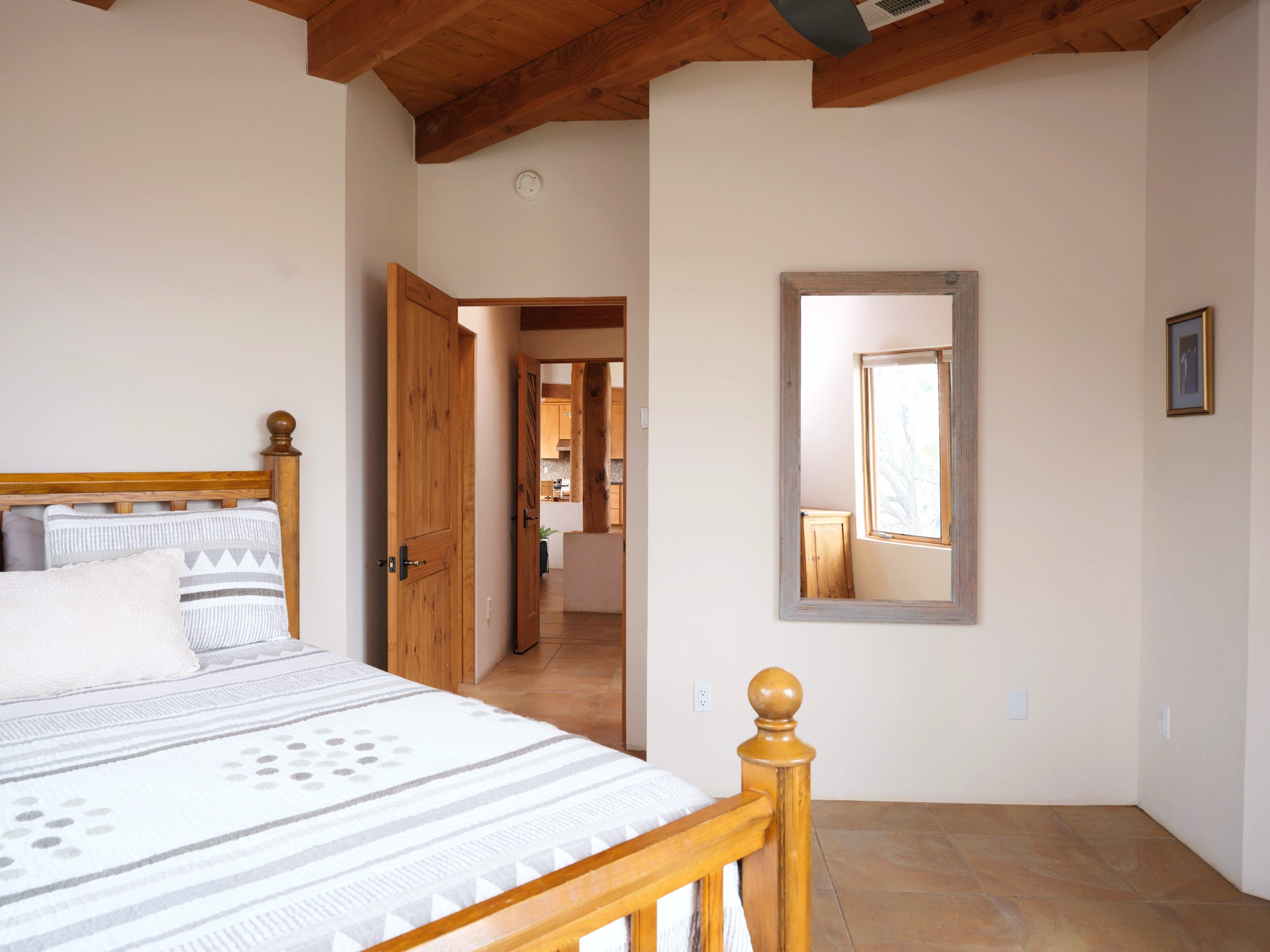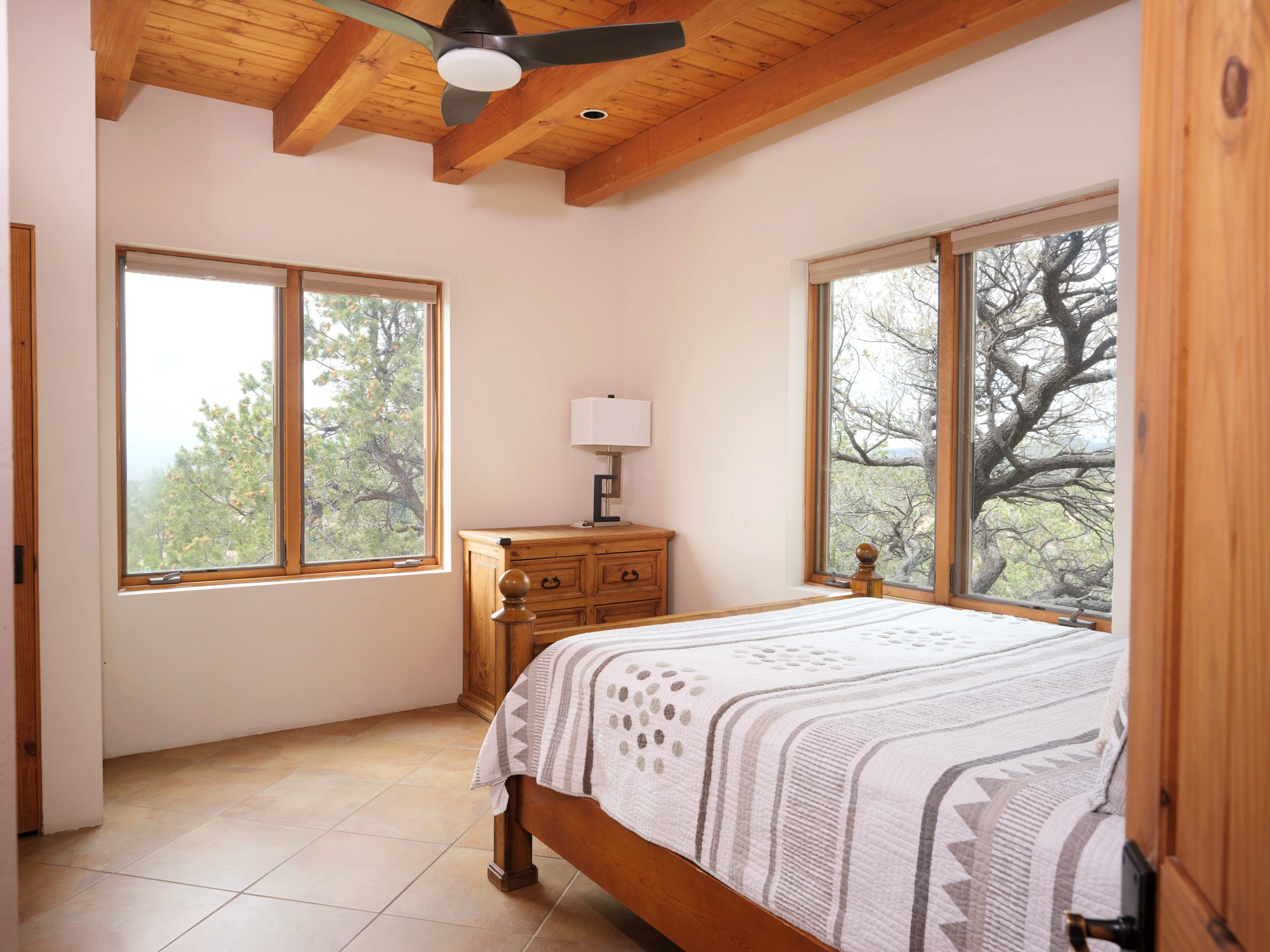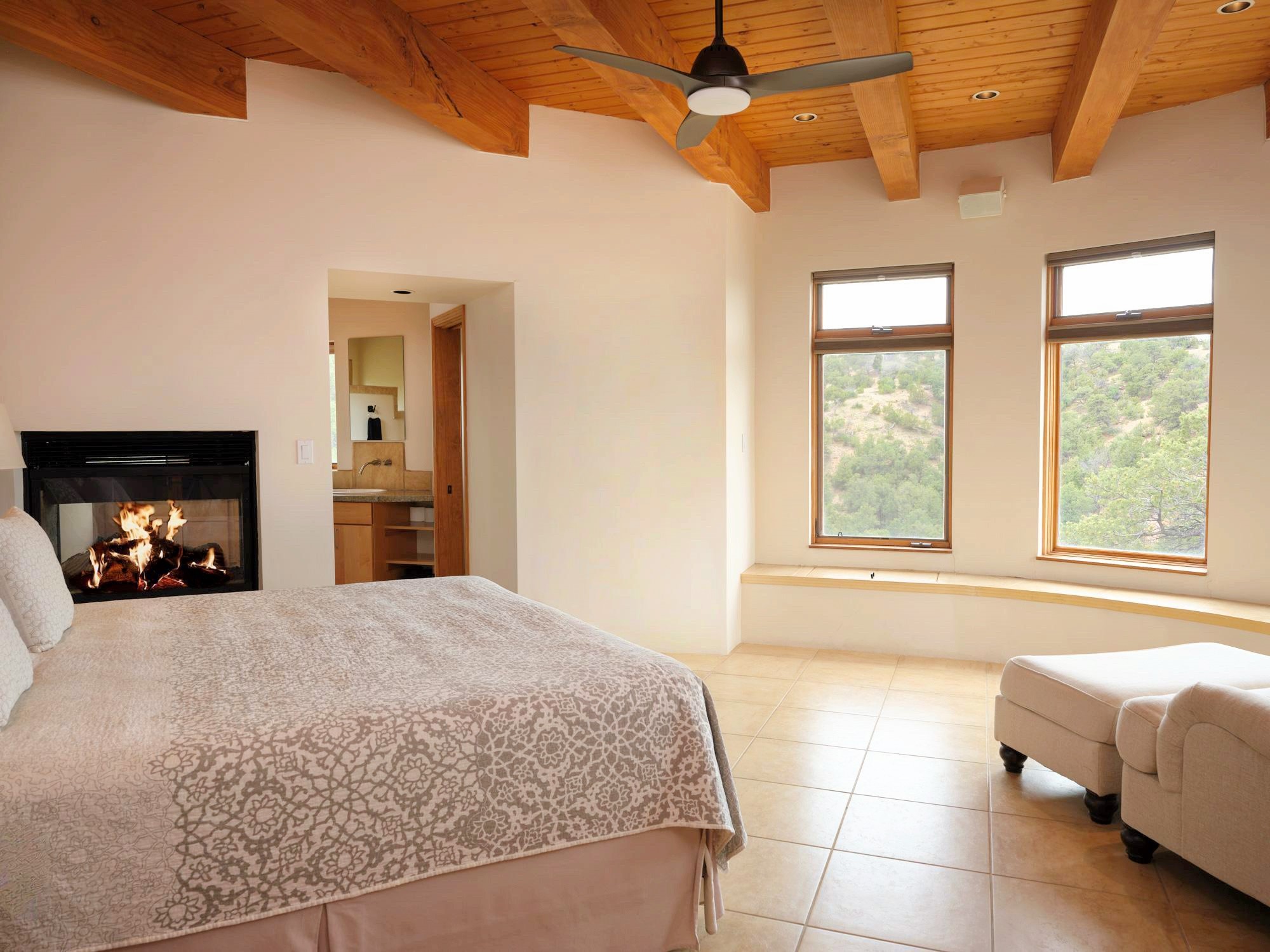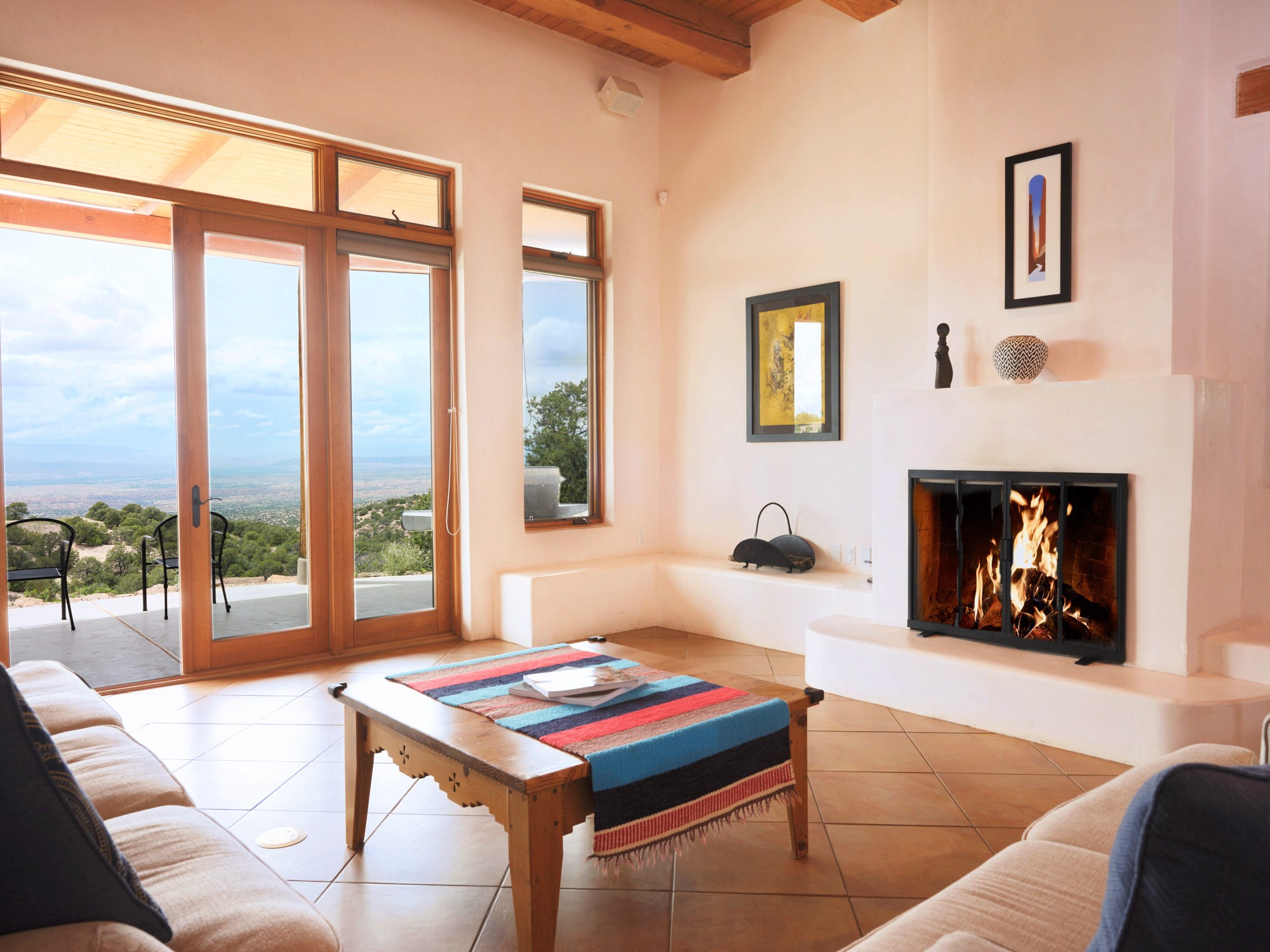 Perched high in the Sangre de Cristo foothills, Casa del Sueo captures the very essence of Northern New Mexico's beauty - endless skies, luminous sunsets, and breathtaking 360-degree mountain views. This 3,300-sq-ft retreat, situated on 10 serene acres, offers complete privacy yet is conveniently located just 35 minutes from Santa Fe and the Opera, 35 minutes from Los Alamos, and 75 minutes from Taos.Designed for both intimate living and effortless entertaining, the home features four bedrooms and three baths, including a primary suite with fireplace and panoramic views, and a separate guest suite ideal for guests. The chef's kitchen opens to inviting living spaces framed by picture windows and natural light, while a rooftop deck provides a front-row seat to sunsets over the Jemez Mountains.Modern amenities include Starlink high-speed internet, a media room, and a fully integrated home sound system. The property features a horse stable and borders miles of pristine trails for hiking, biking, and horseback riding - offering an unparalleled connection to nature without sacrificing convenience or sophistication.A beloved home with a proven record of five-star guest experiences, Casa del Sueo also functions beautifully as a turnkey luxury retreat or second-home investment. From its peaceful mornings to star-filled nights, every moment here is a reminder of why Santa Fe is among the world's most enchanting destinations.