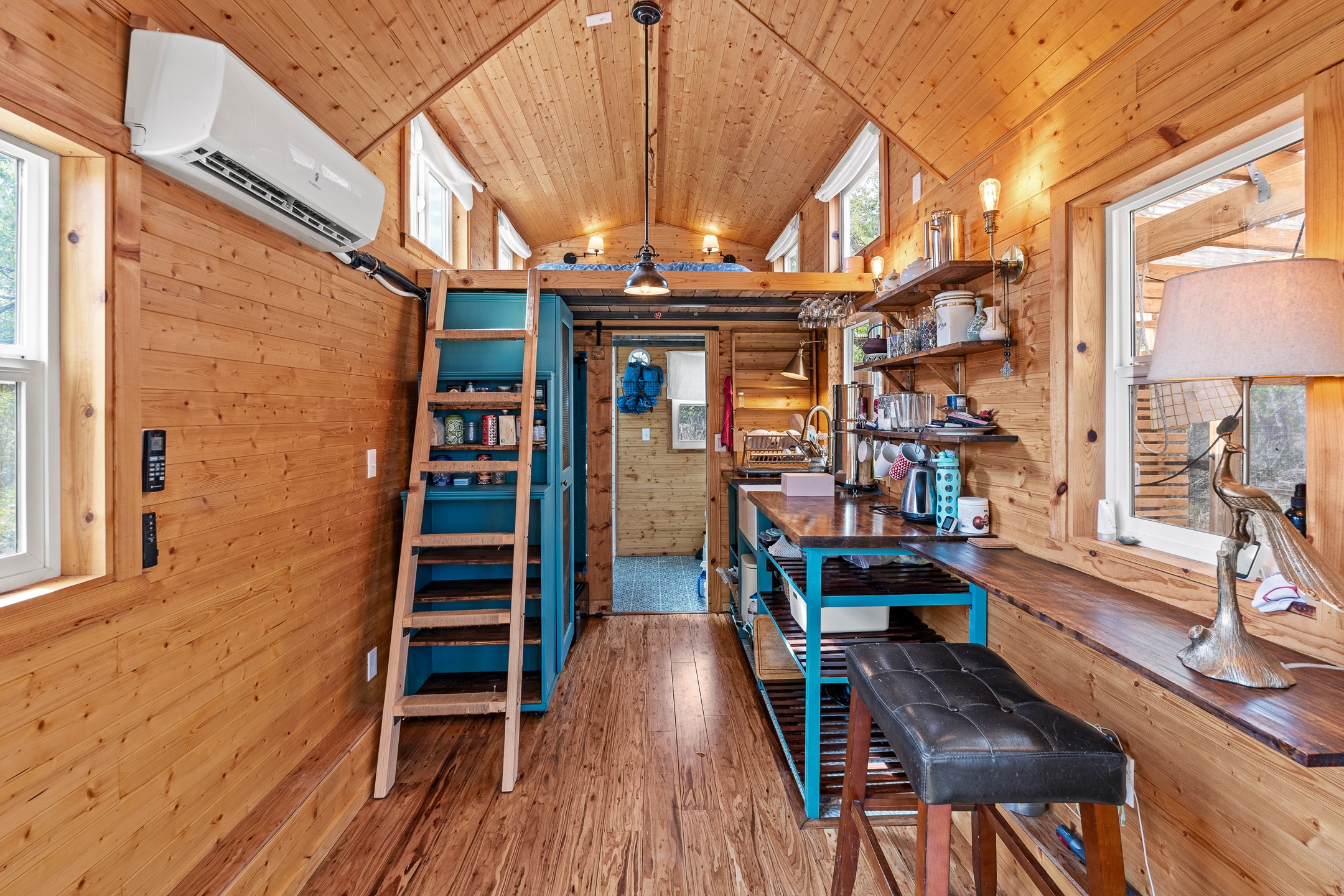 Escape to this beautifully crafted 28' x 8' tiny home, offering the perfect balance of comfort, efficiency, and seclusion. Nestled just a short drive from Santa Fe, Los Alamos, and Espaola, this thoughtfully designed retreat is functional for full-time living, a weekend getaway, or an off-grid workspace. Step inside to discover a bright and functional layout featuring a well-appointed kitchenette, a 3/4 bath connected to its own septic system, and a 72 sq ft sleeping loft perfect for restful nights. The home is fully powered by solar energy and equipped with a mini-split system for year-round heating and cooling, along with a high-efficiency water heater to keep utilities low and comfort high. Whether you're seeking solitude, sustainability, or a simplified lifestyle, this tiny home offers it all in a peaceful and private setting -- with the convenience of nearby cities just minutes away.