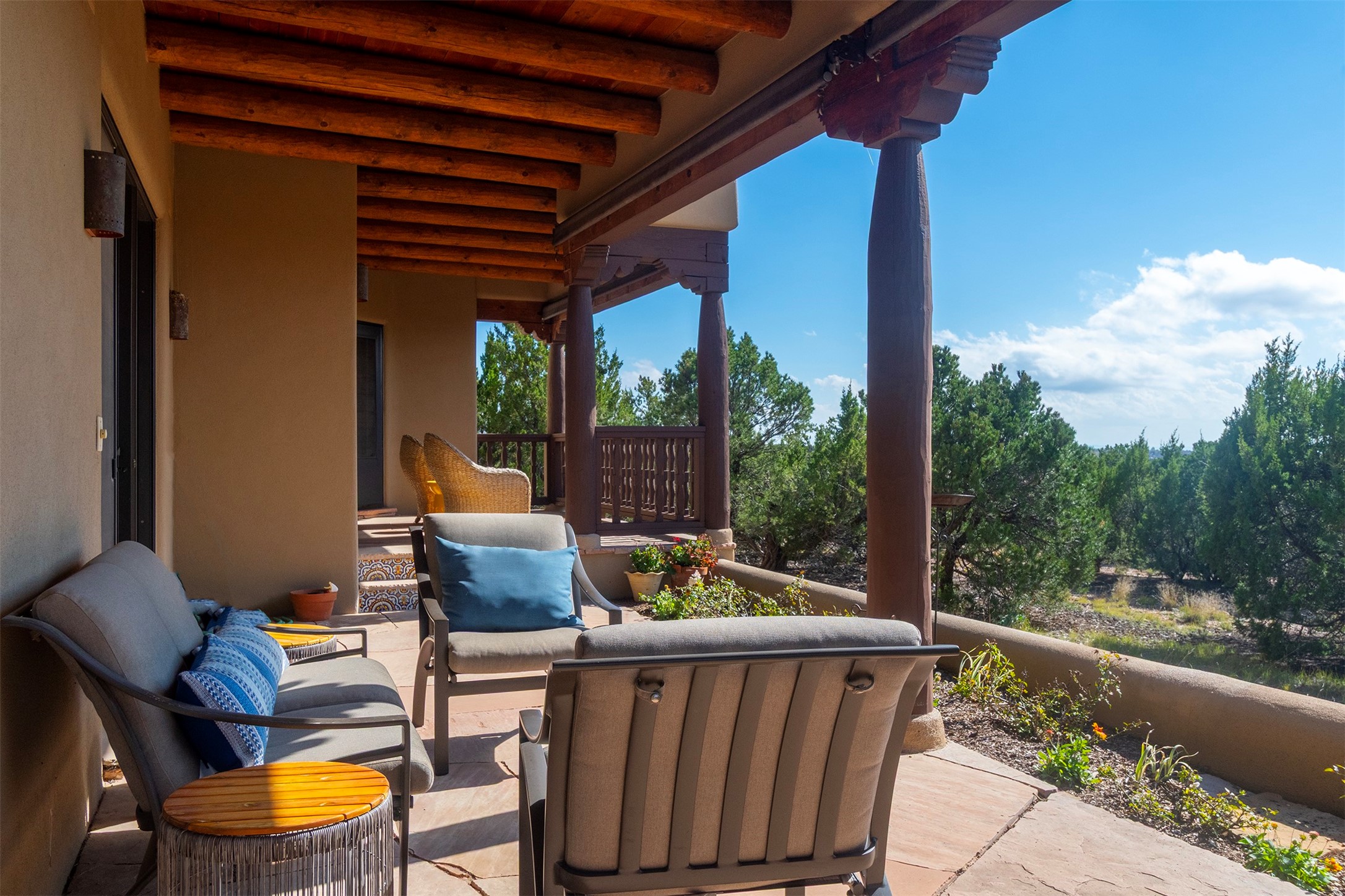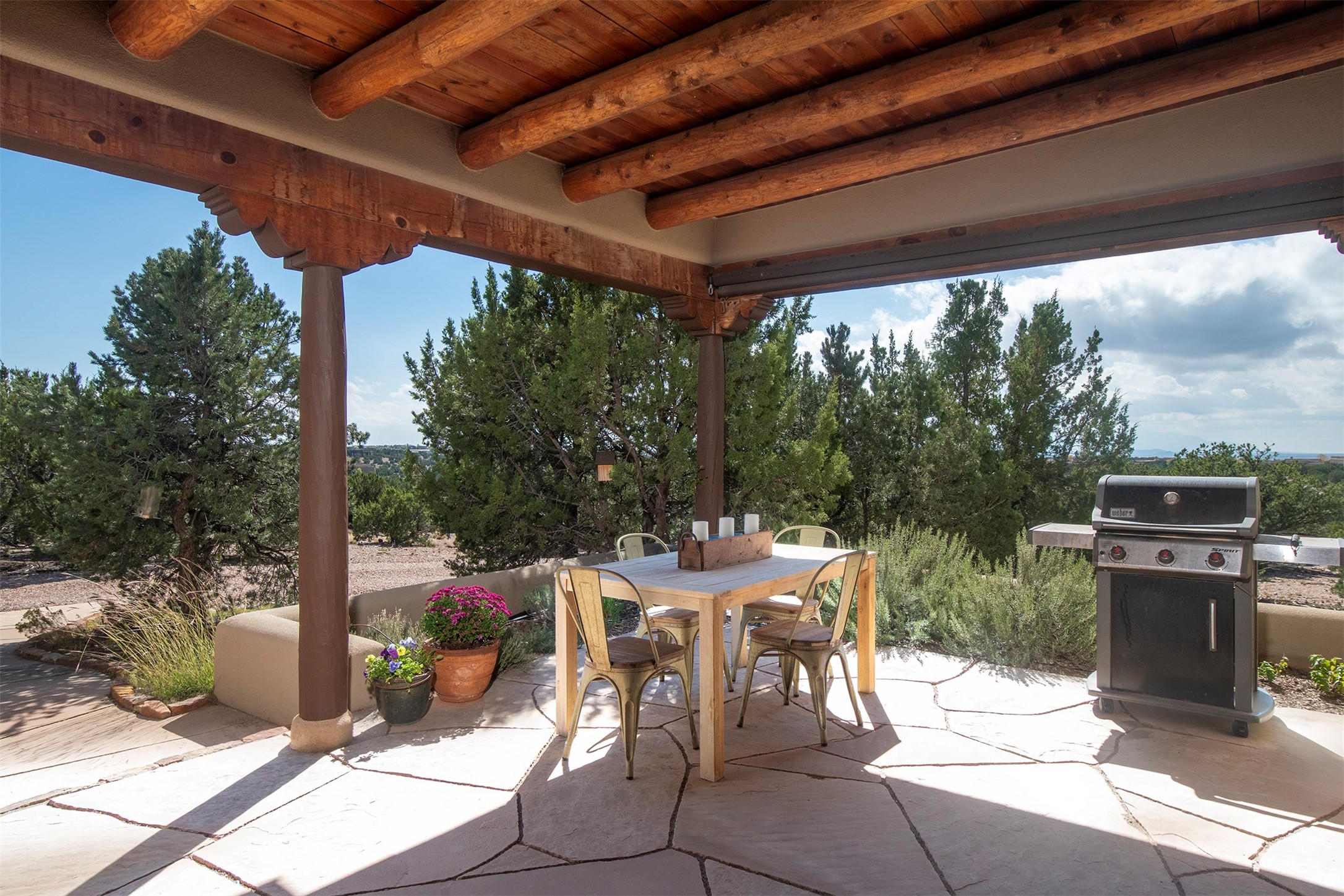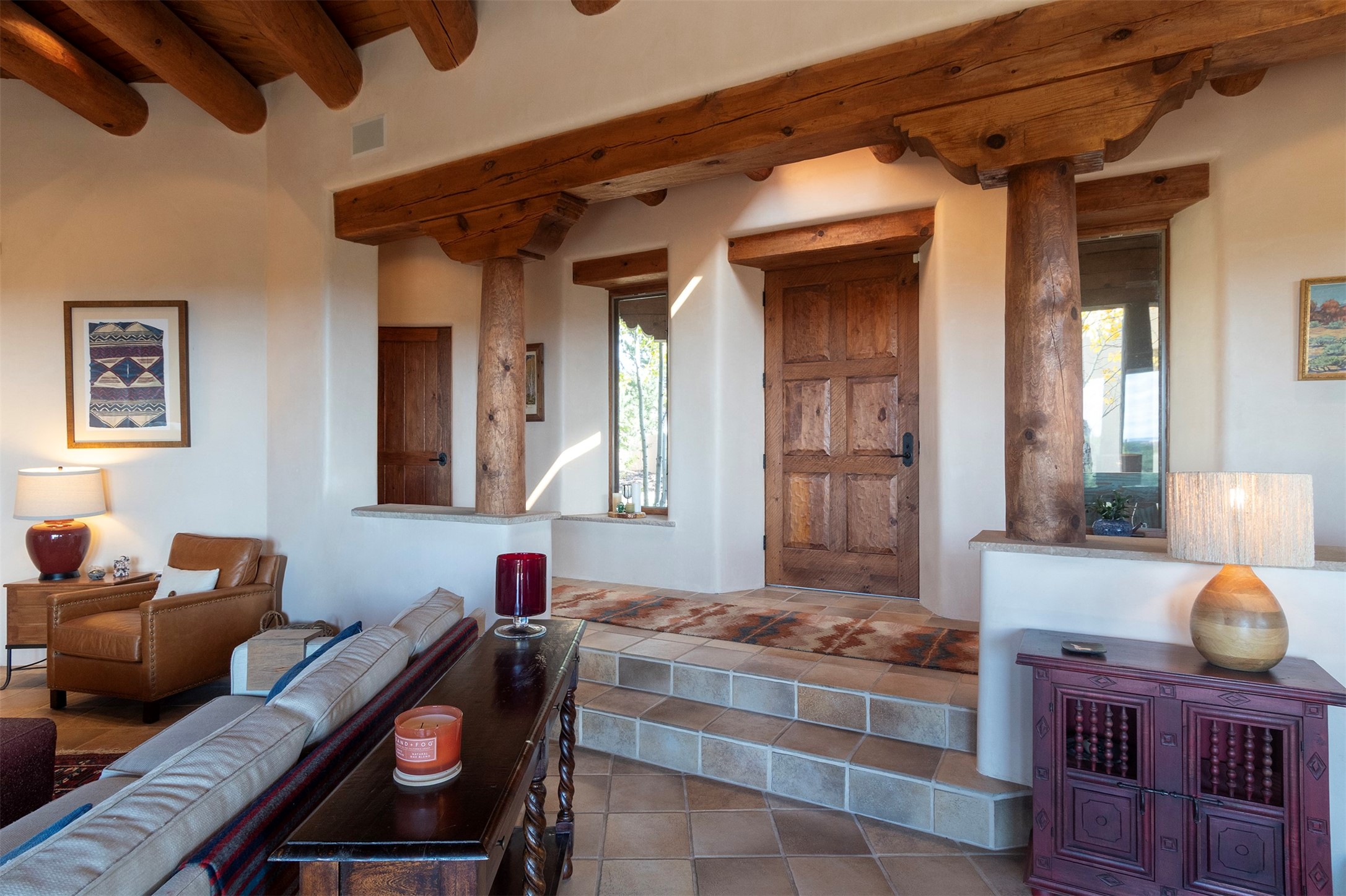 Set within the prestigious Las Campanas community, this exceptional 4-bedroom, 4-bathroom Santa Fe home showcases timeless Southwestern architecture blended with modern sophistication. Thoughtfully updated, the residence features numerous recent improvements. Expansive living spaces with soaring ceilings and large windows capture breathtaking mountain and sunset views. The gourmet kitchen, elegant dining area, and inviting outdoor patios create a seamless flow for entertaining or peaceful retreat. Offering access to world-class amenities, golf, and fine dining, 18 Arriba Circle represents the best of luxury living in Las Campanas--a perfect harmony of comfort, style, and Santa Fe charm.
