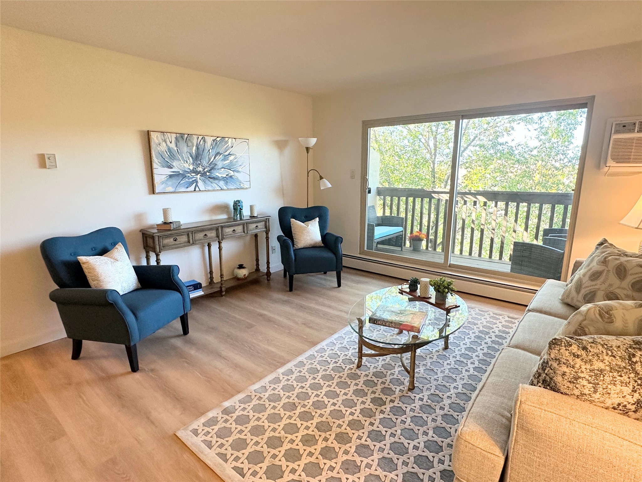 Welcome to the desirable Los Arroyos Compound. Comfort and style come together in this beautifully renovated upstairs condo, on the arroyo side at 151 Calle Ojo Feliz, Unit W. This move-in ready 2-bedroom, 1-bath home blends contemporary style with everyday convenience, ideal for a busy lifestyle, weekend getaway, or investment property.Thoughtfully updated, the condo features new vinyl plank flooring, a stylish modern kitchen with all-new stainless-steel appliances, new hardware on kitchen cabinetry, new lighting, updated countertops, a deep workstation sink, and new fixtures. The bathroom has also been upgraded with a new vanity, fixtures, contemporary lighting, and tile flooring.The open concept living and dining area offers a bright, airy feel with good separation between the bedrooms. A private balcony nestled among the trees on the arroyo side provides a peaceful, nature-filled setting, perfect for relaxing in a quiet, green environment.Enjoy the benefits of a centrally located community set on approximately 18 acres, featuring native landscaping, all designed to create a serene atmosphere with walking trails. Ideally situated near schools, shopping destinations, medical facilities, and Downtown Santa Fe.Community amenities include: an indoor heated year-round pool, sauna, weight room, hospitality room, tennis and basketball courts, and walking trails. One reserved off-street parking space, with additional guest parking available.Condo fee: $377/monthly, includes baseboard hot water heat, water, sewer, refuse, building and grounds maintenance, and insurance.