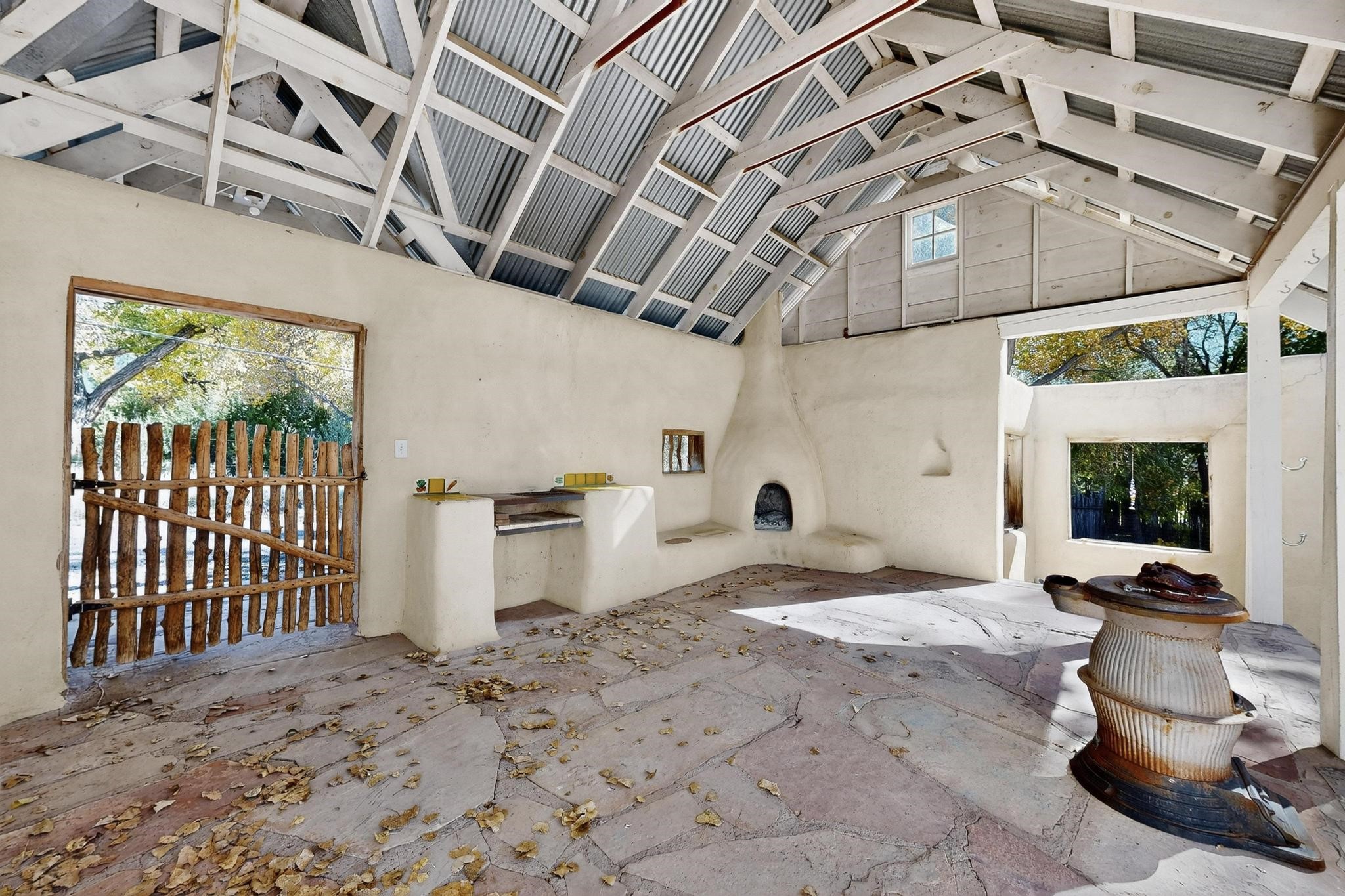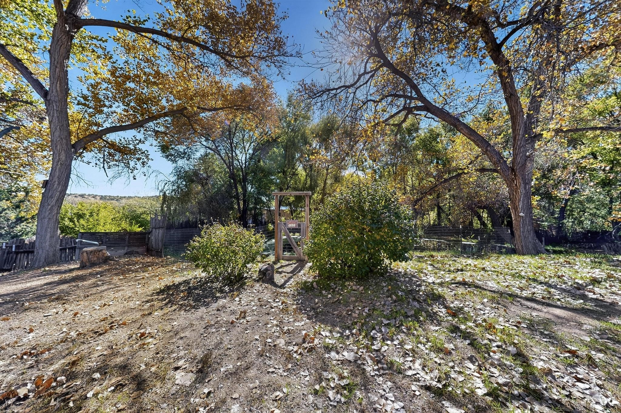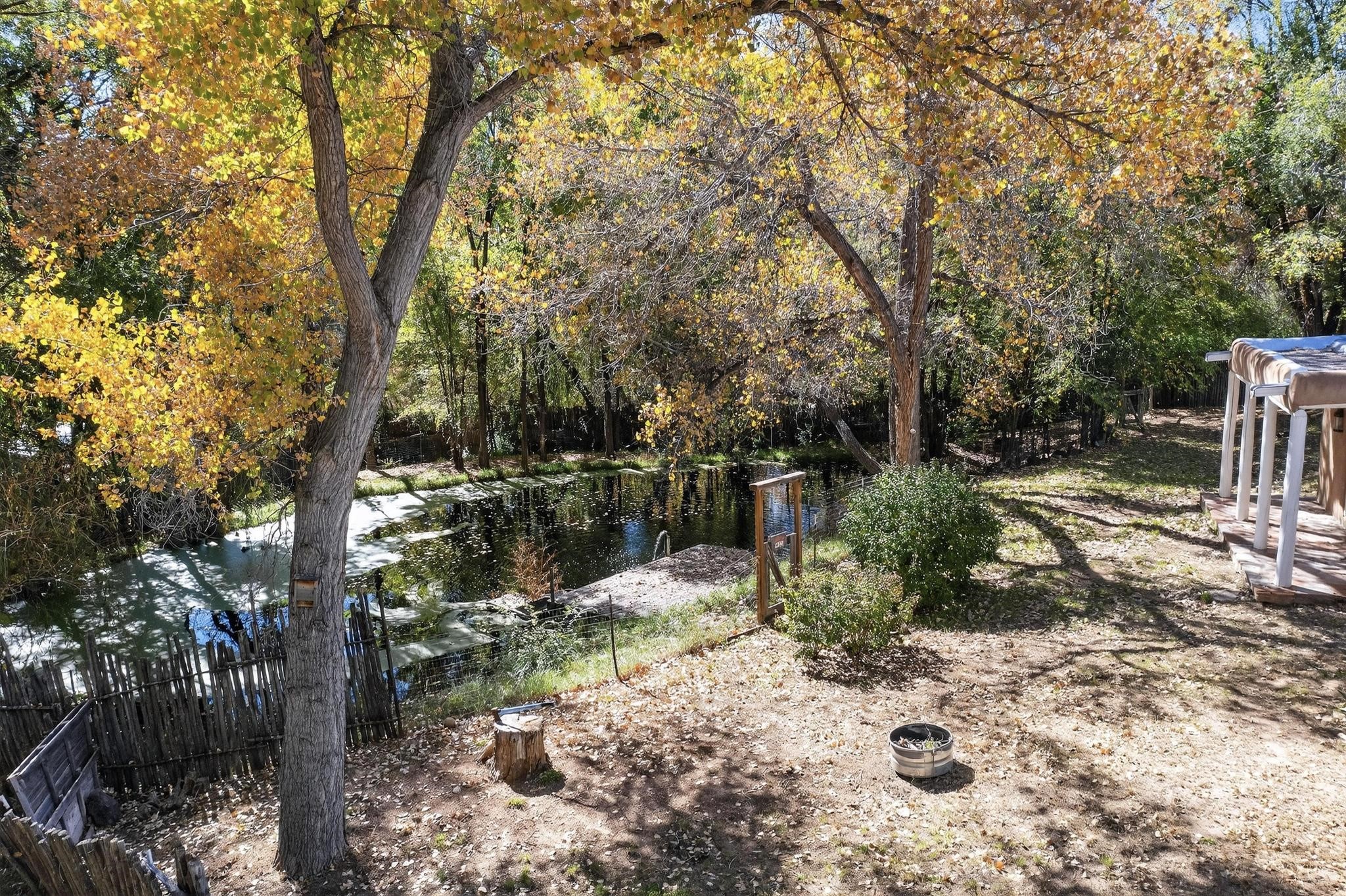 Historic Adobe Retreat with Private Pond in La CienegaTucked away in the heart of the historic village of La Cienega, this one-of-a-kind adobe home exudes timeless Southwestern charm, rich history, and a serene natural setting. Originally built in the 1940s and lovingly owned since 1976, the property reflects nearly 50 years of thoughtful additions, creativity, and connection to the land.Set on .74 acres, the home features 2 bedrooms and 1 bath in the main house, plus a private attached mother-in-law suite--ideal as a guest casita, studio, or home office--with its own entrance, kitchenette, full bath, and fenced yard. The main home offers a spacious living room, full kitchen, and large bath with a clawfoot tub. Classic adobe craftsmanship shines throughout, highlighted by four traditional kiva fireplaces that add warmth and ambiance.Expanded over time, the home includes a sunken living room with pond views, an enlarged kitchen and bedroom, and a covered outdoor summer kitchen with patios, porches, and an outdoor fireplace--perfect for entertaining or relaxing under the stars.At the heart of the property lies a 100-year-old spring-fed pond with a sunning deck and aeration system, surrounded by mature trees, native grasses, and seasonal blooms. Whether for swimming, fishing, floating, or simply soaking in serenity, it's a truly special retreat.Conveniently located just 20-25 minutes from downtown Santa Fe and near the airport, the home offers peaceful country living with city access. Ideally positioned between Ojo Santa Fe Spa & Resort and Rancho de las Golondrinas.Recent upgrades include roof improvements by Northway Roofing (warranty through Feb 2027) and well maintenance by Luhan Water Well Services (June 2025). Offered as-is, this is a rare opportunity to own and personalize a historic adobe in one of Northern New Mexico's most cherished communities.