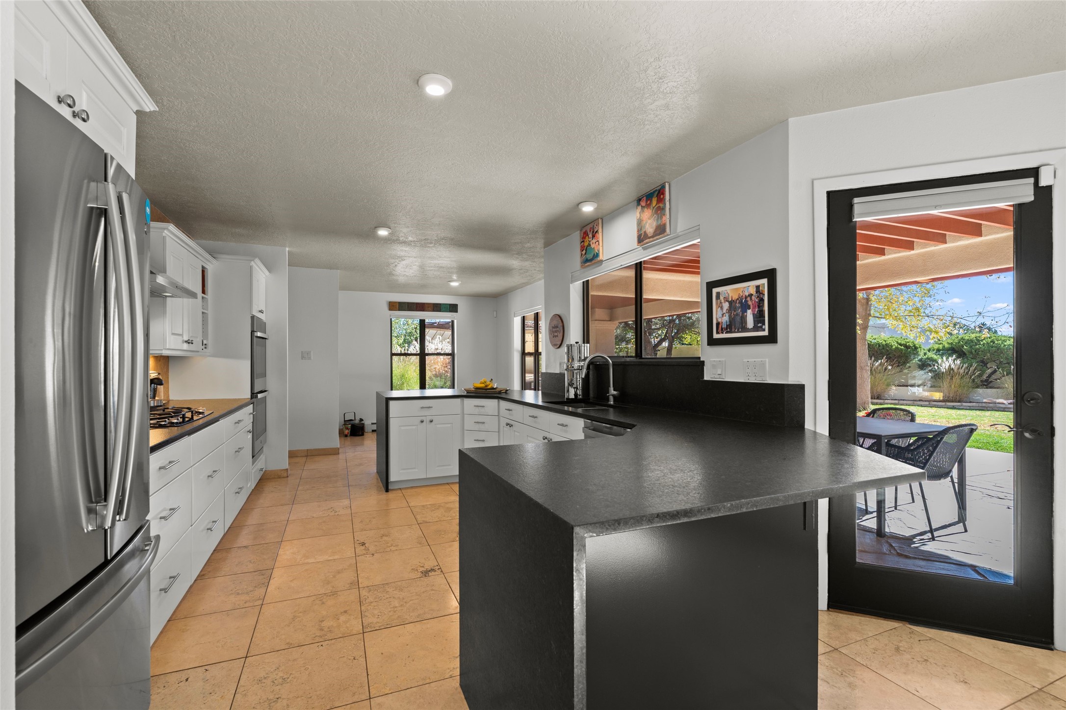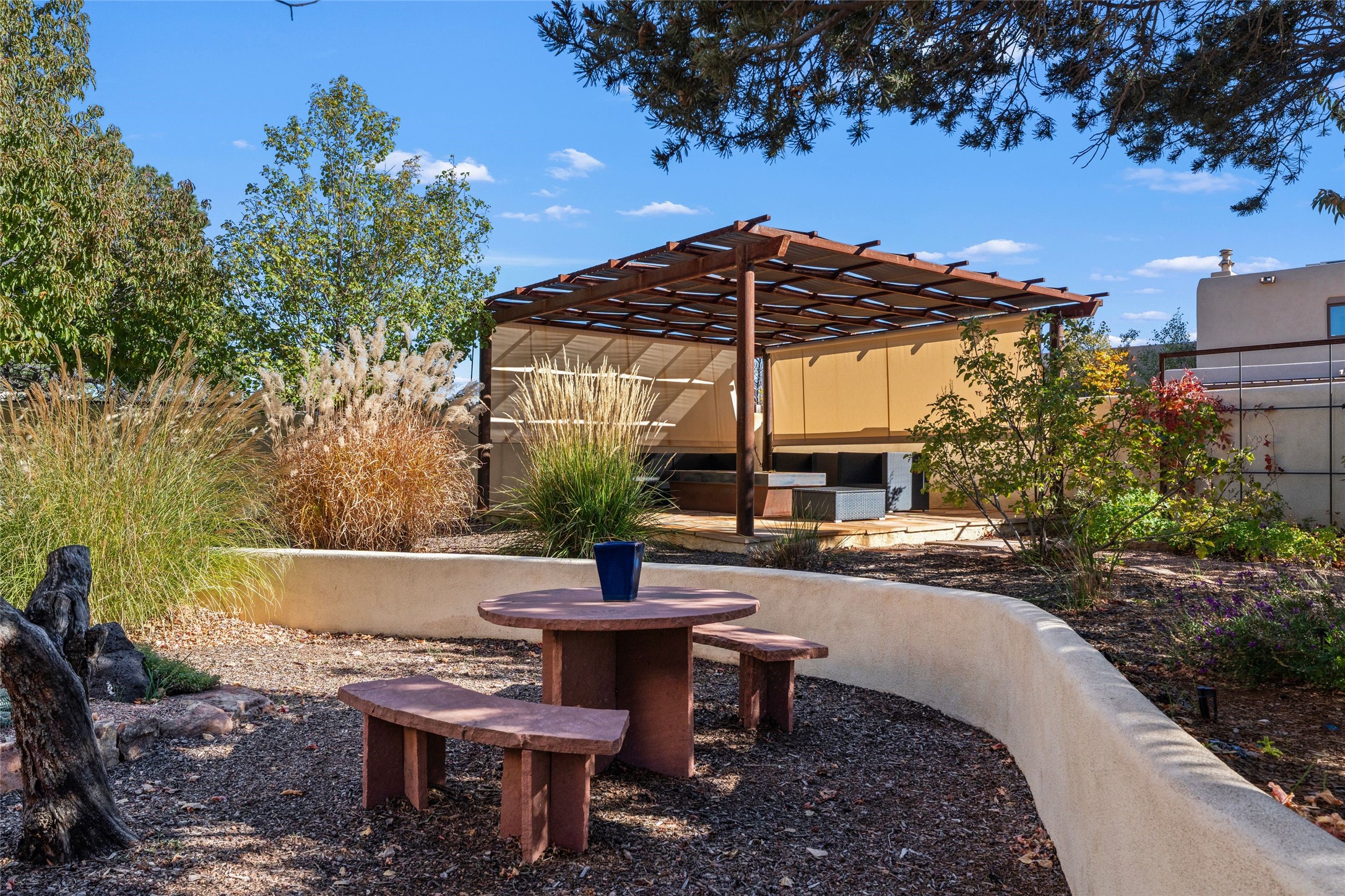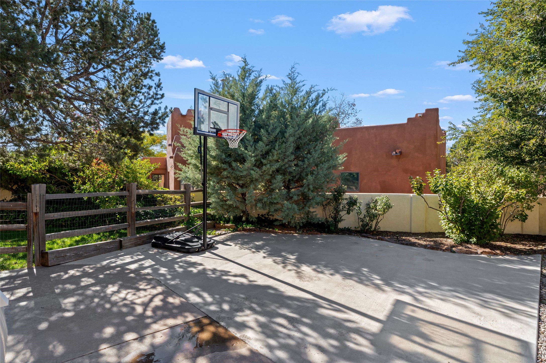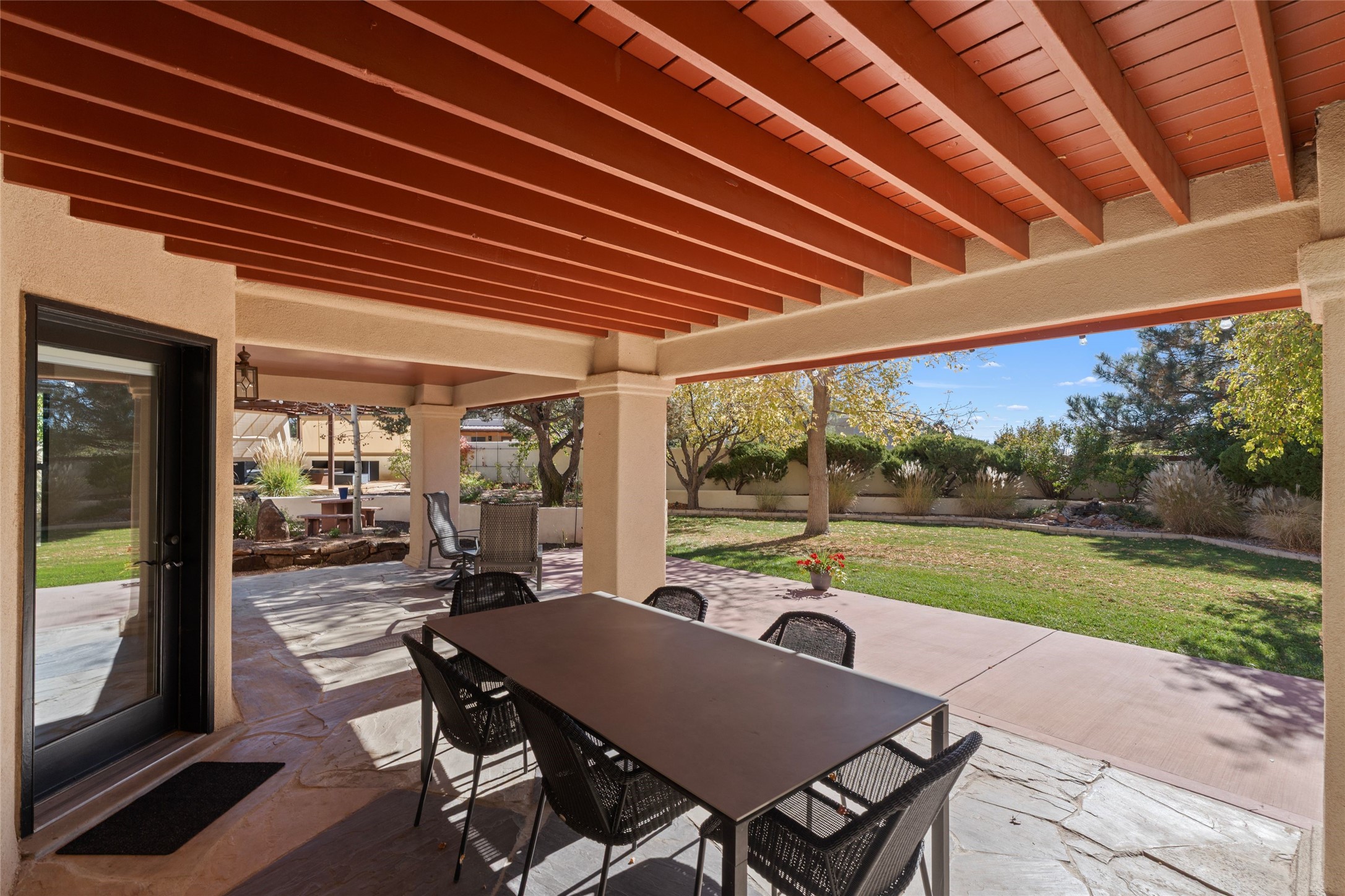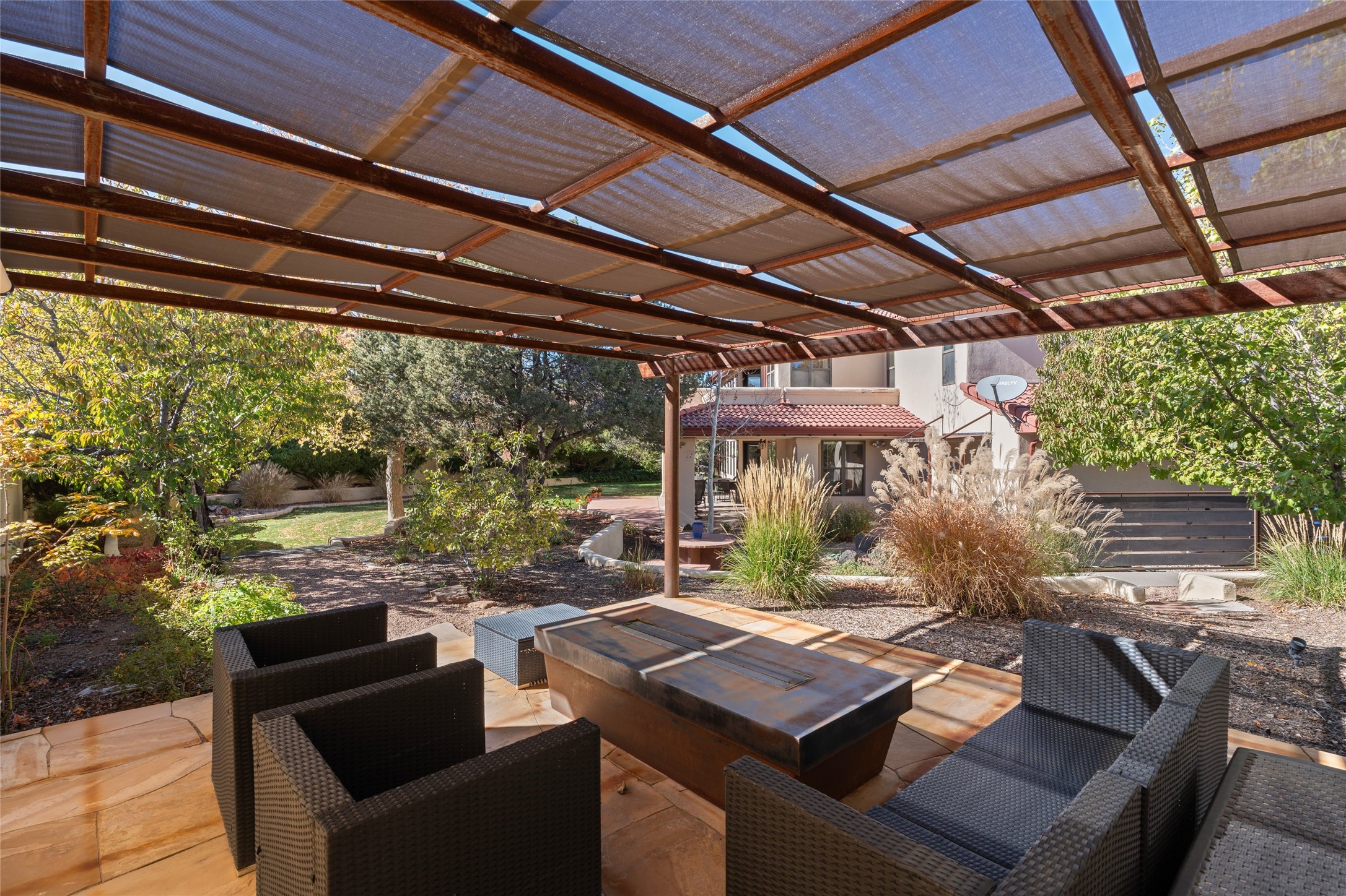Views, views, views. Breathtaking Sangre de Cristo Views from a Refined Contemporary Mediterranean HomePerched in the desirable Via Caballero III neighborhood, this exceptional 3,660 sq. ft. residence captures panoramic views of the Sangre de Cristo Mountains and the twinkling city lights of Santa Fe. Thoughtfully renovated in 2008, 2016, and 2017, the home blends elegant Mediterranean architecture with modern sophistication.The heart of the home features a sleek, remodeled kitchen with a bright breakfast area and an expansive family room--perfect for gatherings or quiet mornings enjoying the mountain vistas. Travertine floors, energy-efficient windows, custom lighting, and designer interior finishes create a seamless, refined atmosphere throughout.The spacious primary suite offers a serene sitting area, a luxurious bath, and a 15-foot custom California Closet. Step onto the private covered balcony to experience the breathtaking sunsets and sweeping mountain panorama--a daily reminder of Santa Fe's beauty.The flexible 4/5-bedroom layout accommodates a variety of lifestyles, currently configured with three bedrooms plus a study/exercise room, with a generous game room that efficiently serves as a fifth bedroom or guest suite.Outdoor living is equally inviting, with a flagstone-paved portal and terrace ideal for entertaining, walled and landscaped gardens with pion and fruit trees on timed irrigation, and a charming fountain that adds a peaceful ambiance. The backyard is a true sanctuary--private, verdant, and ideally suited for relaxation or play.Experience the magic of Santa Fe's mountain light from a home designed to celebrate it at every turn.