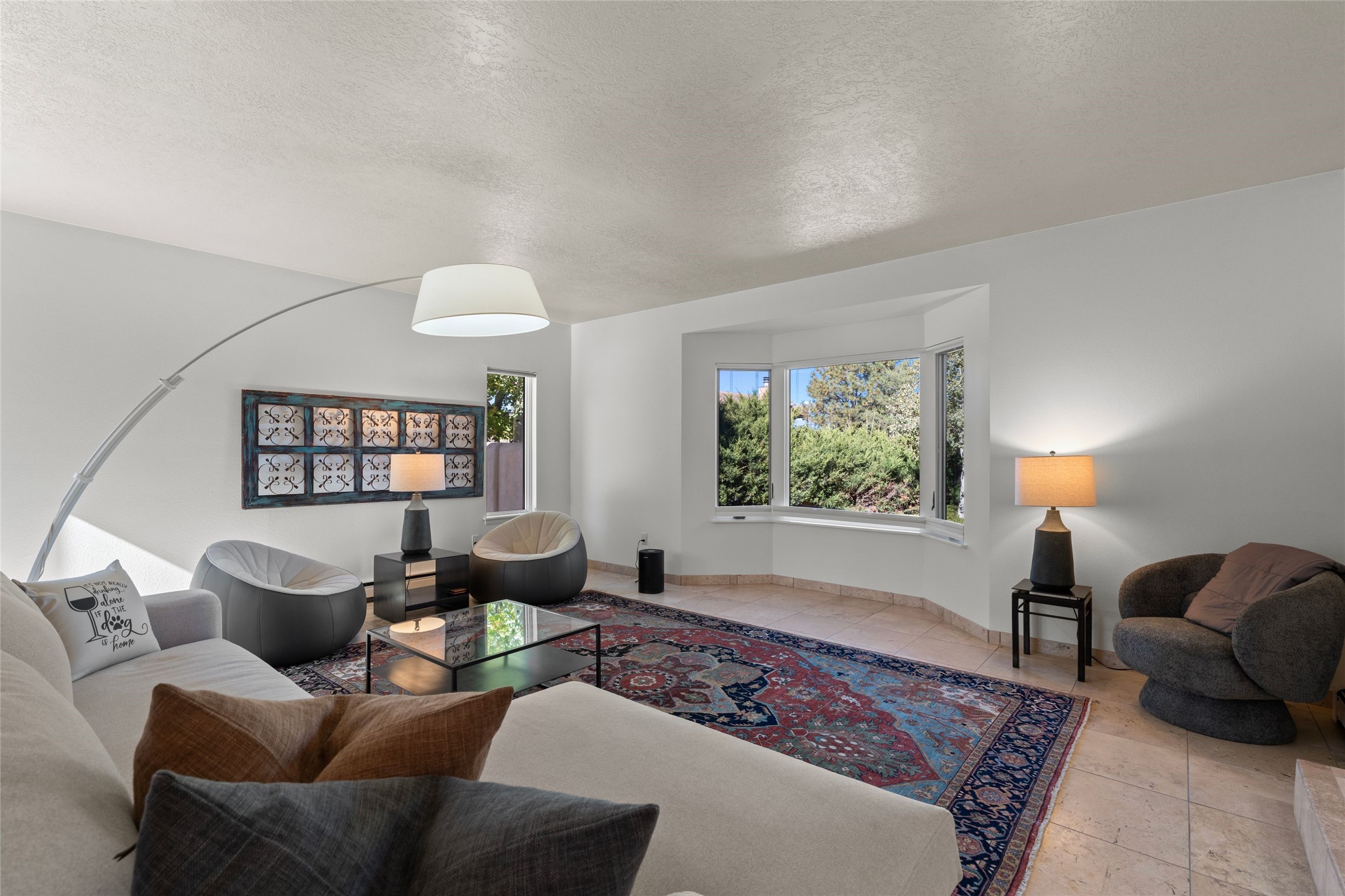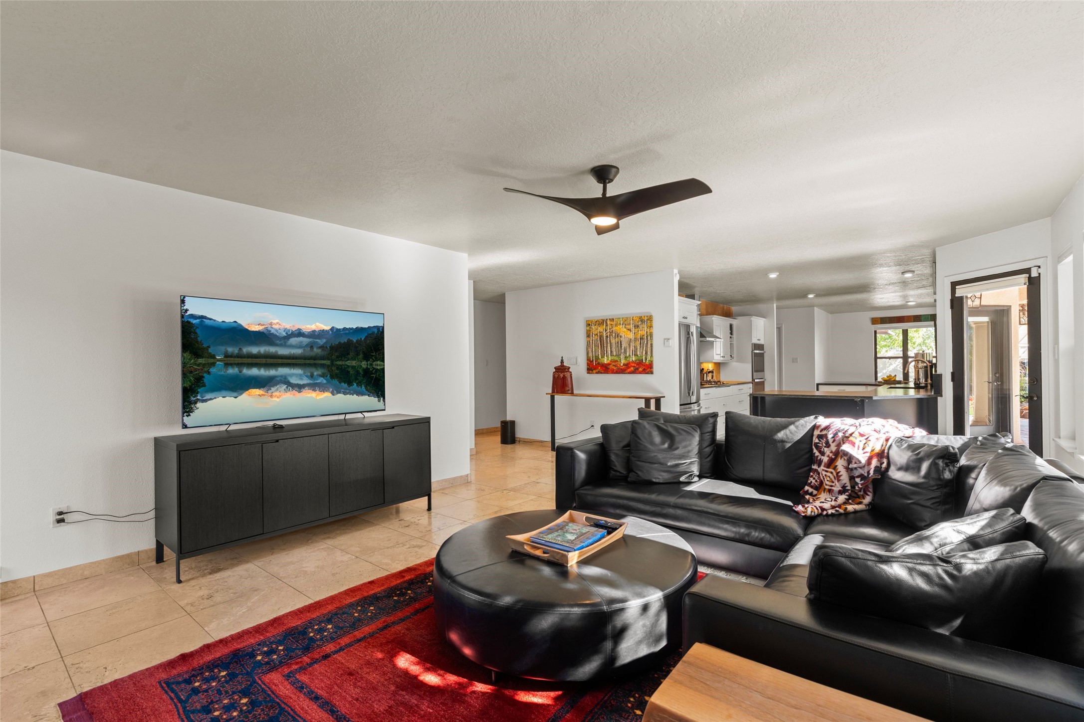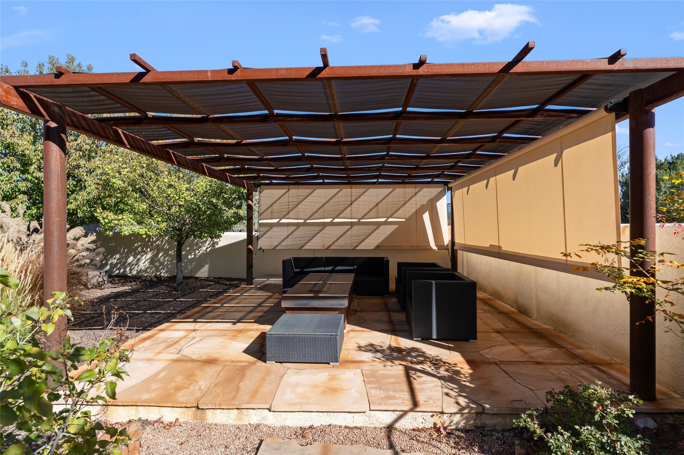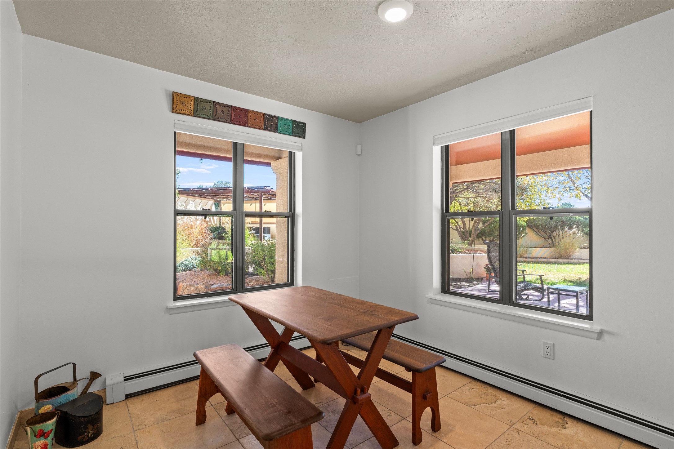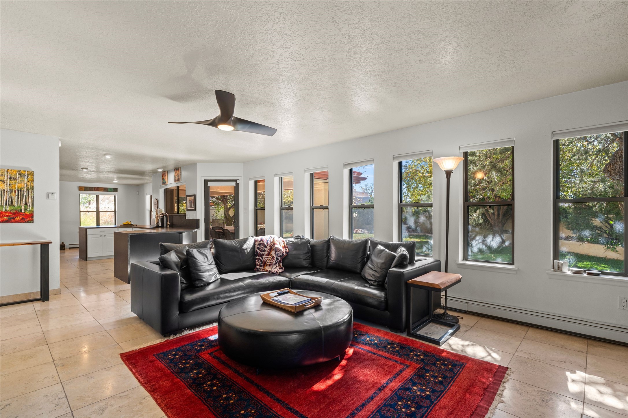 Views, views, views. Breathtaking Sangre de Cristo Views from a Refined Contemporary Mediterranean HomePerched in the desirable Via Caballero III neighborhood, this exceptional 3,660 sq. ft. residence captures panoramic views of the Sangre de Cristo Mountains and the twinkling city lights of Santa Fe. Thoughtfully renovated in 2008, 2016, and 2017, the home blends elegant Mediterranean architecture with modern sophistication.The heart of the home features a sleek, remodeled kitchen with a bright breakfast area and an expansive family room--perfect for gatherings or quiet mornings enjoying the mountain vistas. Travertine floors, energy-efficient windows, custom lighting, and designer interior finishes create a seamless, refined atmosphere throughout.The spacious primary suite offers a serene sitting area, a luxurious bath, and a 15-foot custom California Closet. Step onto the private covered balcony to experience the breathtaking sunsets and sweeping mountain panorama--a daily reminder of Santa Fe's beauty.The flexible 4/5-bedroom layout accommodates a variety of lifestyles, currently configured with three bedrooms plus a study/exercise room, with a generous game room that efficiently serves as a fifth bedroom or guest suite.Outdoor living is equally inviting, with a flagstone-paved portal and terrace ideal for entertaining, walled and landscaped gardens with pion and fruit trees on timed irrigation, and a charming fountain that adds a peaceful ambiance. The backyard is a true sanctuary--private, verdant, and ideally suited for relaxation or play.Experience the magic of Santa Fe's mountain light from a home designed to celebrate it at every turn.