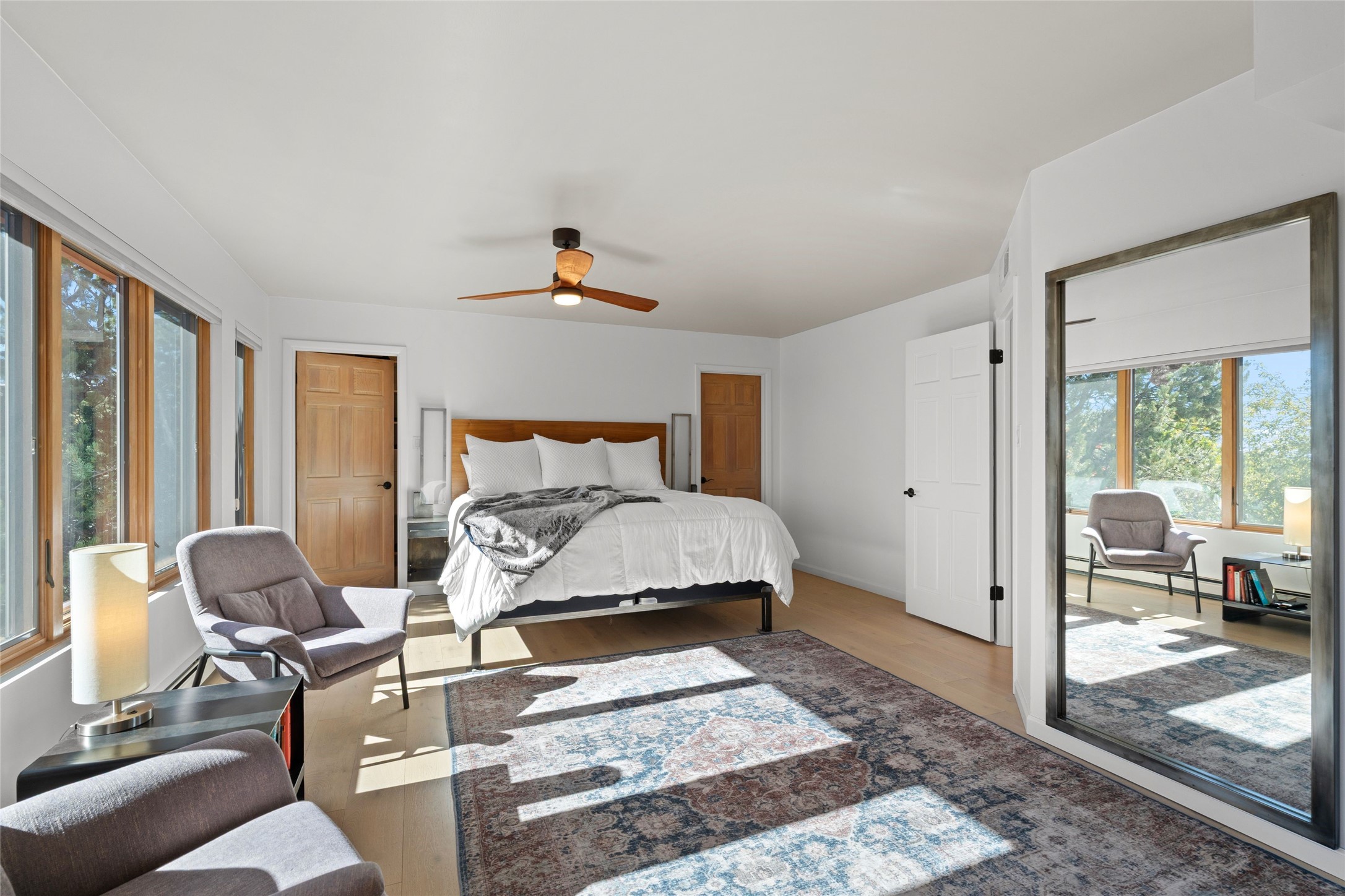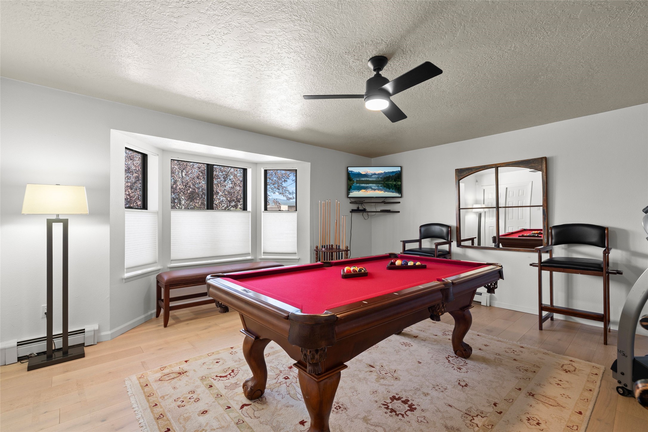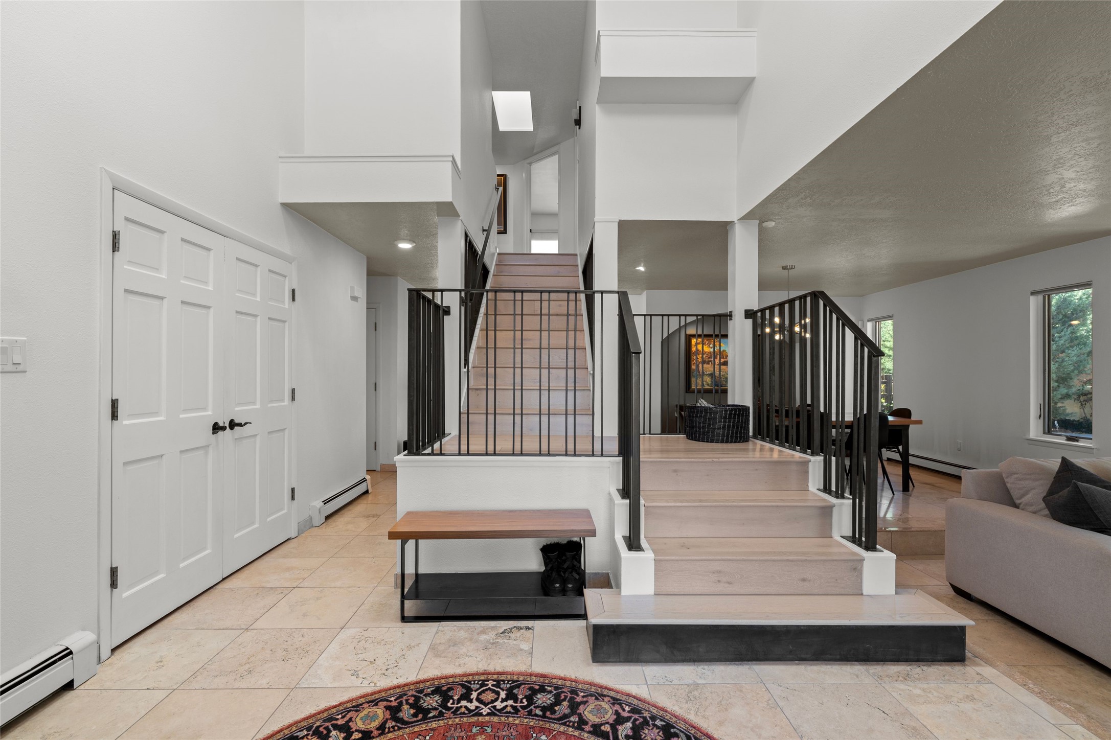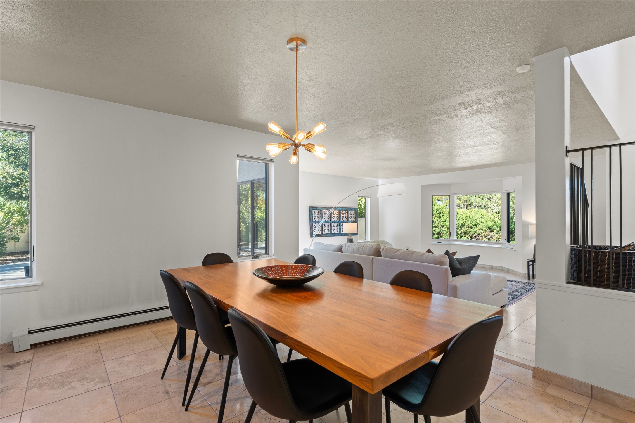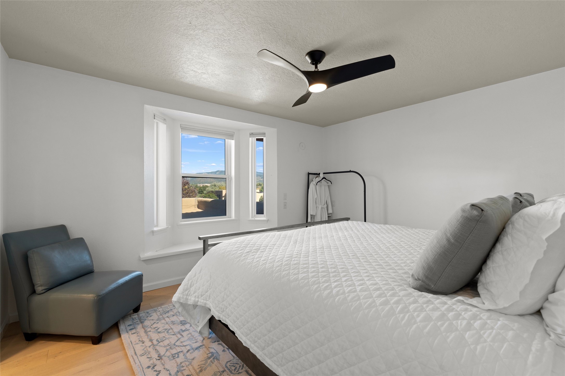 Views, views, views. Breathtaking Sangre de Cristo Views from a Refined Contemporary Mediterranean HomePerched in the desirable Via Caballero III neighborhood, this exceptional 3,660 sq. ft. residence captures panoramic views of the Sangre de Cristo Mountains and the twinkling city lights of Santa Fe. Thoughtfully renovated in 2008, 2016, and 2017, the home blends elegant Mediterranean architecture with modern sophistication.The heart of the home features a sleek, remodeled kitchen with a bright breakfast area and an expansive family room--perfect for gatherings or quiet mornings enjoying the mountain vistas. Travertine floors, energy-efficient windows, custom lighting, and designer interior finishes create a seamless, refined atmosphere throughout.The spacious primary suite offers a serene sitting area, a luxurious bath, and a 15-foot custom California Closet. Step onto the private covered balcony to experience the breathtaking sunsets and sweeping mountain panorama--a daily reminder of Santa Fe's beauty.The flexible 4/5-bedroom layout accommodates a variety of lifestyles, currently configured with three bedrooms plus a study/exercise room, with a generous game room that efficiently serves as a fifth bedroom or guest suite.Outdoor living is equally inviting, with a flagstone-paved portal and terrace ideal for entertaining, walled and landscaped gardens with pion and fruit trees on timed irrigation, and a charming fountain that adds a peaceful ambiance. The backyard is a true sanctuary--private, verdant, and ideally suited for relaxation or play.Experience the magic of Santa Fe's mountain light from a home designed to celebrate it at every turn.