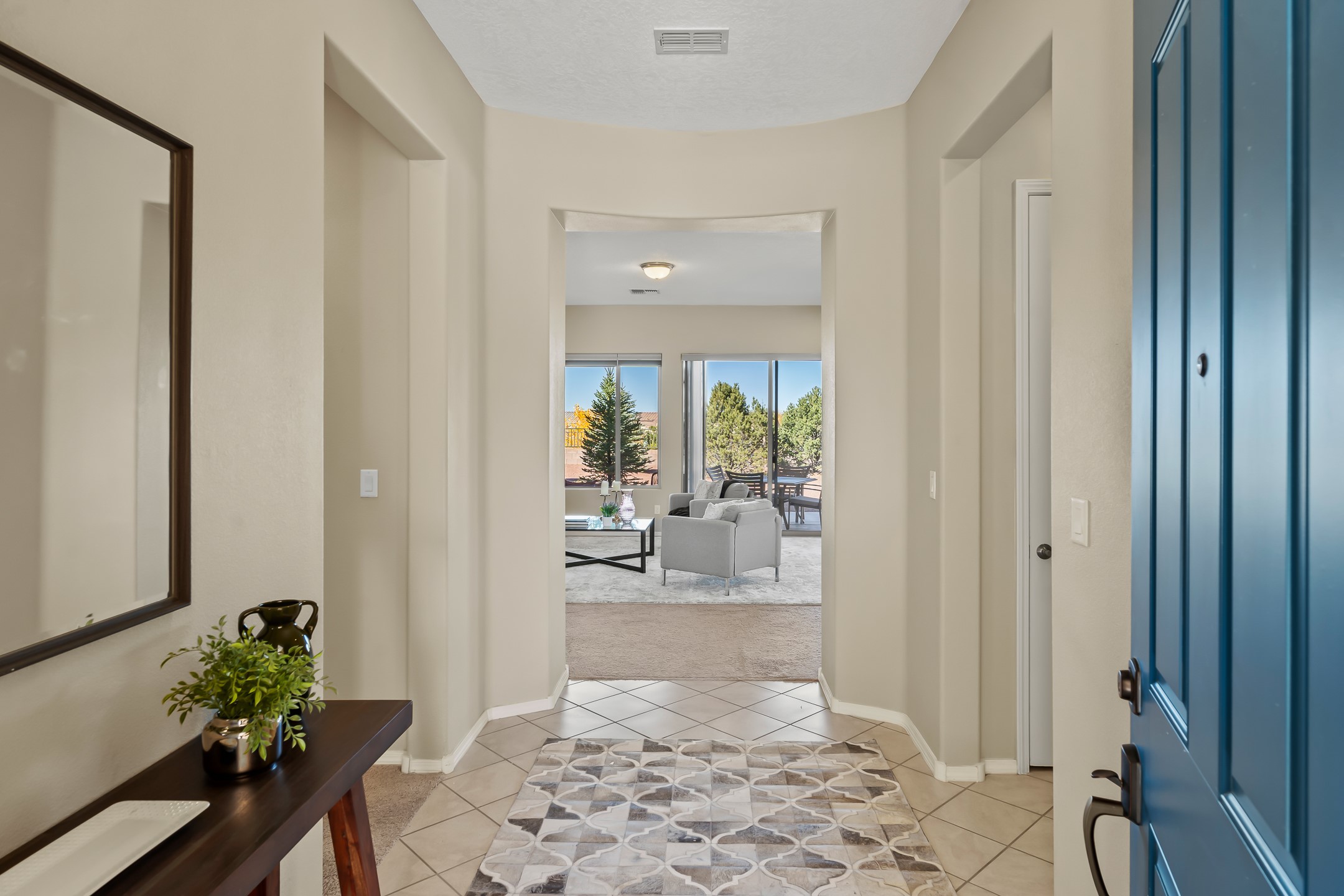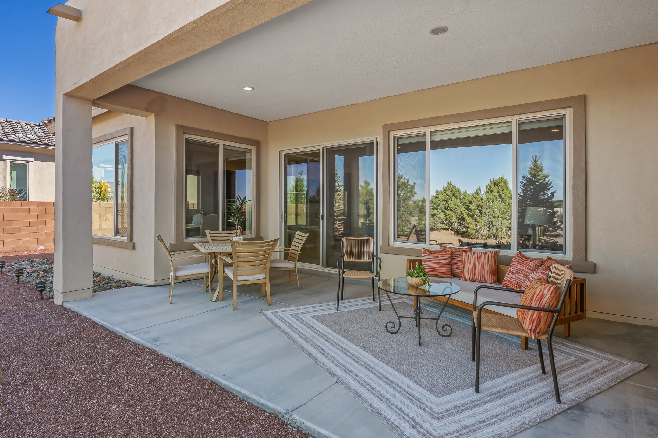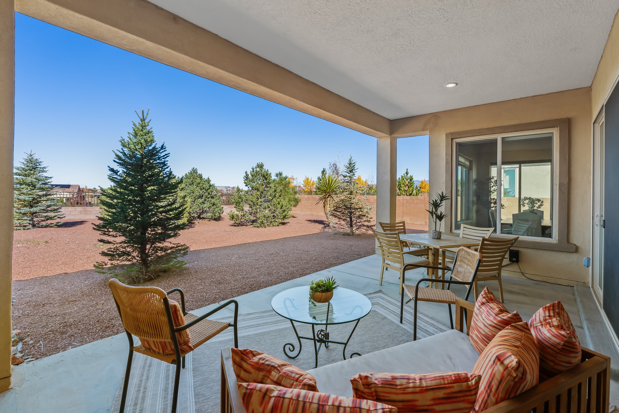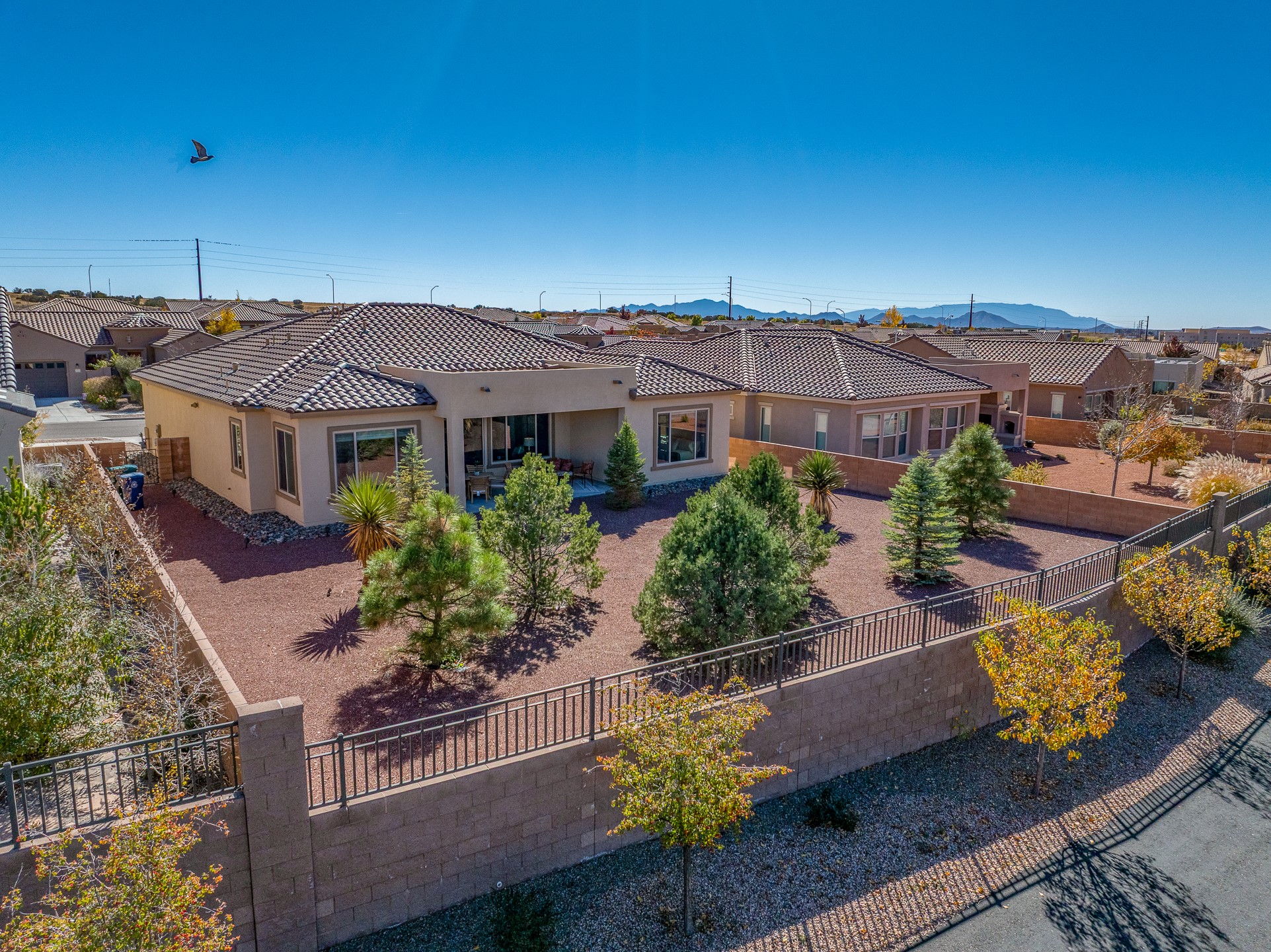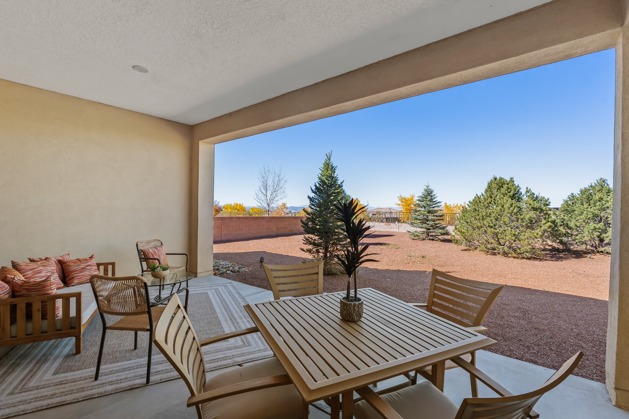 Positioned on a premier elevated lot, this refined single-level residence frames breathtaking views and glowing New Mexico sunsets. Designed for effortless living, the 3-bedroom, 2-bath floor plan spans about 2,045 sq. ft. with sun-filled open spaces, a dining bay window that captures the light, and well-crafted finishes that balance comfort and style.The 3rd bedroom is a 3-walled flex space --ideal as an office, studio, or den--and was thoughtfully designed to be easily enclosed if a true bedroom is desired.Outdoors, an artfully landscaped yard unfolds with evergreens--yucca, blue and green spruce, ponderosa, and pion--creating a serene natural backdrop for morning coffee or evening skies painted in color. Tucked within a quiet setting near scenic trails, the home offers both tranquility and convenient access to Santa Fe, Albuquerque, and nearby amenities.This combination of setting and views are rare in the Las Soleras community, an exceptional opportunity not to be missed.