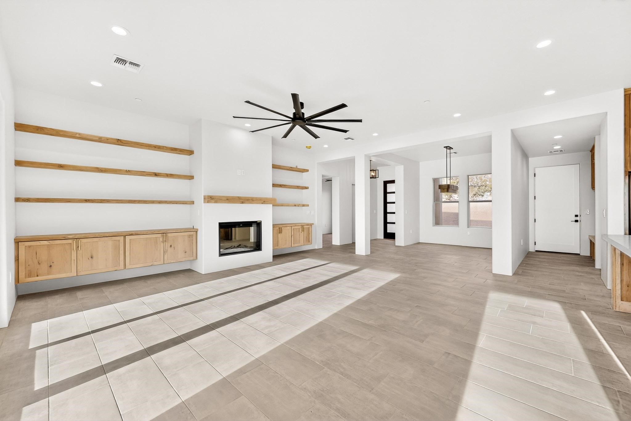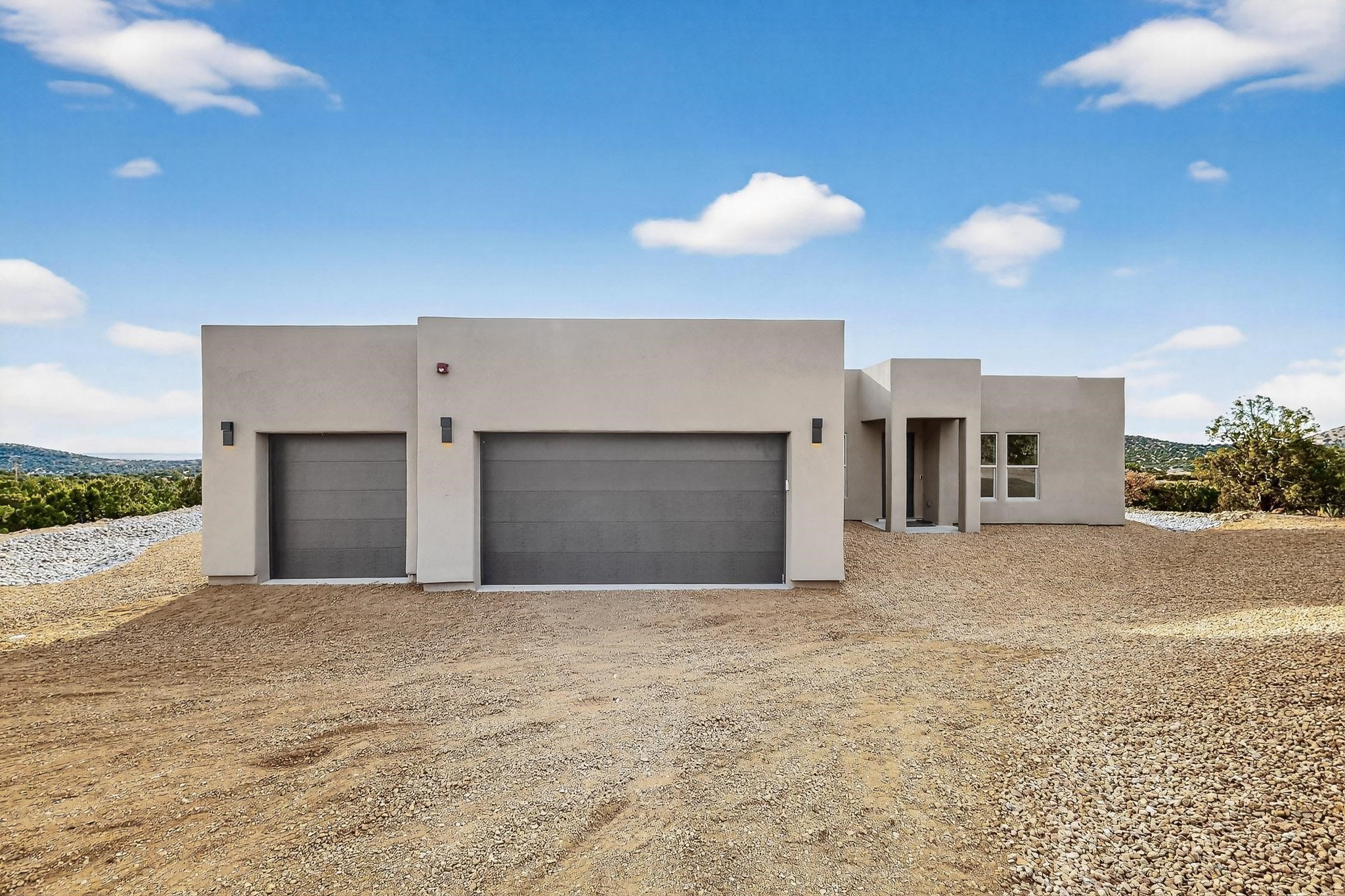 New Construction. Located in the exclusive Longview gated community, this 3-bedroom, 3-bath home with a 3-car garage offers breathtaking views of the Sandia and Galisteo Basin. Thoughtfully designed with two primary suites plus an office, the home features custom cabinetry, a walk-in pantry, and light-filled open living spaces. Enjoy seamless indoor-outdoor living, a spacious three-car garage, and the tranquility of one of Santa Fe's most sought-after settings. Owner/Broker.