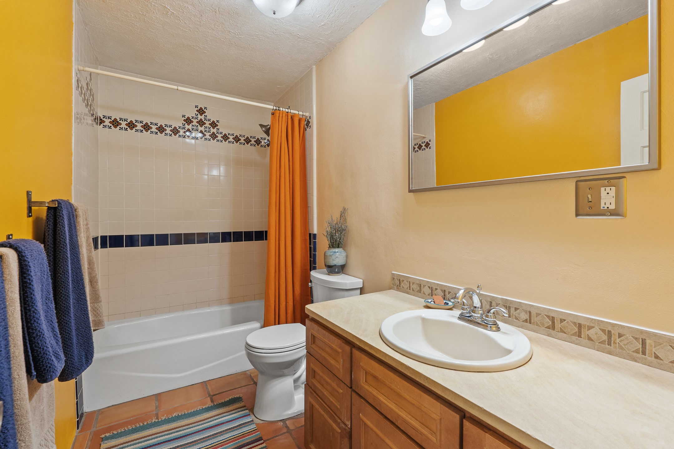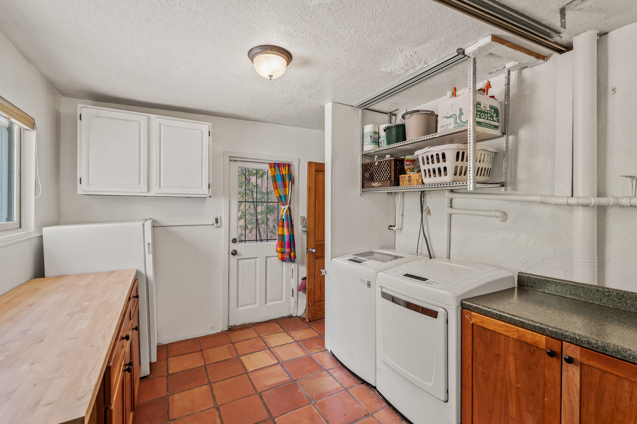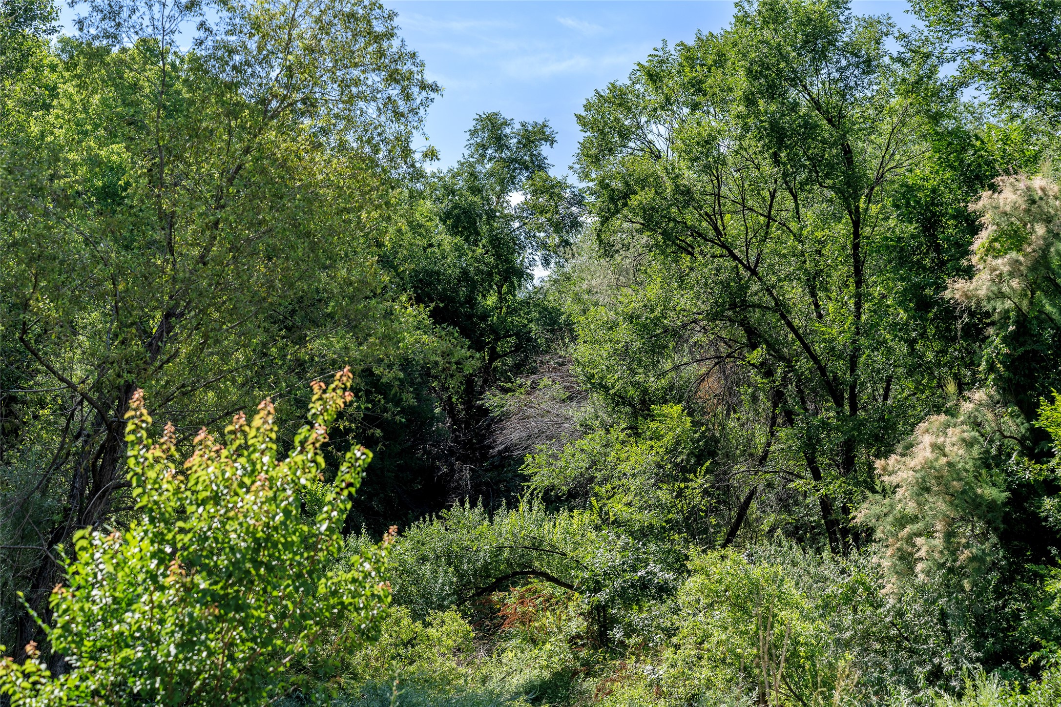 High desert permaculture oasis! 3-bedroom, 2-bath, 3066 square foot home, with large bonus room with it's own entry that could serve as studio, office, or another bedroom, nestled in towering cottonwoods on three lots totaling almost 18 acres along the lower Arroyo Hondo, with an intermittent spring and a year-round pond. This working permaculture farm produces nursery stock and landscaping plants, as well as generous amounts of food for family and friends, with a chicken coop, two 360 sq. ft. hoop houses and roughly 8/10ths of an acre in cultivation, including gardens and fruit trees. Set up for energy efficiency, with owned solar panels, a greenhouse attached to the house for ample solar gain, rainwater catchment, the house provides year round comfort. Inside, the main living area features high beamed ceilings and plaster walls, a cozy high-efficiency wood stove, and Saltillo tile. The kitchen features stainless steel appliances, the bathrooms have been recently updated, and the primary suite opens to a second story deck to take it all in. Sellers have done substantial recent work to decks, stucco, windows and roof. All of this less than three miles from city limits and a quarter mile from Ojo Santa Fe.