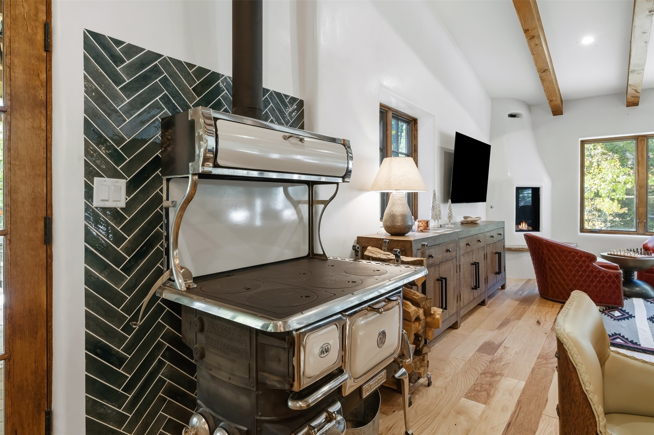 Welcome to 14 The Ledge, a rare offering in the heart of Pecos, NM, where tranquility meets luxury. This exquisite 2,439-square-foot estate is nestled on 5.35 acres of prime Pecos Riverfront, boasting 362 feet of private river access. Perfectly remodeled, this home features three ensuite bedrooms, each offering a private sanctuary for relaxation. The chef's kitchen features a large island, Sub-Zero fridge, under-counter ice maker, and Viking Tuscany range, dishwasher, and hood beautifully accented by smooth plaster walls and artisan tile throughout.Step outside to discover covered outdoor living spaces, complete with a hot tub, ideal for entertaining or unwinding amidst nature. The property is adorned with charming features such as an antique wood stove, gas kiva fireplaces, and a potbelly stove, enhancing its rustic elegance. Recent upgrades include new stucco, a new roof, and new windows, ensuring modern comfort and efficiency.The oversized finished garage provides ample space for vehicles and storage, while the additional outbuildings, make this property horse-friendly. The guest house offers studio potential, making it an artist retreat or writer's haven. A private well and new septic system further enhance the self-sufficiency of this secluded oasis.Located near the Santa Fe National Forest and Lisboa Springs, this property offers unparalleled opportunities for fly-fishing and outdoor adventures. With no HOA restrictions, this estate is perfect for seasonal or full-time living. The option to purchase furnished makes this a turnkey opportunity for discerning buyers.14 The Ledge is more than a home; it is a lifestyle. Whether you seek a peaceful retreat or an active outdoor haven, this property offers the best of Northern New Mexico living. Experience the serenity and beauty of this exceptional estate, where every detail has been thoughtfully curated for the ultimate in comfort and style.
