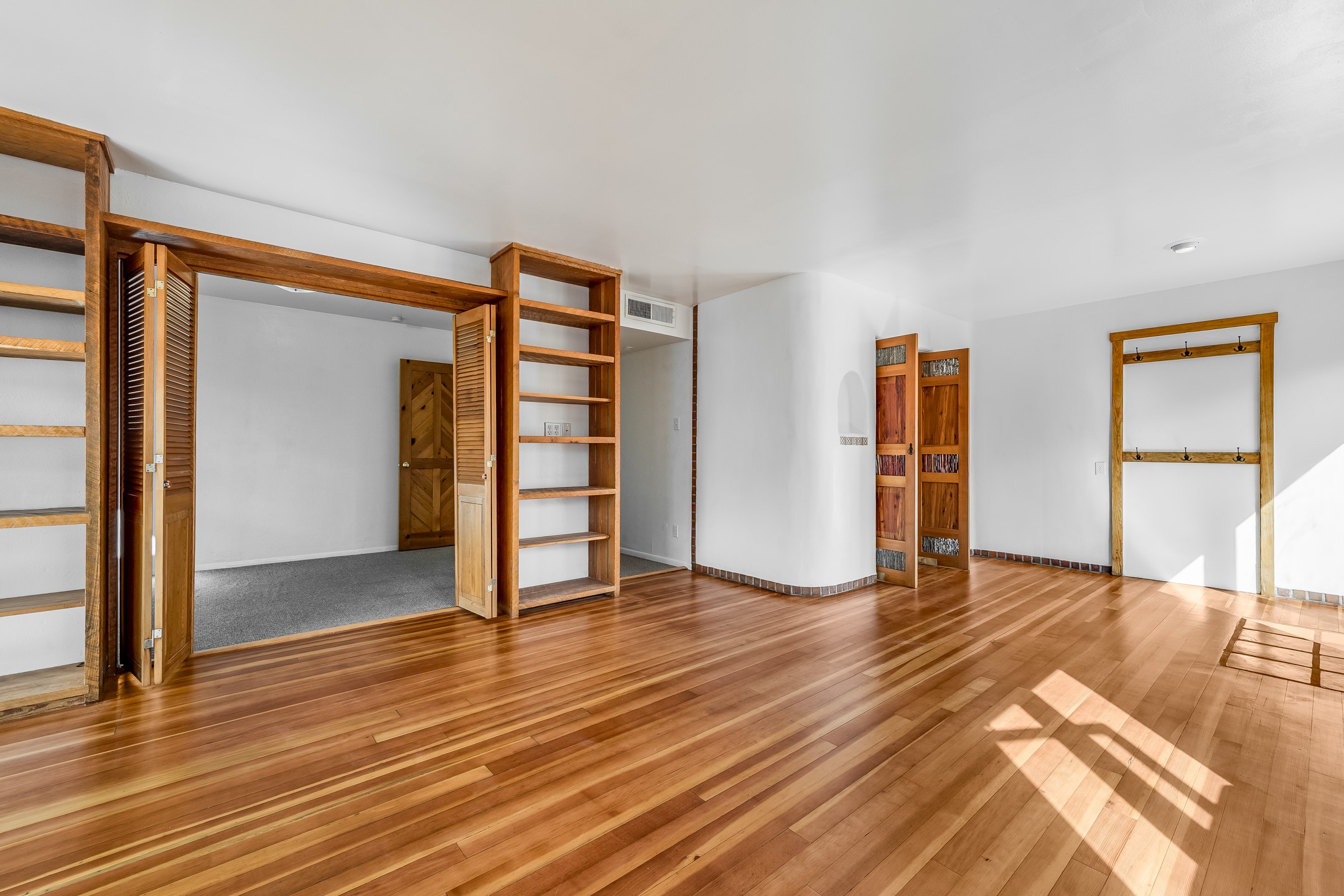 This quintessential Santa Fe style property offering Kiva fireplace, willow doors, Talavera and Saltillo tile, nichos, a walled courtyard, and off-street parking is tucked away in the much sought after Railyard Arts District. The setting is peaceful and quiet yet only a quick 5 minute jaunt to The Violet Crown, Farmer's Market, park, outdoor concerts, coffee shop, pubs, restaurants, and the vibrant vibe offered along Guadalupe Street! About a 15 minute walk to The Santa Fe Plaza where you will find work shopping, class dining, and galleries along with stellar museums. Walking and cycling trails are minutes away making this the perfect urban home. One can even hop on the train for a ride to Albuquerque! Opportunities Abound for this property which features a home with attached guest house. You can live in one unit and rent the other or rent them both! There is even room to add a casita! Easy access to St. Francis Drive is a plus for those who commute to Los Alamos! Both units offer office space for those who work from home. A Must See!